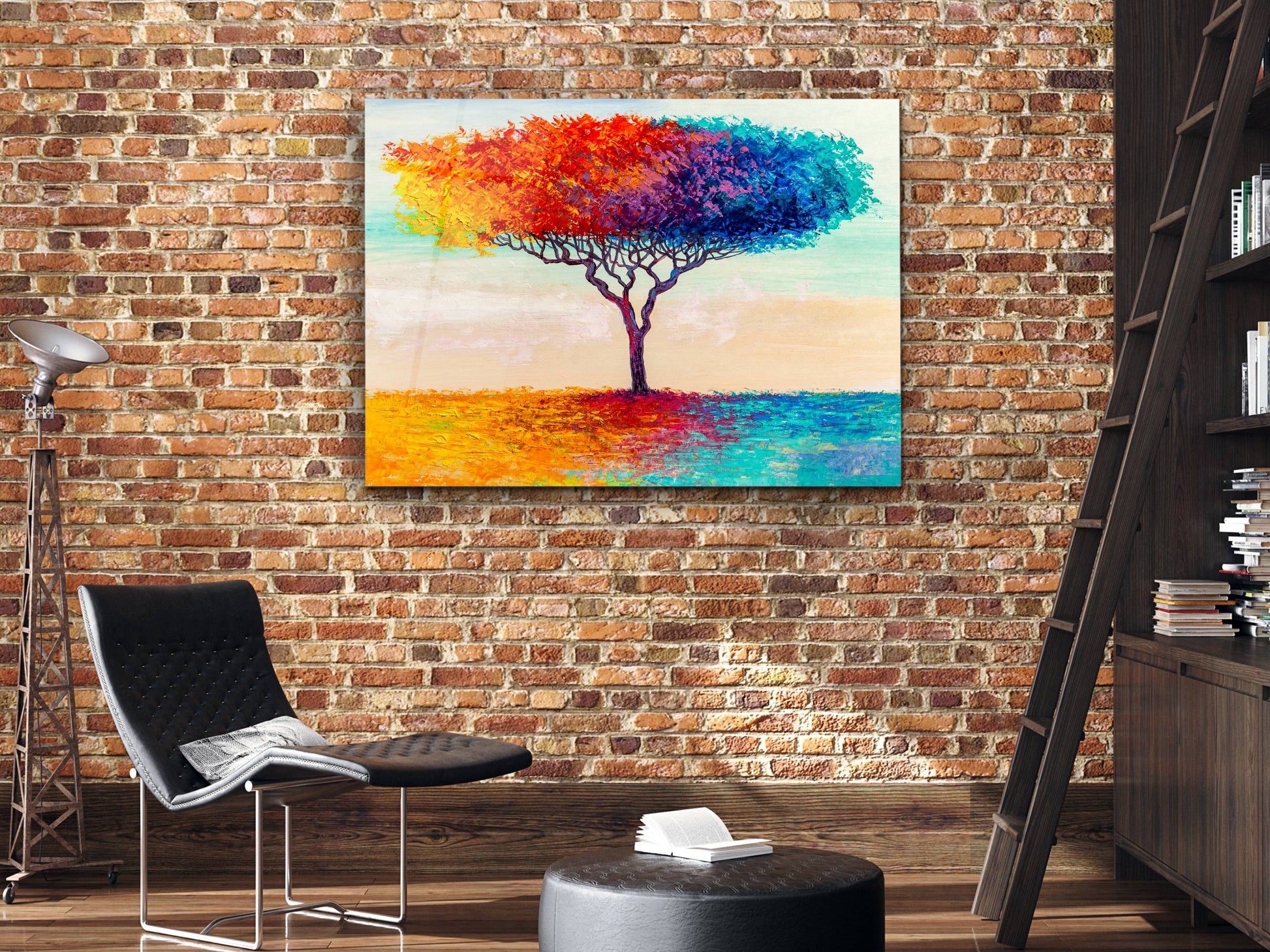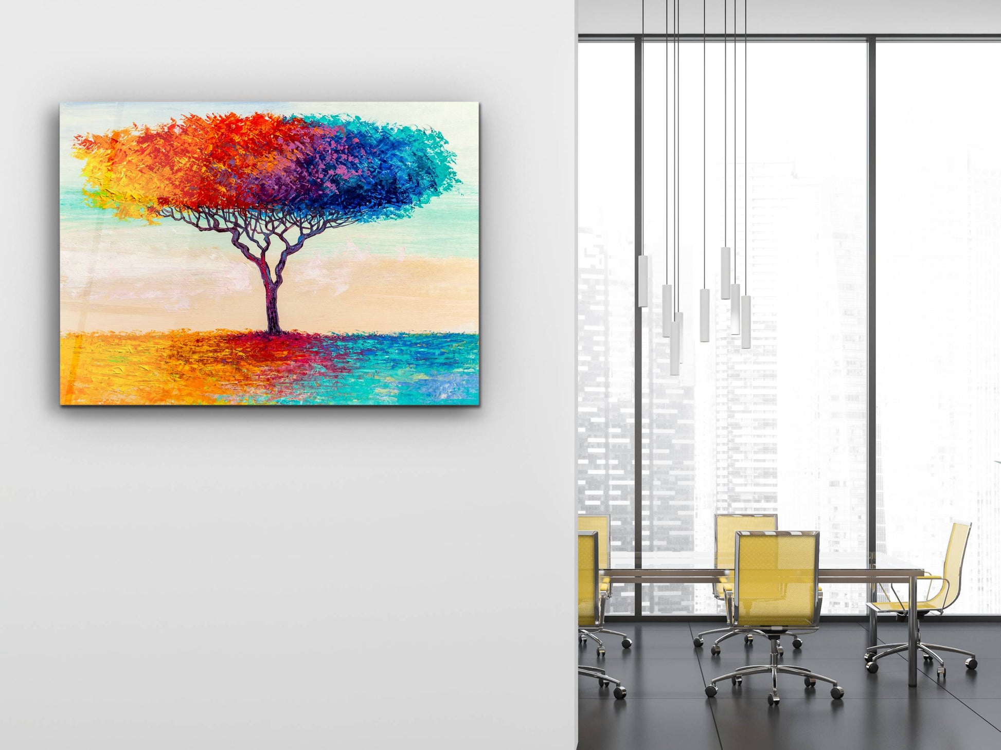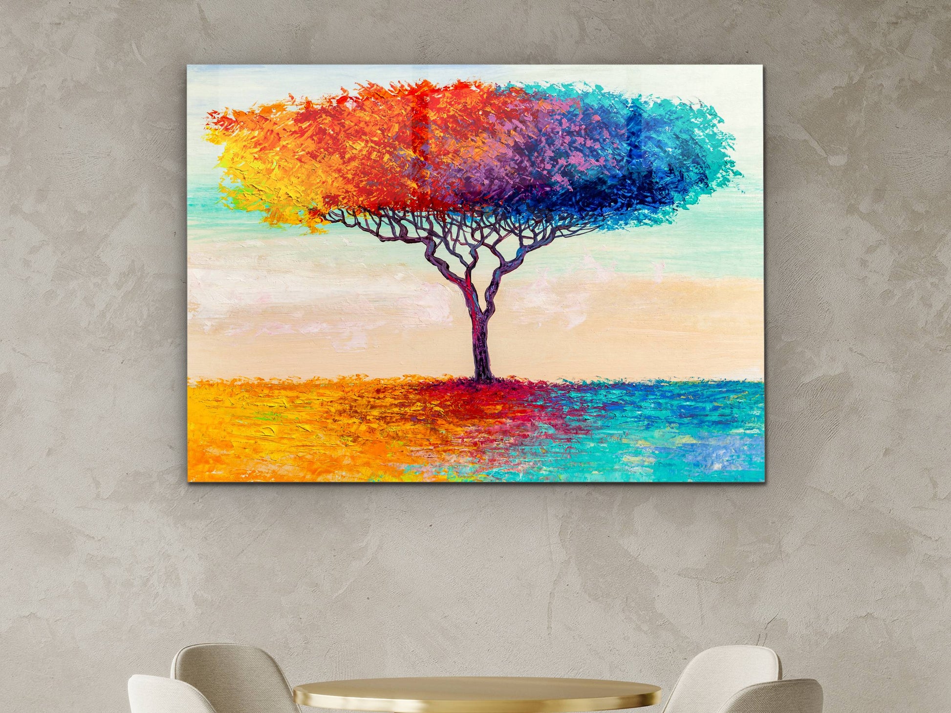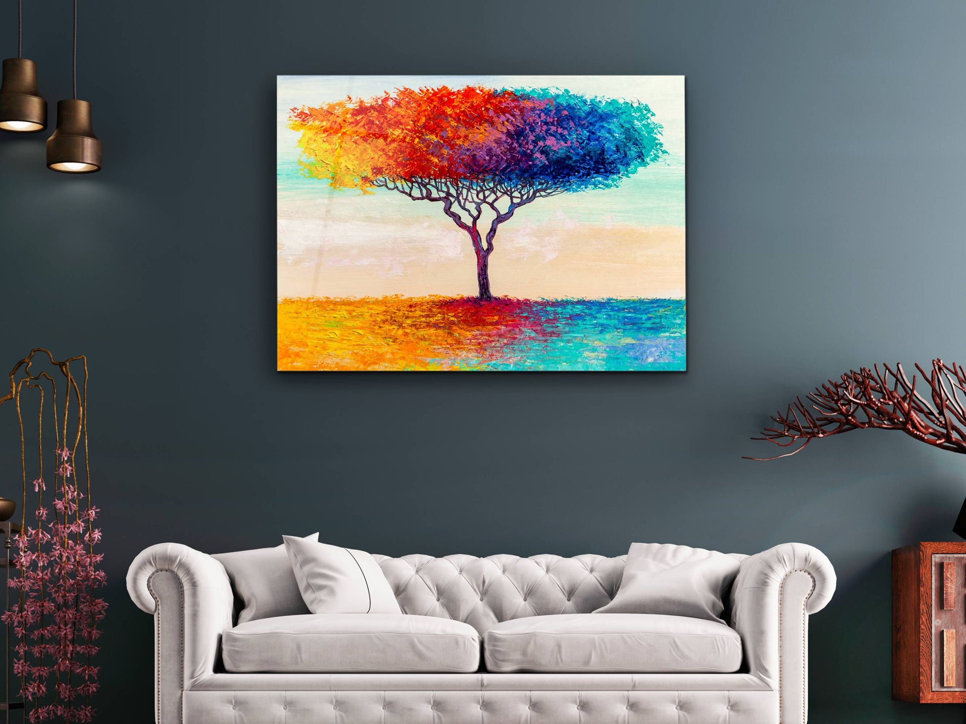 Soyut Renkli Ağaç Cam Tablo – Modern Dekoratif Ev ve Ofis Tablosu