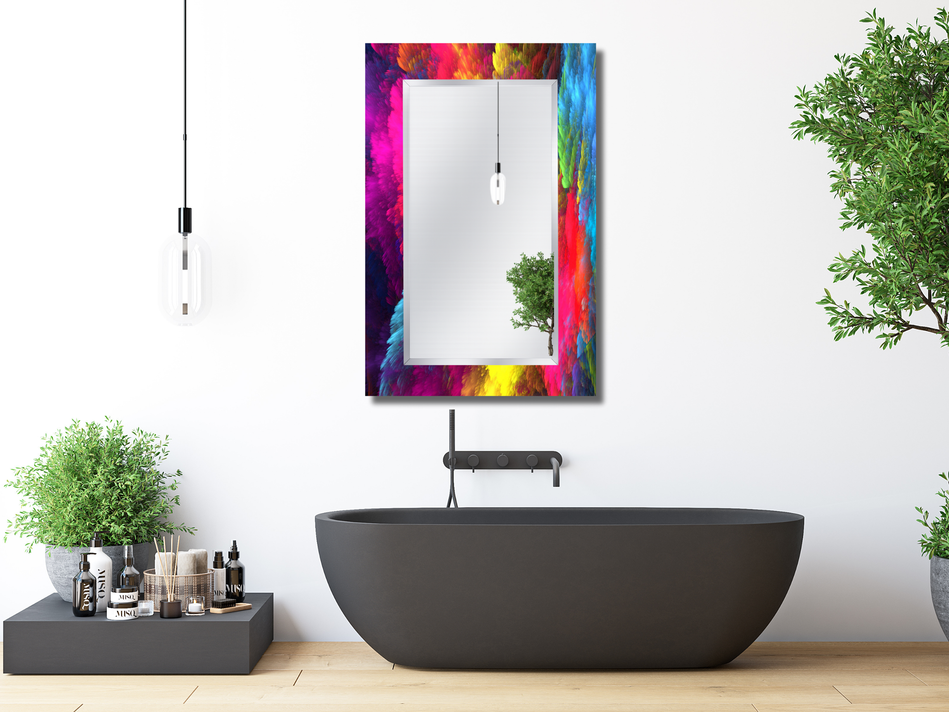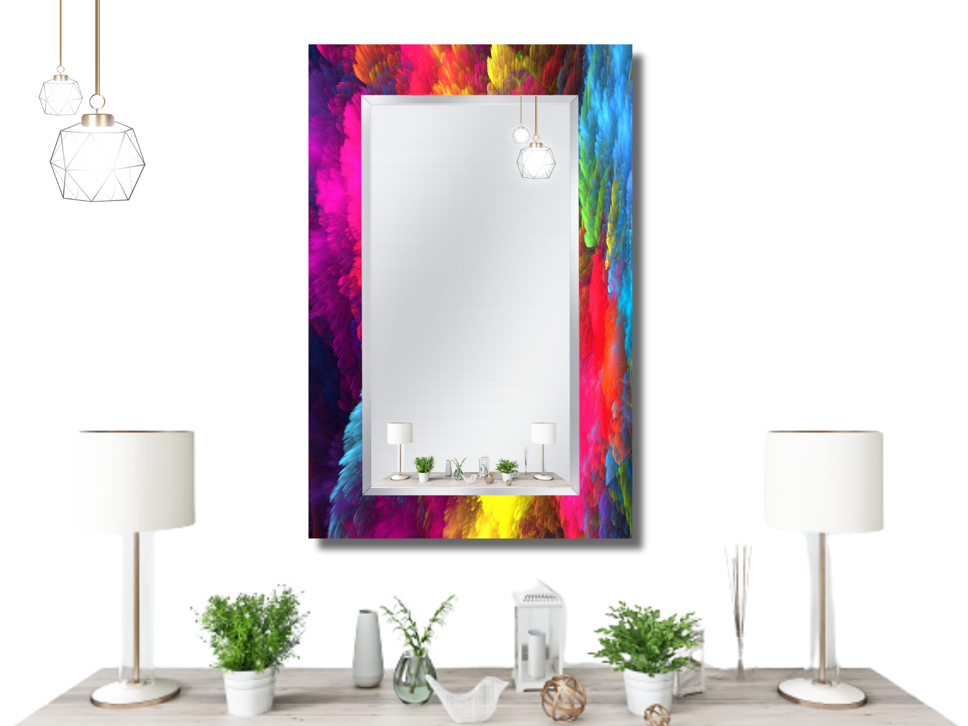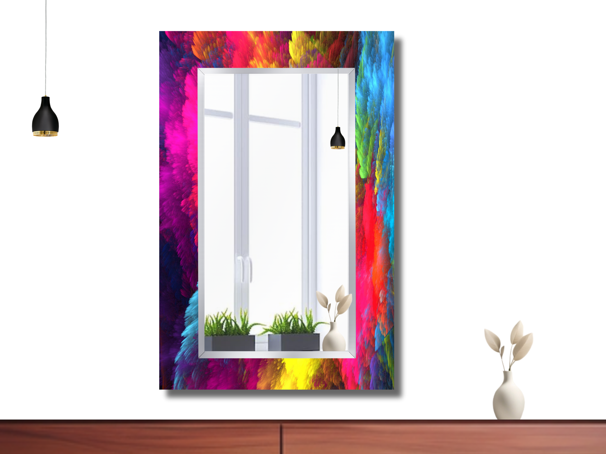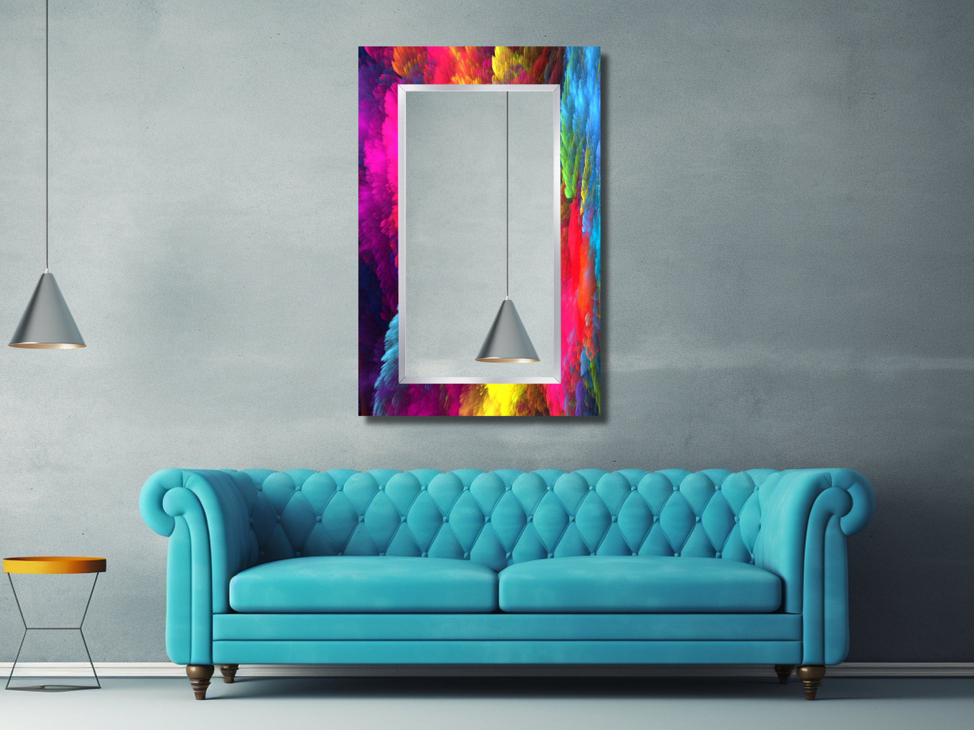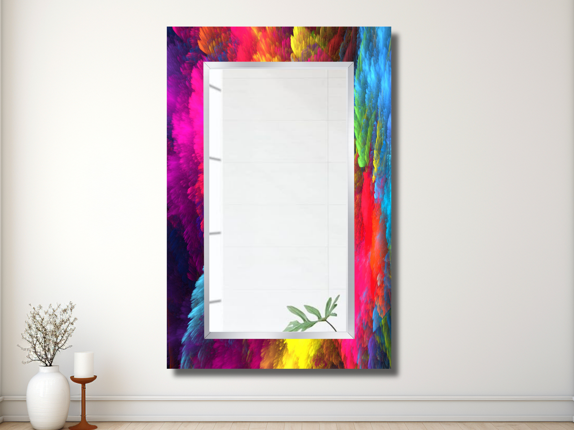 Soyut Renkli Desenli Ayna - Modern Boy Aynası - Banyo Aynası - Antre&Hol Aynası - Duvar Dekoru