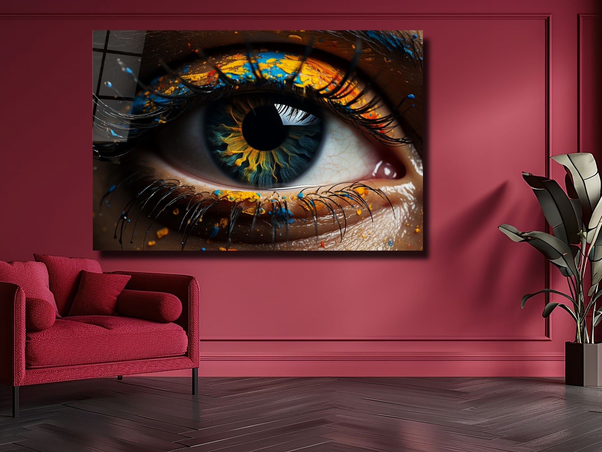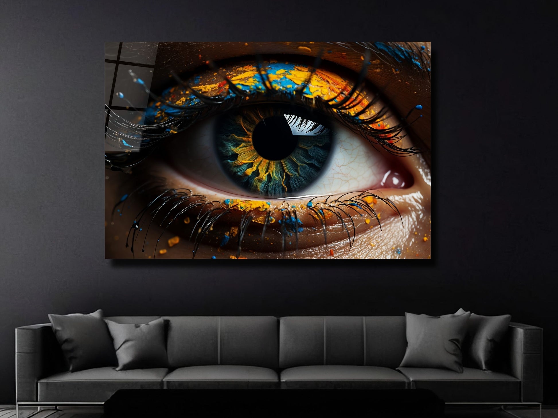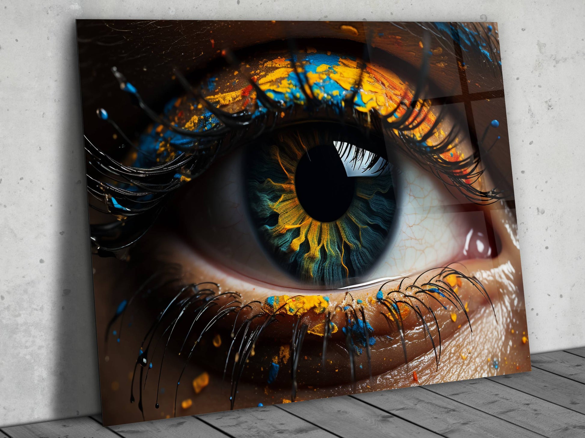 Soyut Renkli Göz Cam Tablo - Dekoratif Tablo
