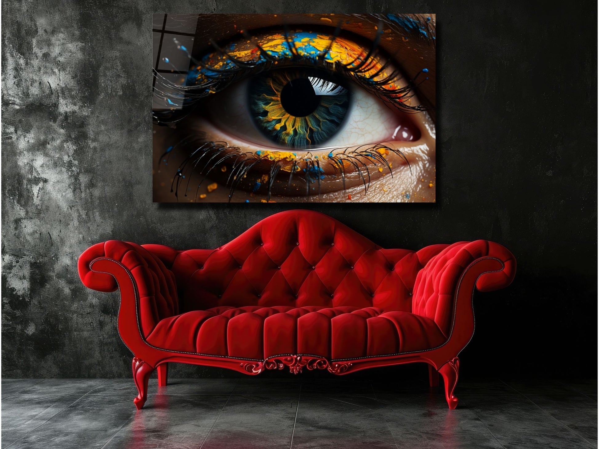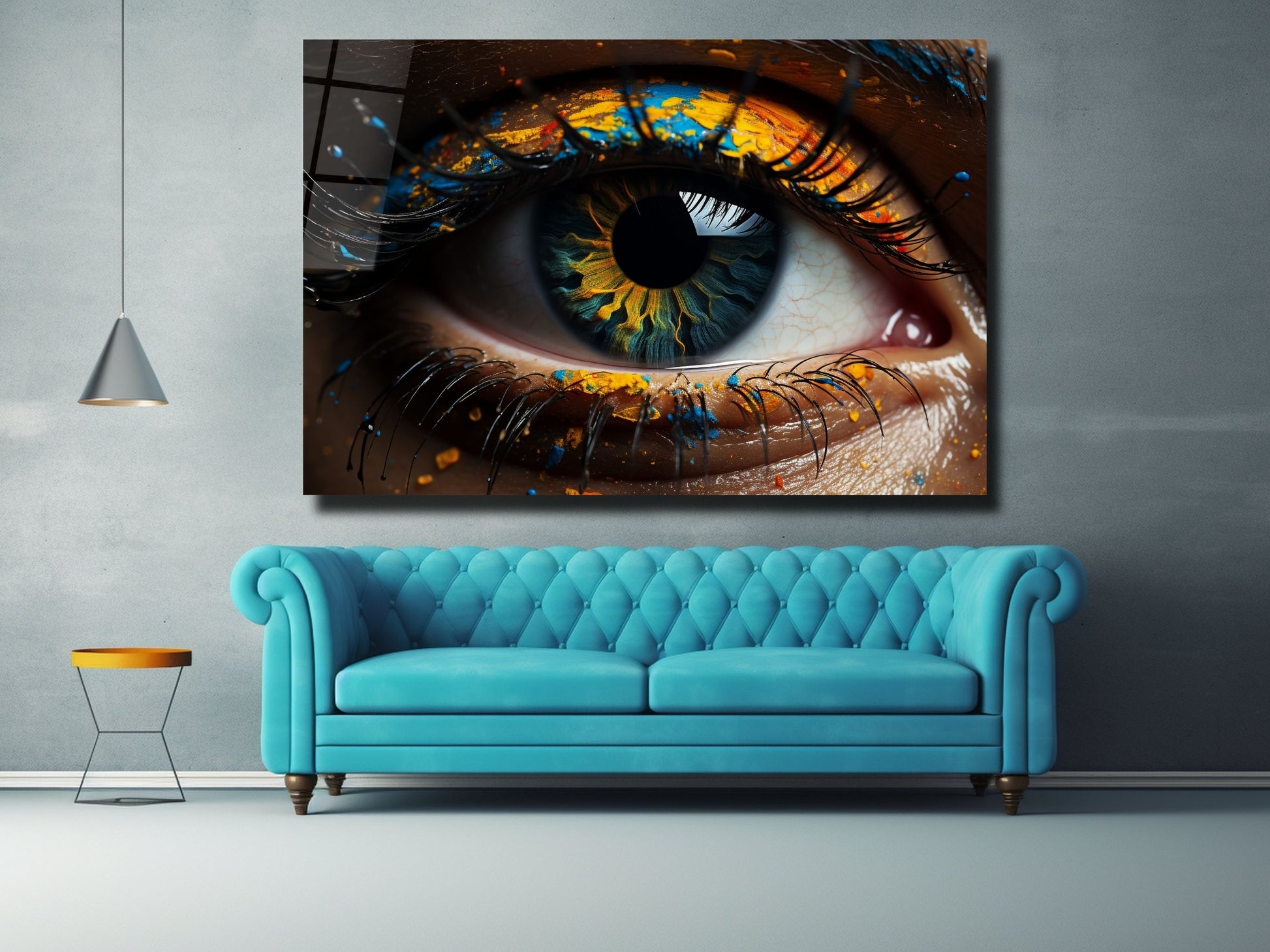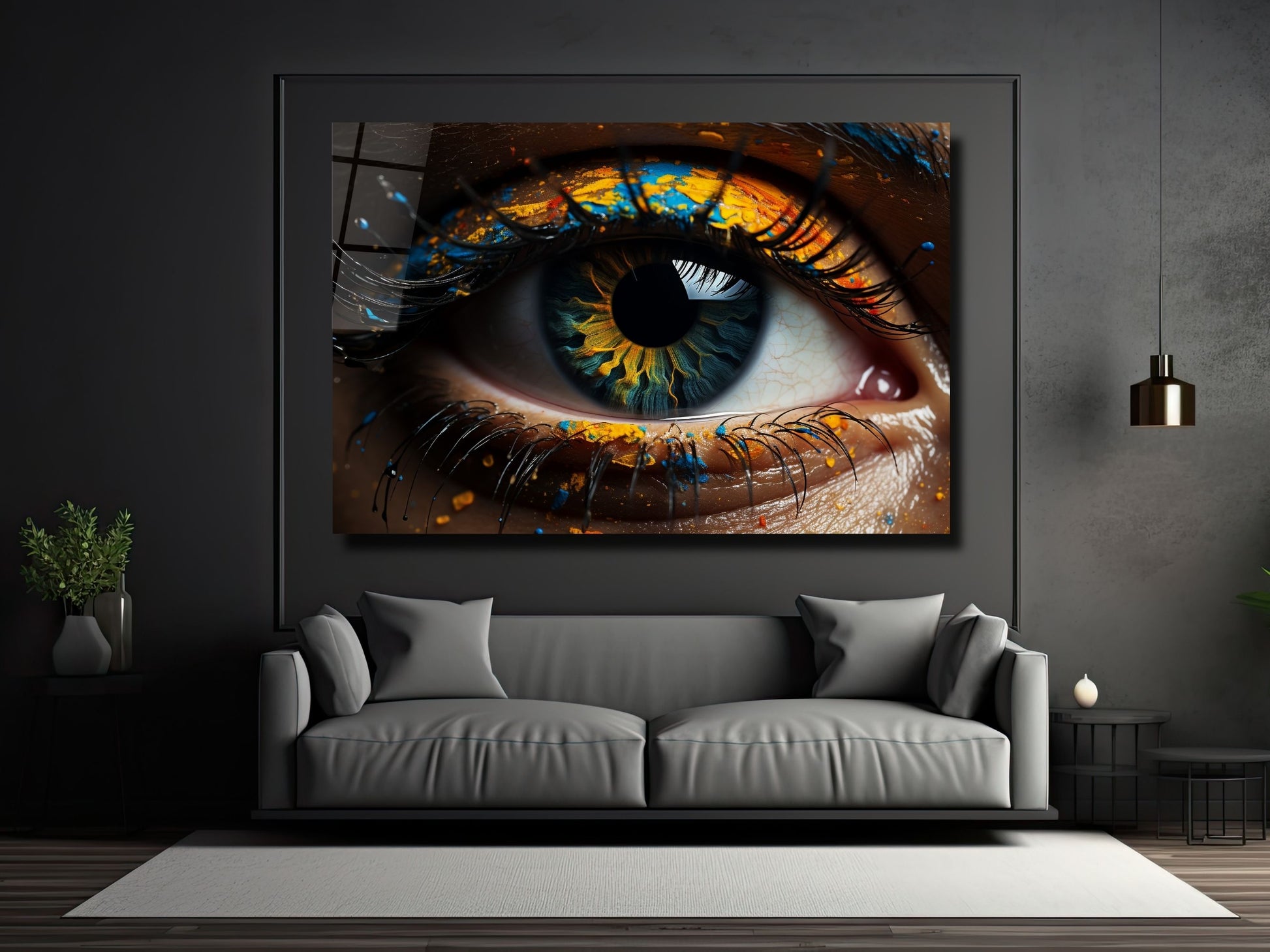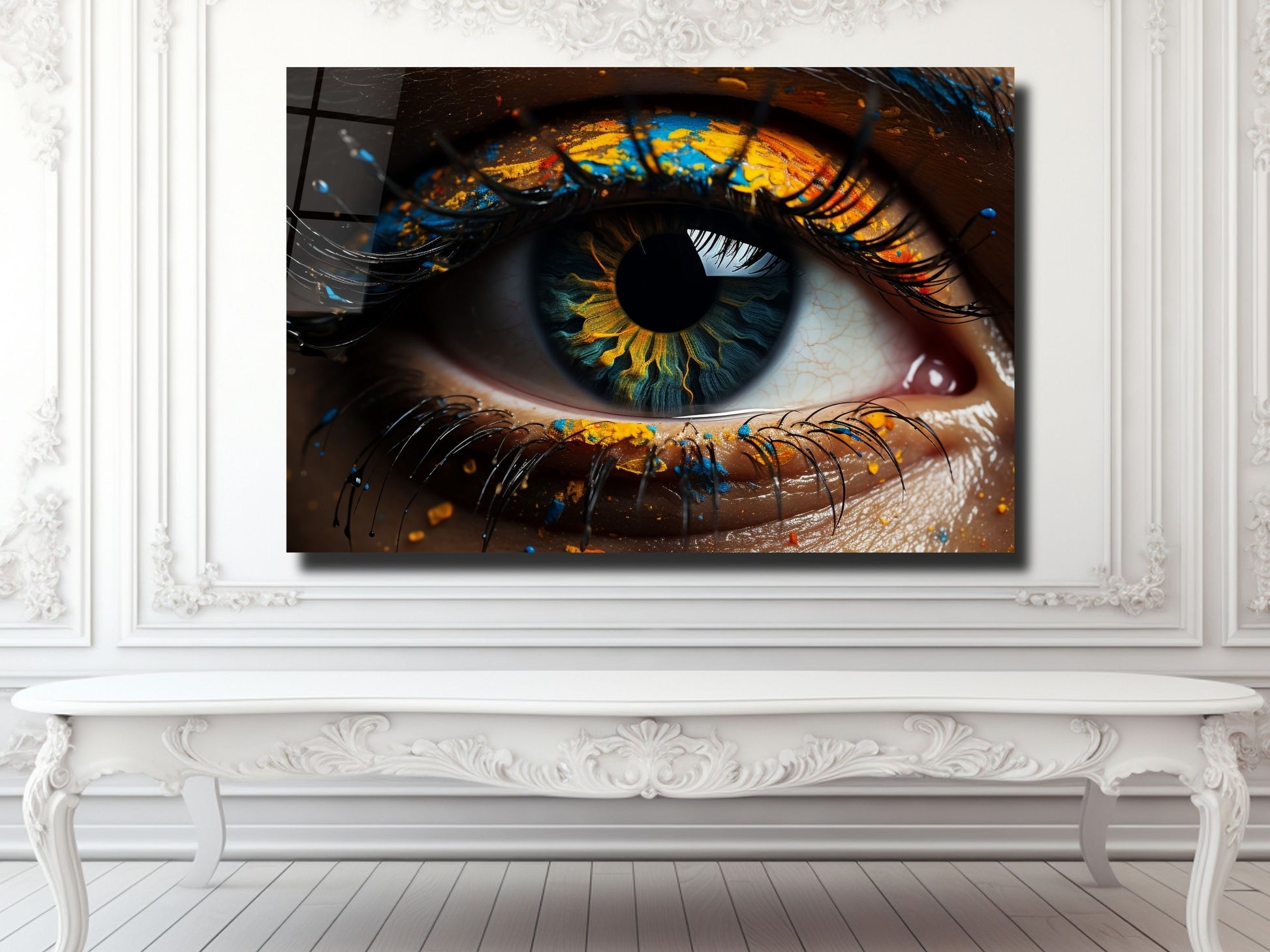 Soyut Renkli Göz Cam Tablo - Dekoratif Tablo