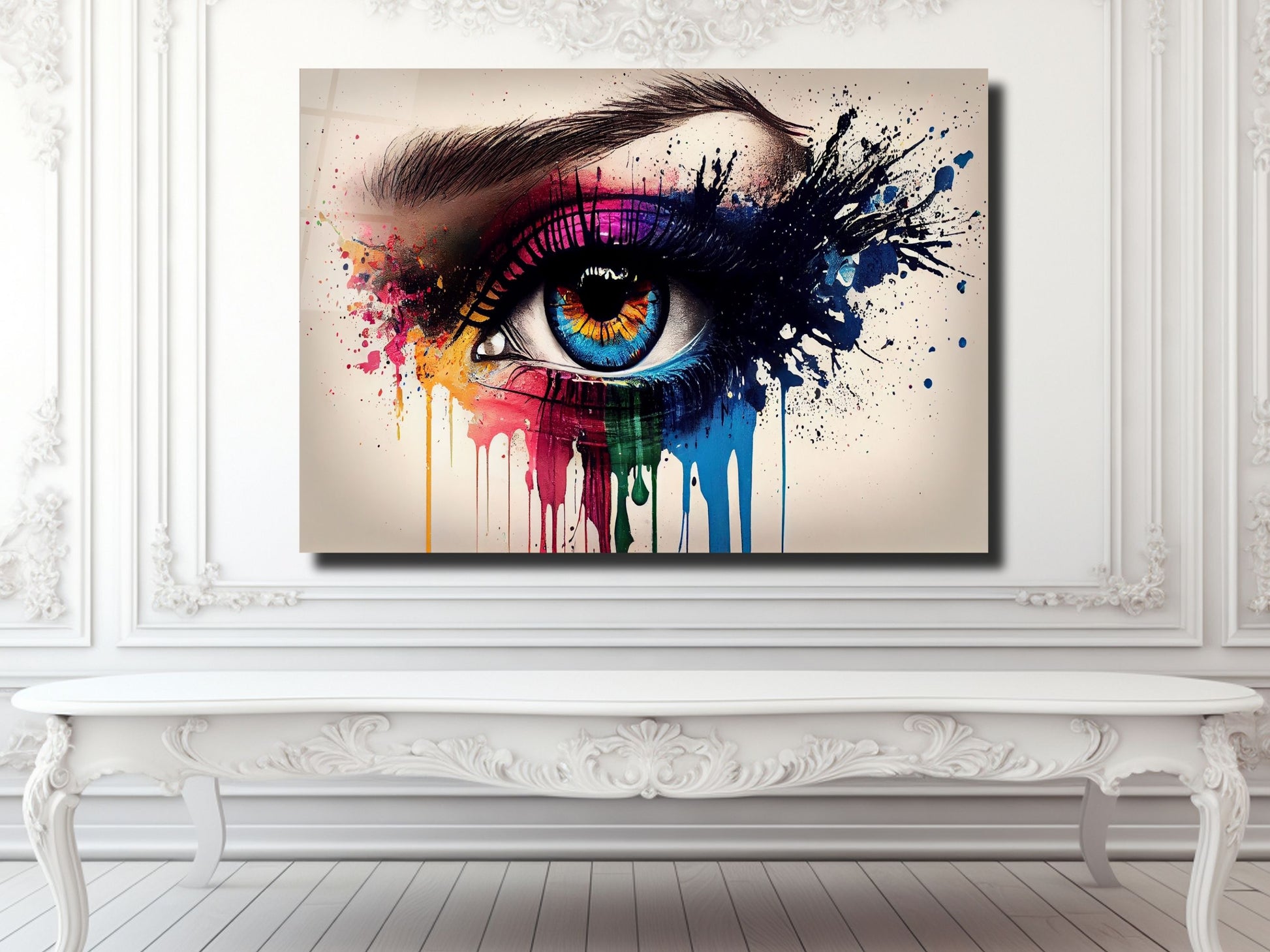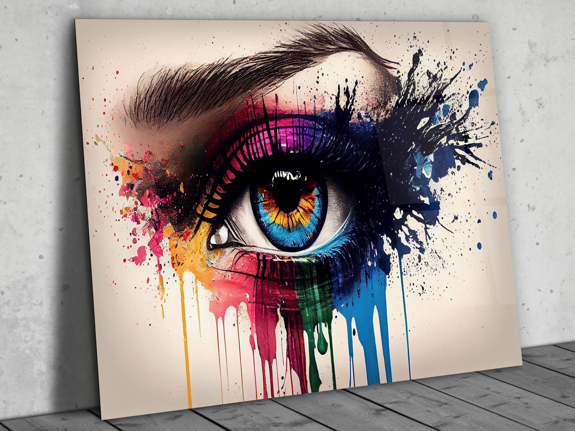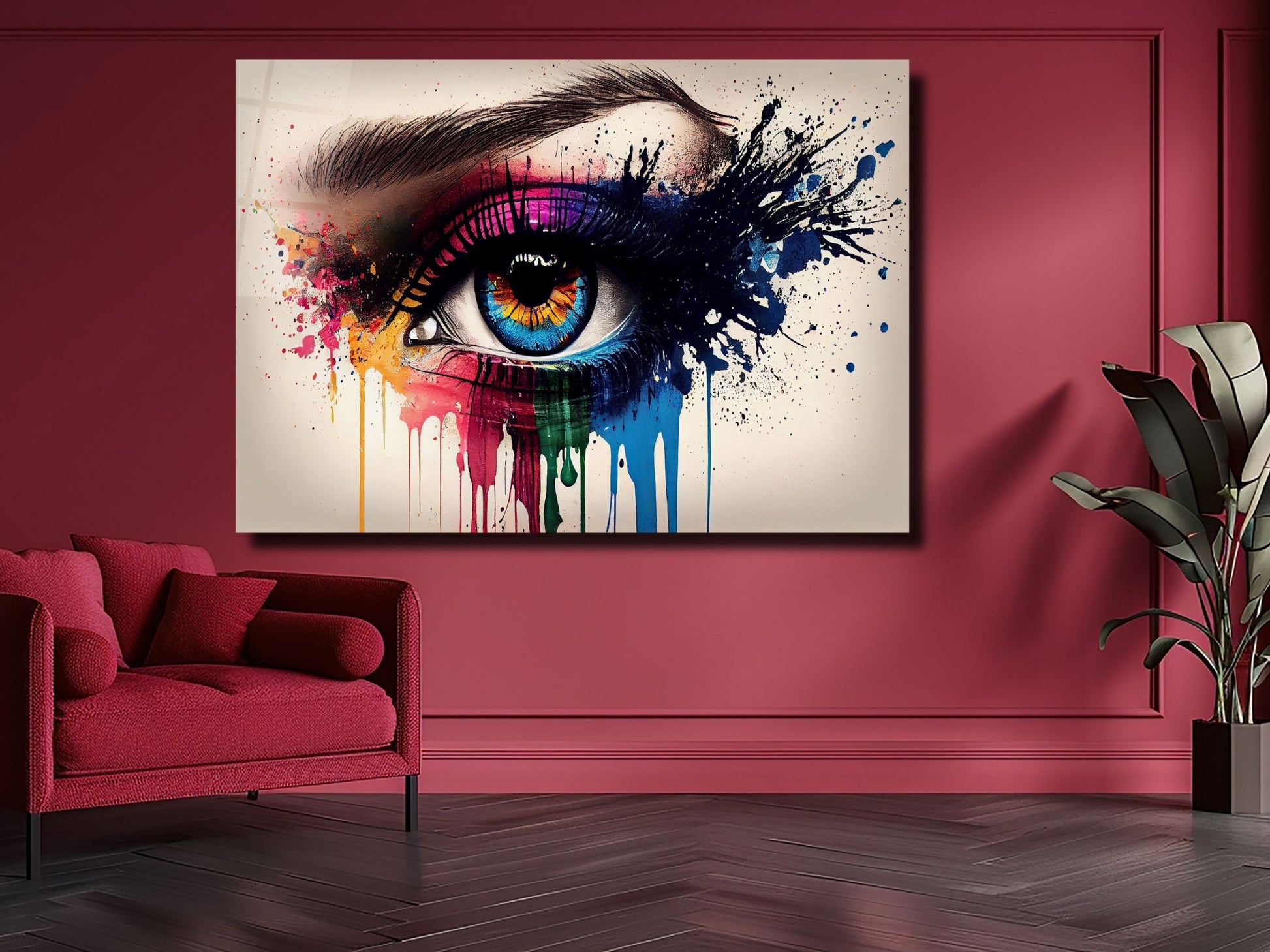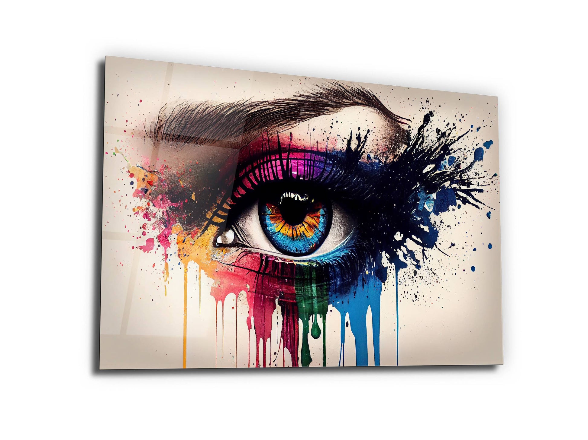 Soyut Renkli Göz Cam Tablo - Dekoratif Tablo