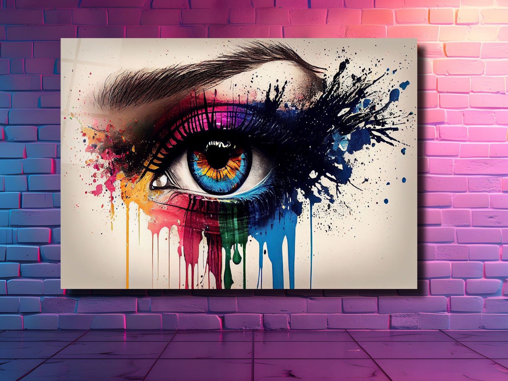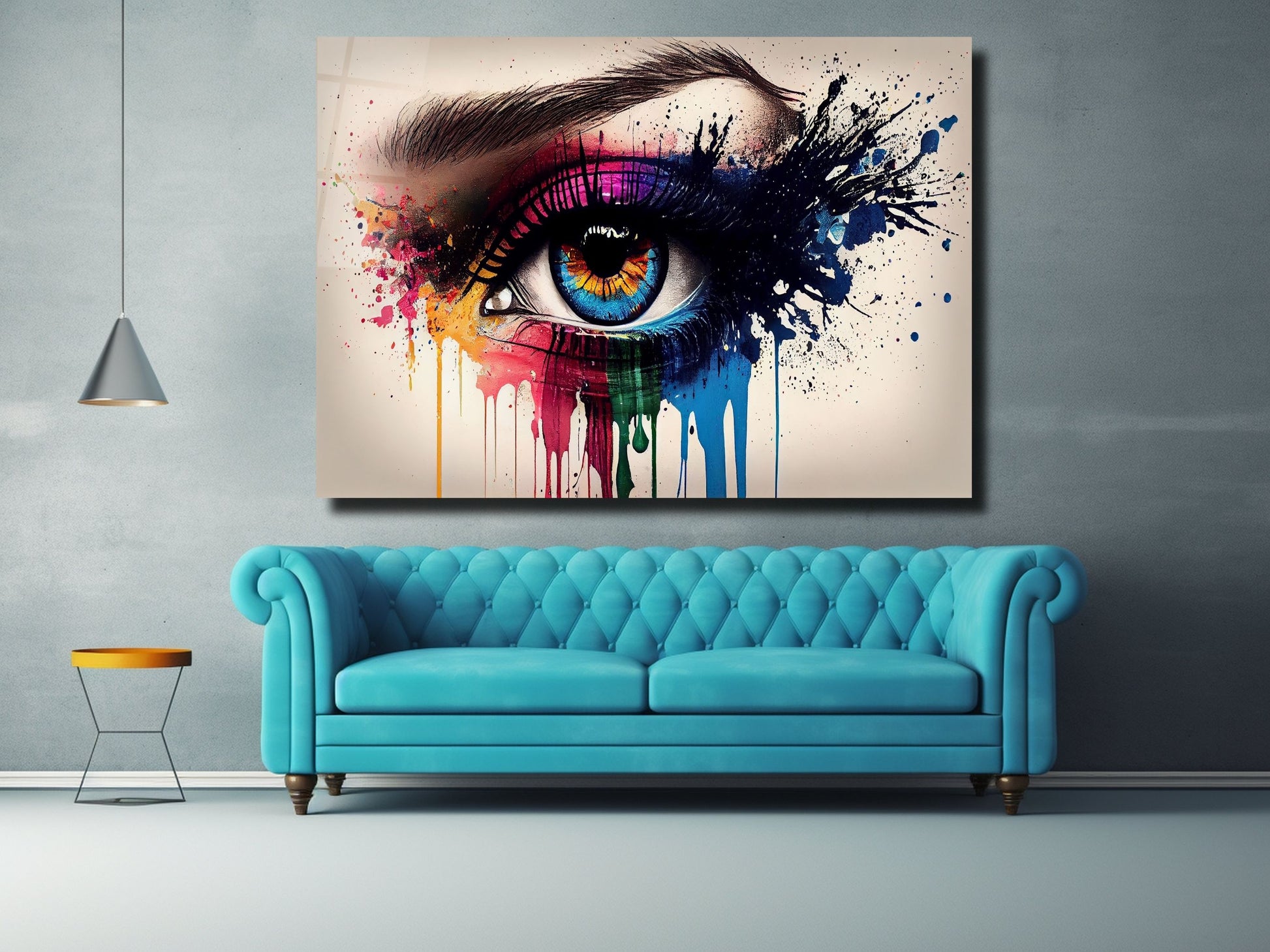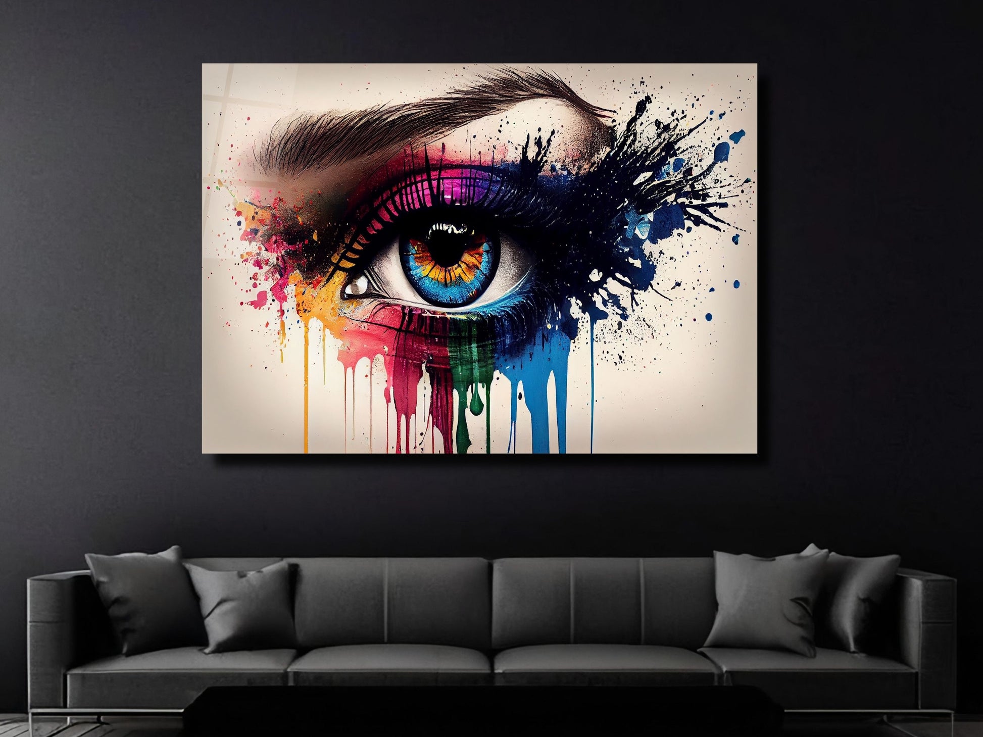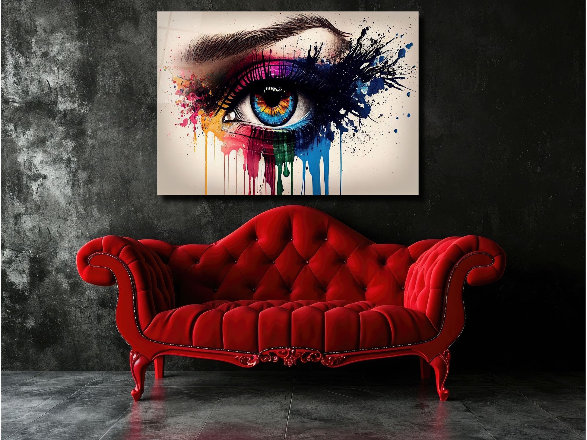 Soyut Renkli Göz Cam Tablo - Dekoratif Tablo