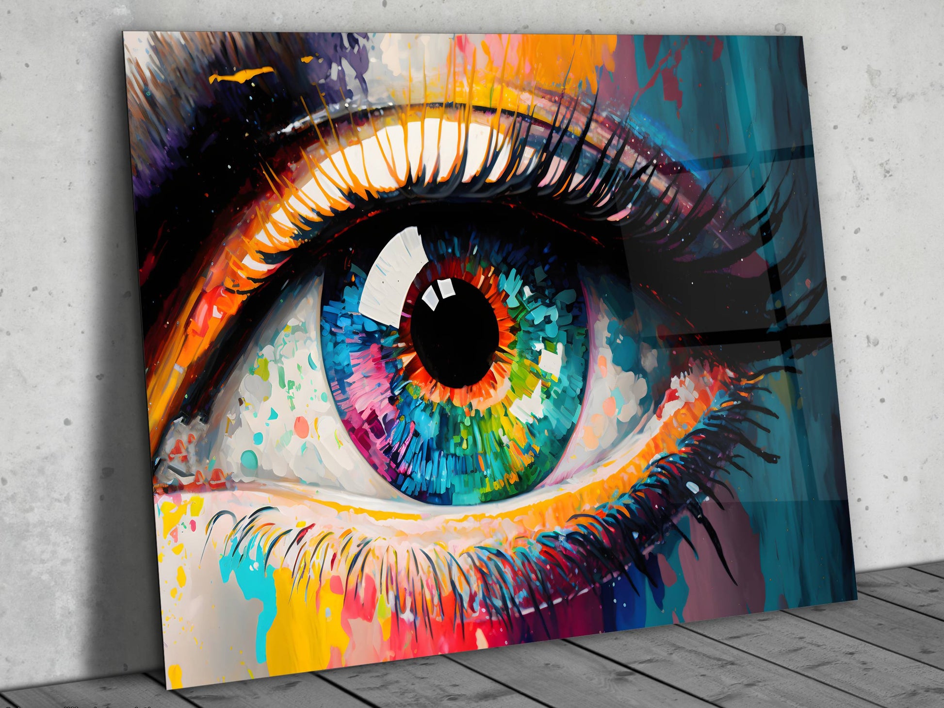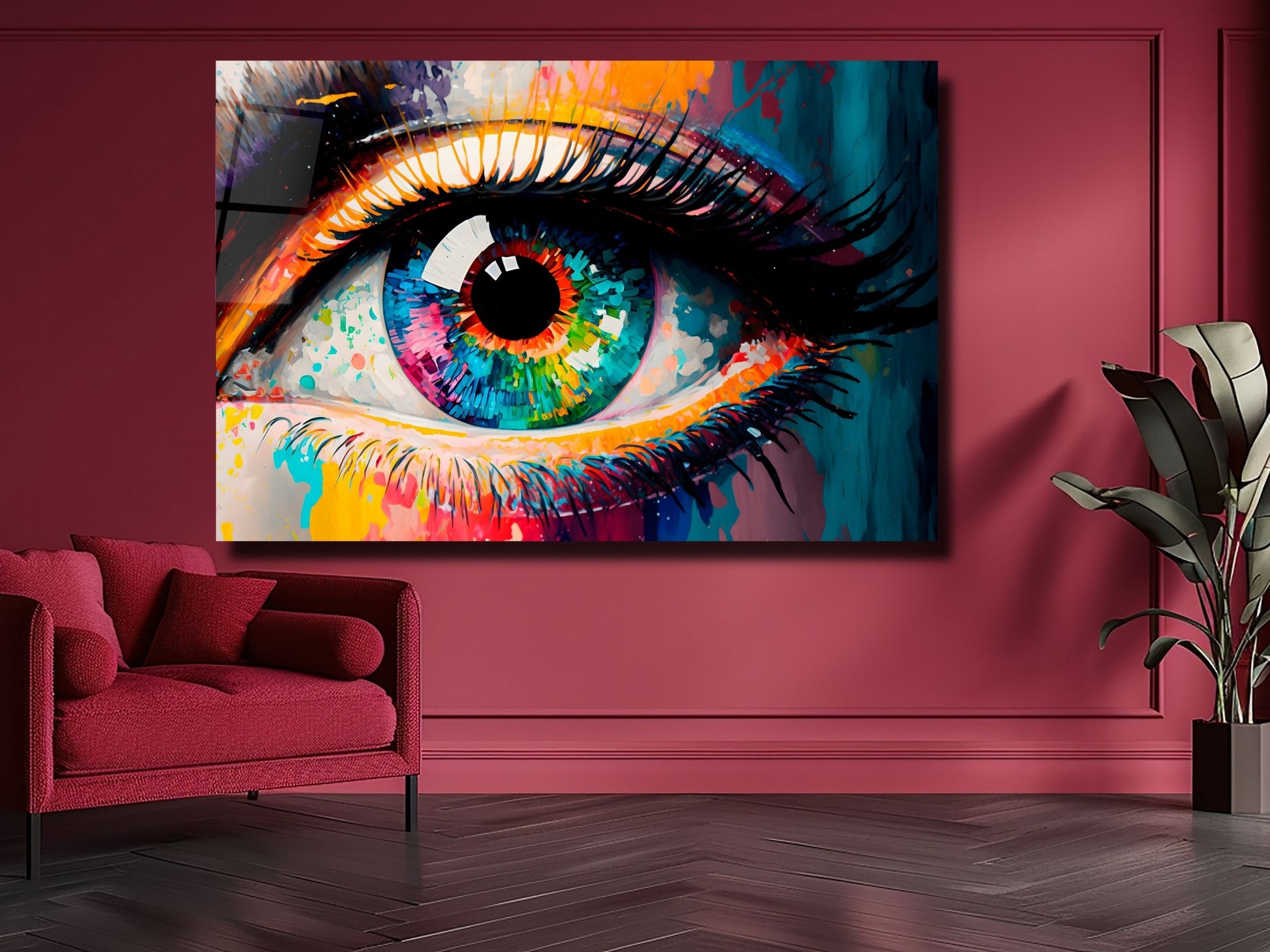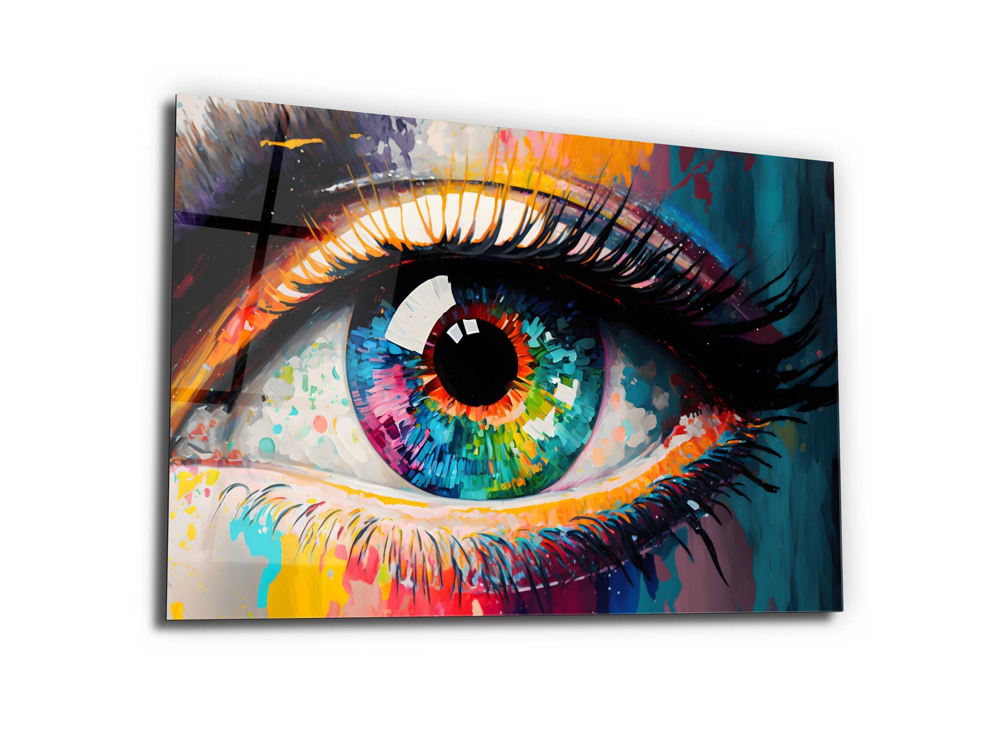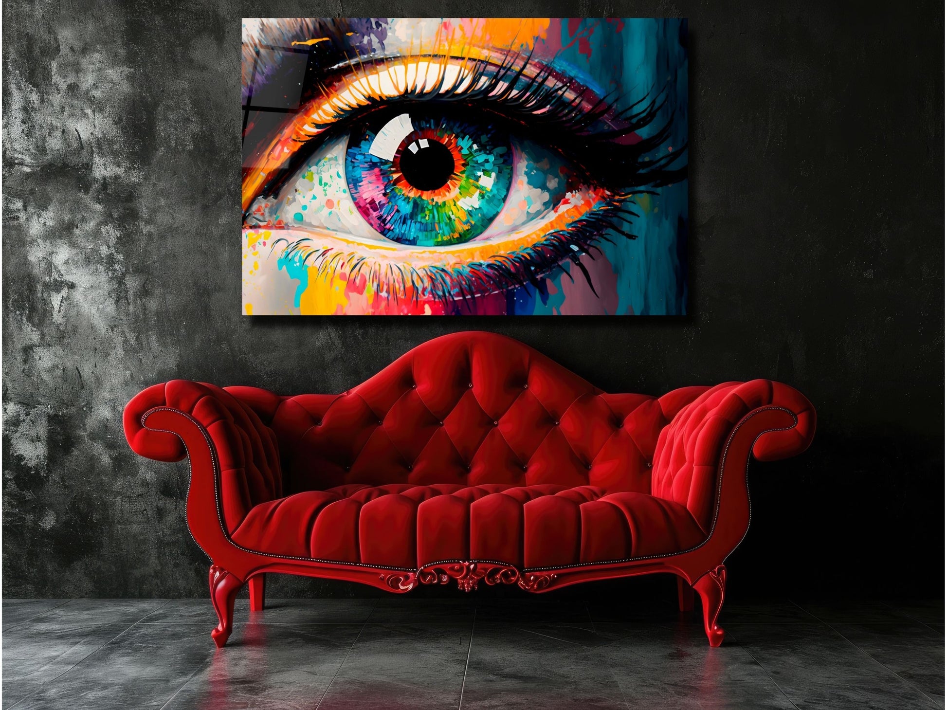 Soyut Renkli Göz Cam Tablo - Dekoratif Tablo