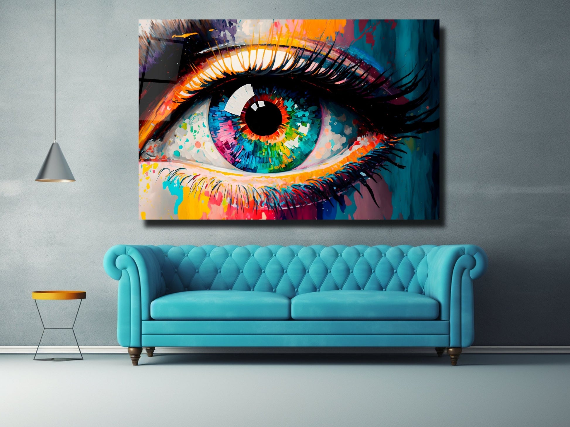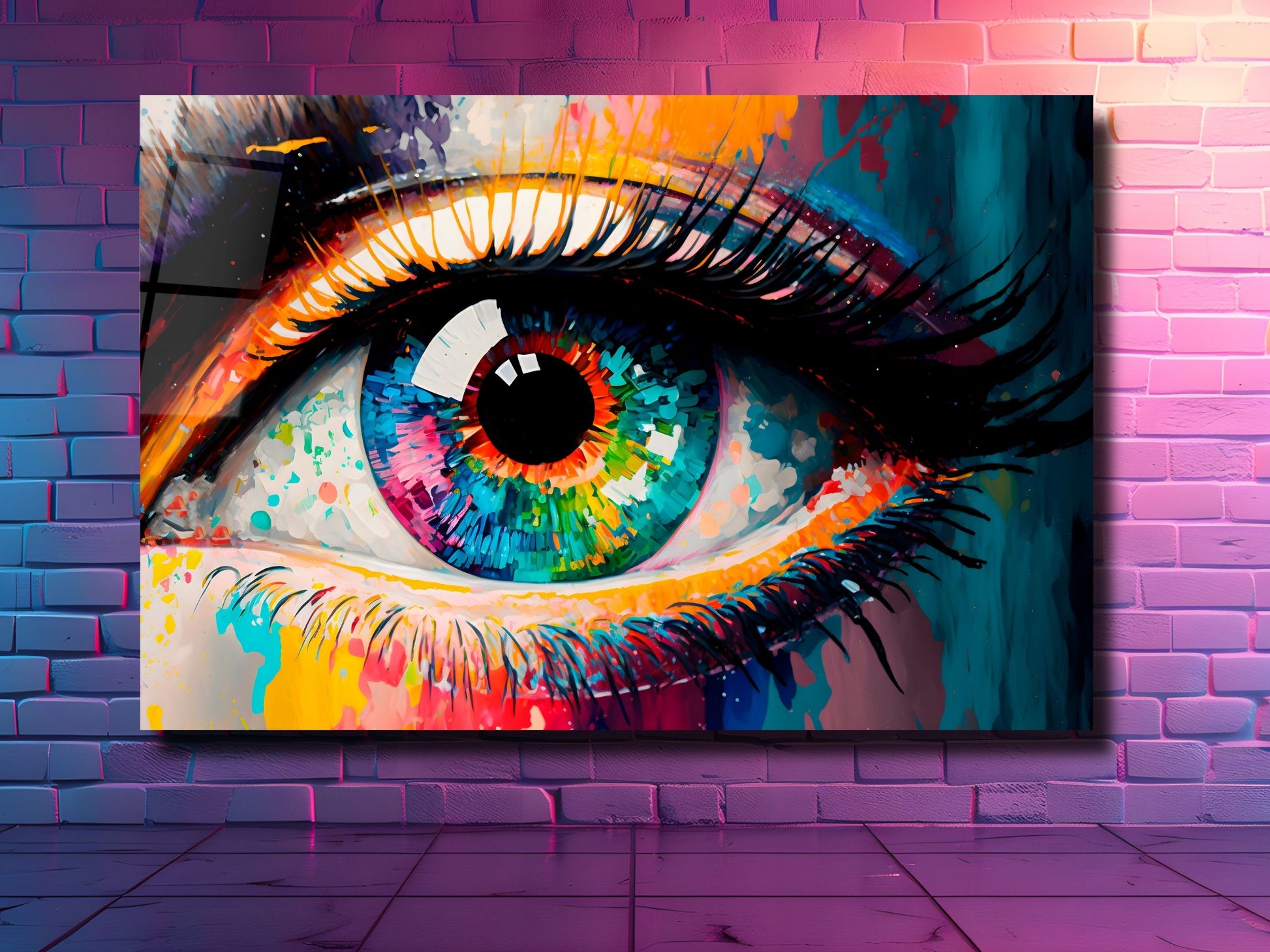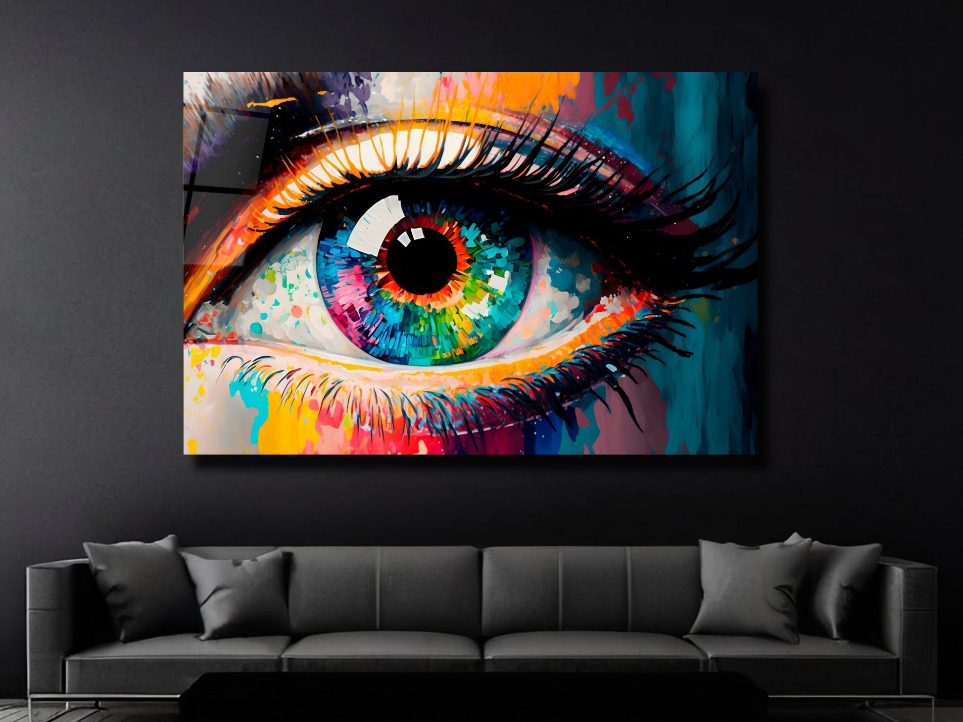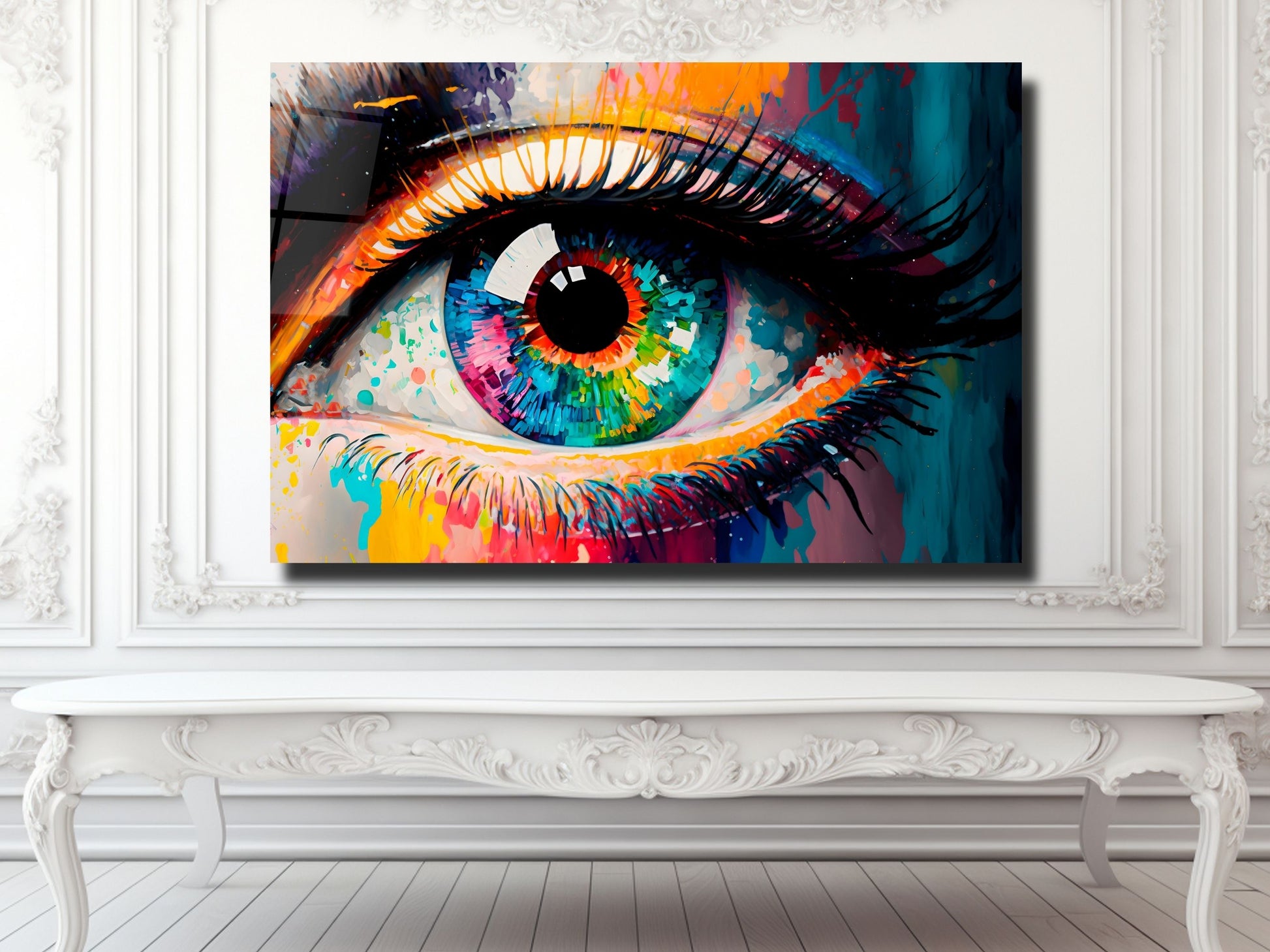 Soyut Renkli Göz Cam Tablo - Dekoratif Tablo