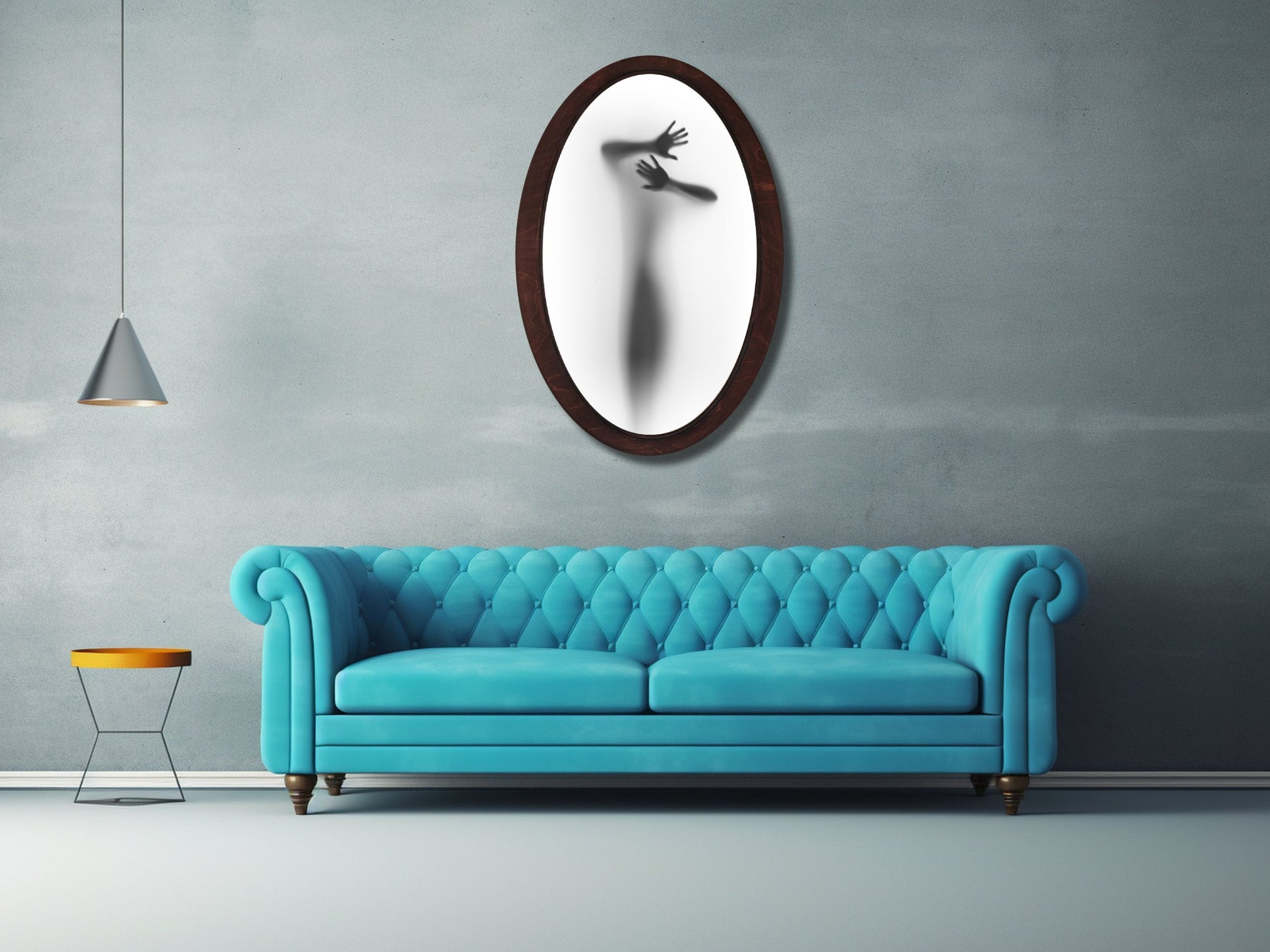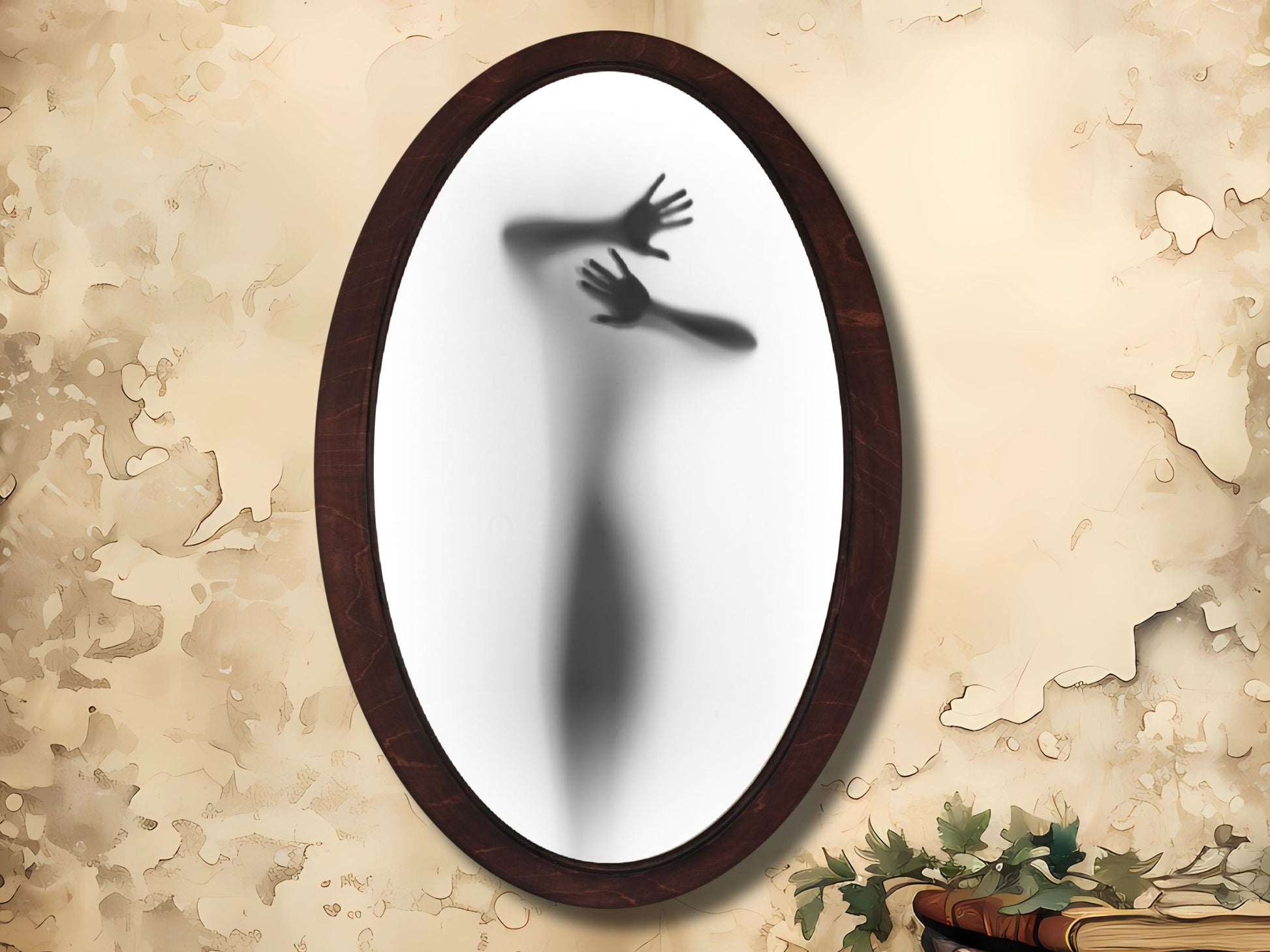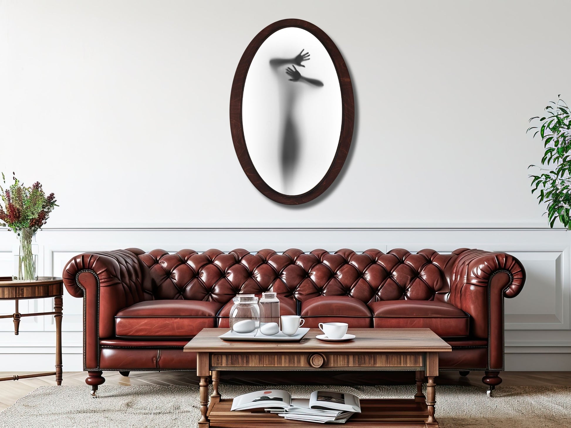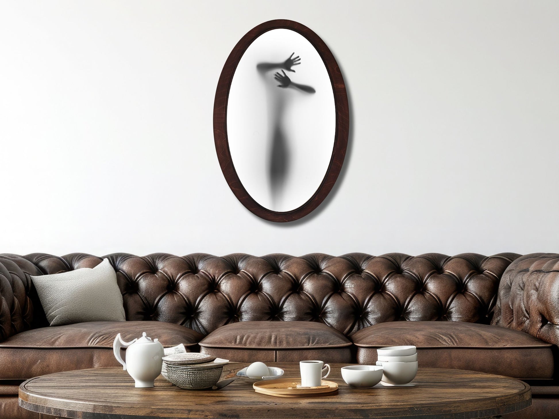 Soyut Silüet Temalı El Yapımı Oval Ahşap Tablo - Modern Gotik Duvar Dekoru