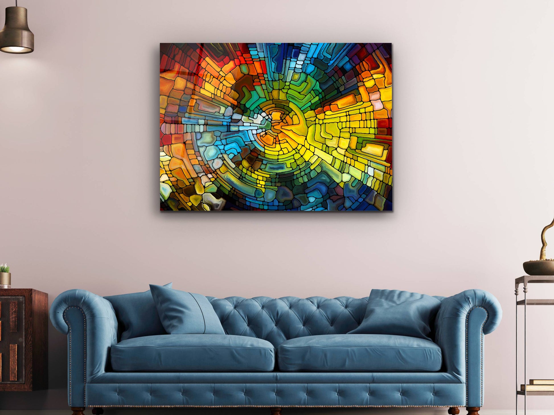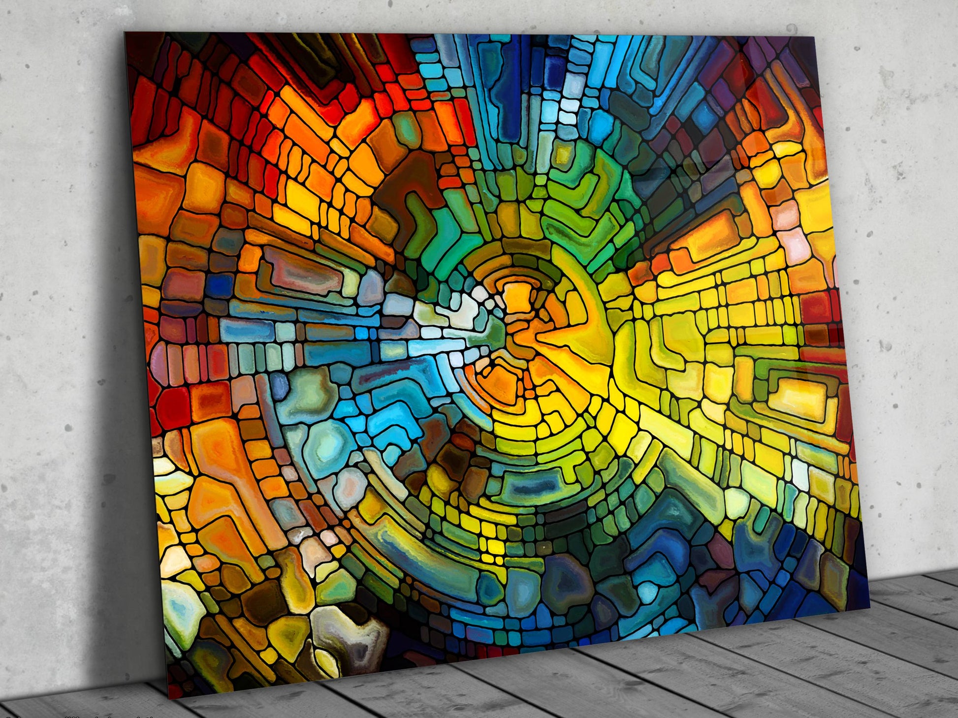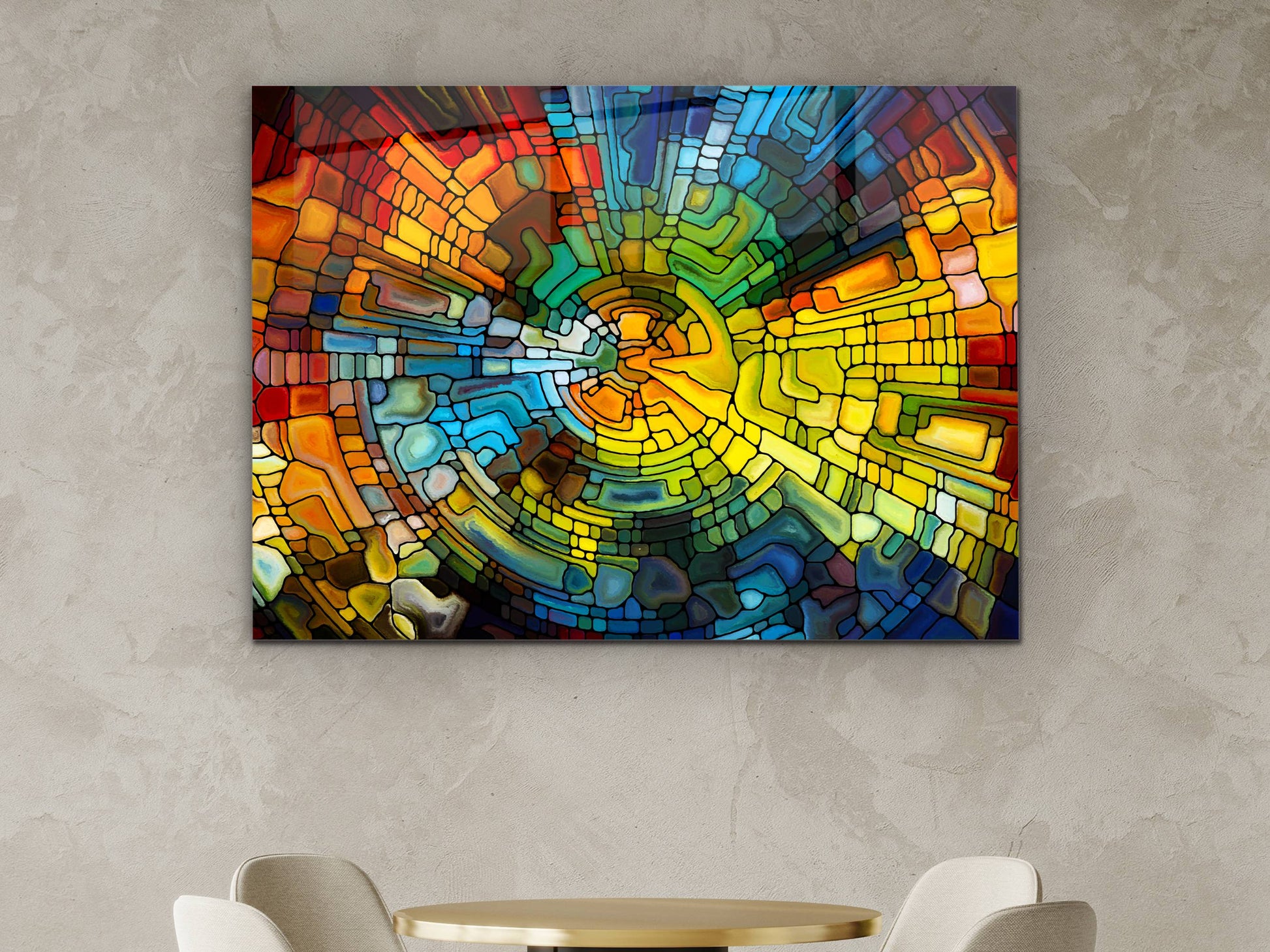 Soyut Vitray Cam Tablo - Renkli Temperli Cam Tablo- Dekoratif Duvar Tablosu