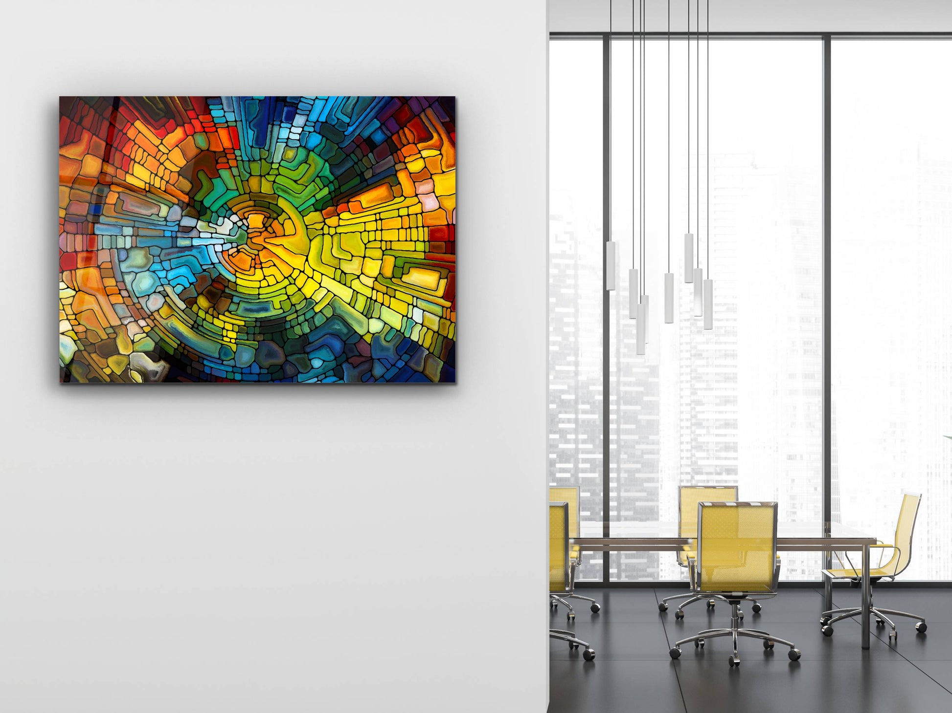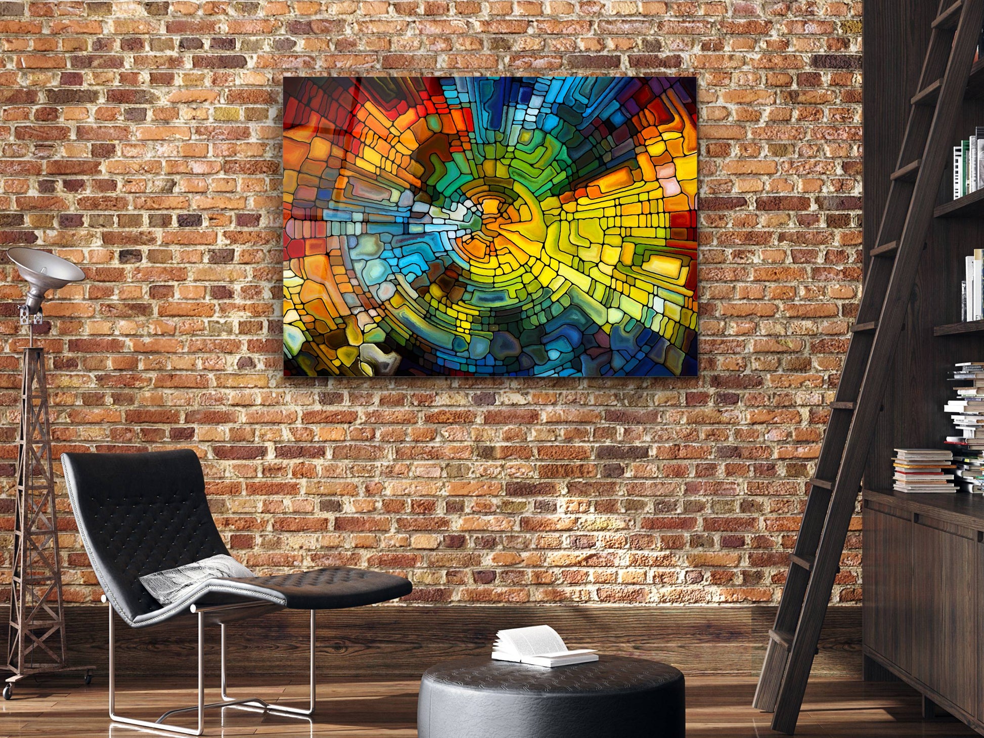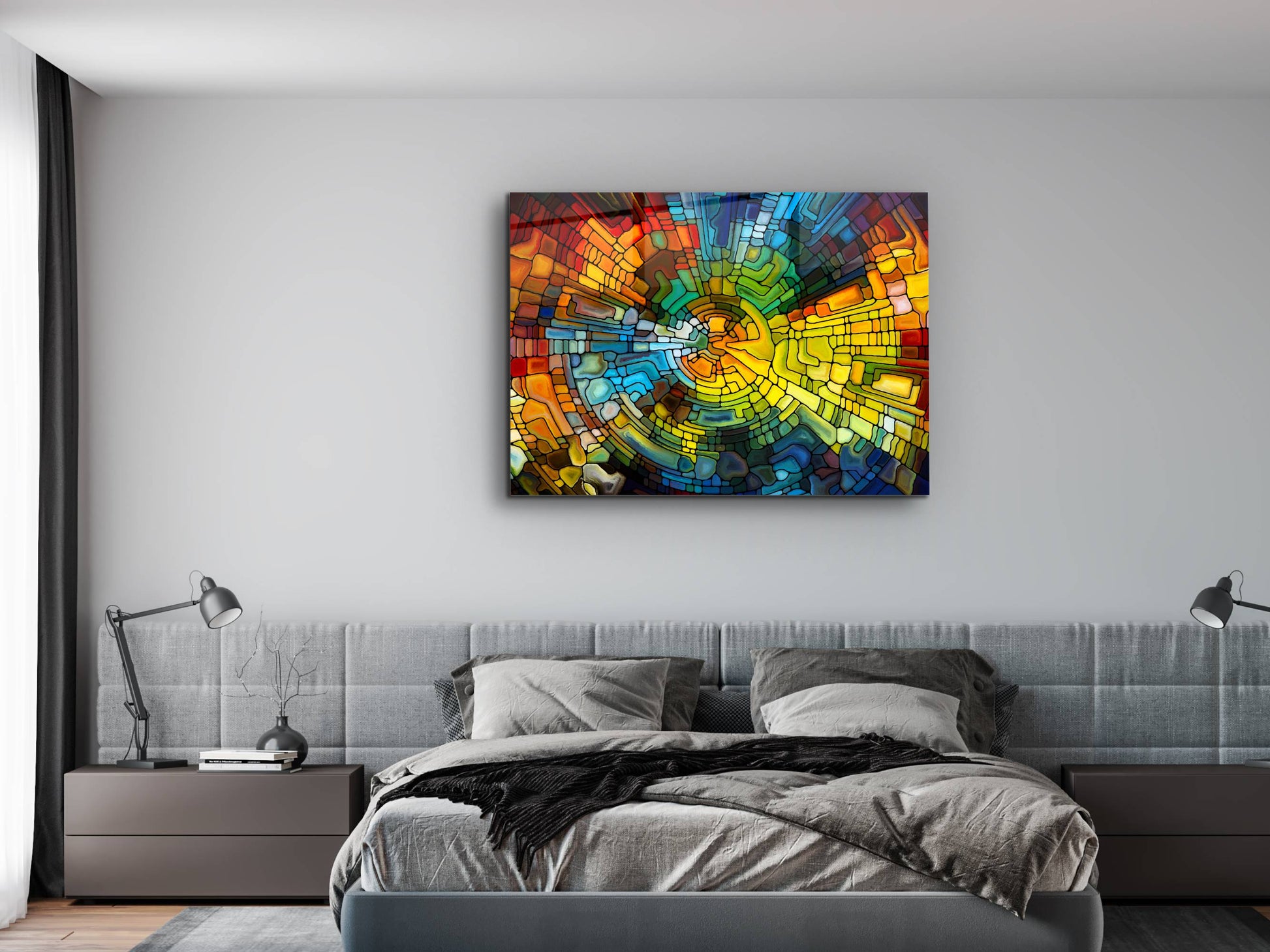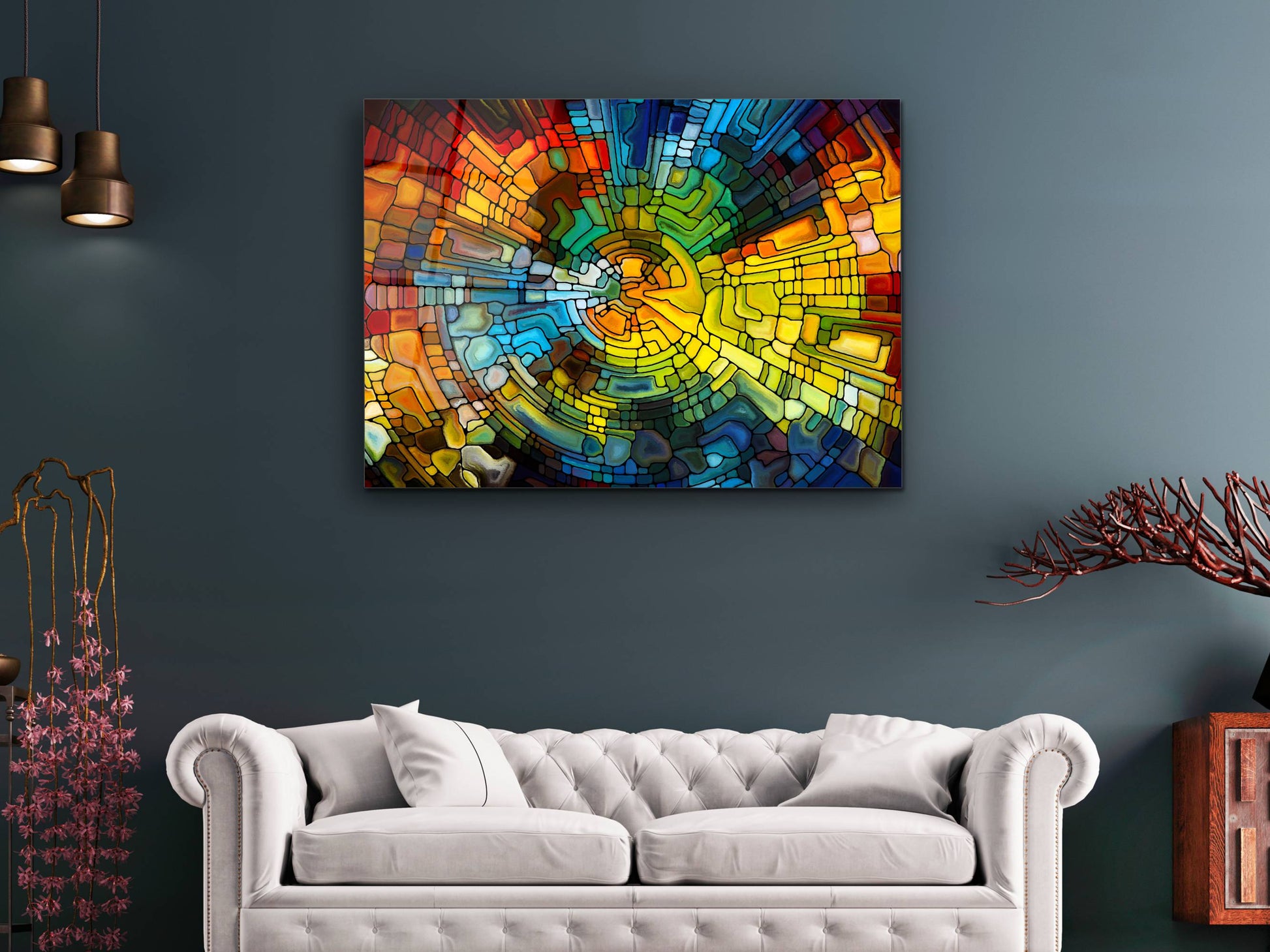 Soyut Vitray Cam Tablo - Renkli Temperli Cam Tablo- Dekoratif Duvar Tablosu