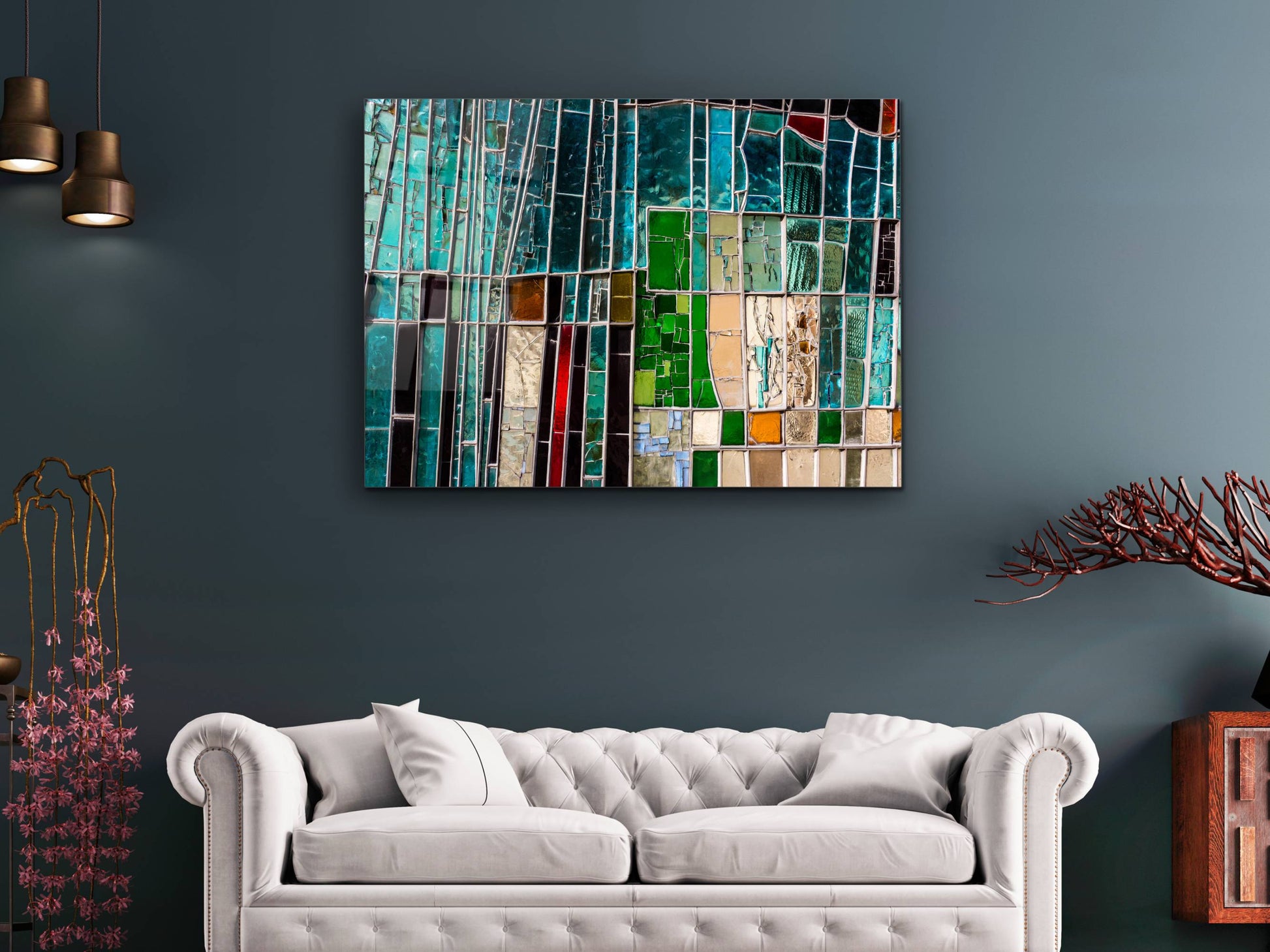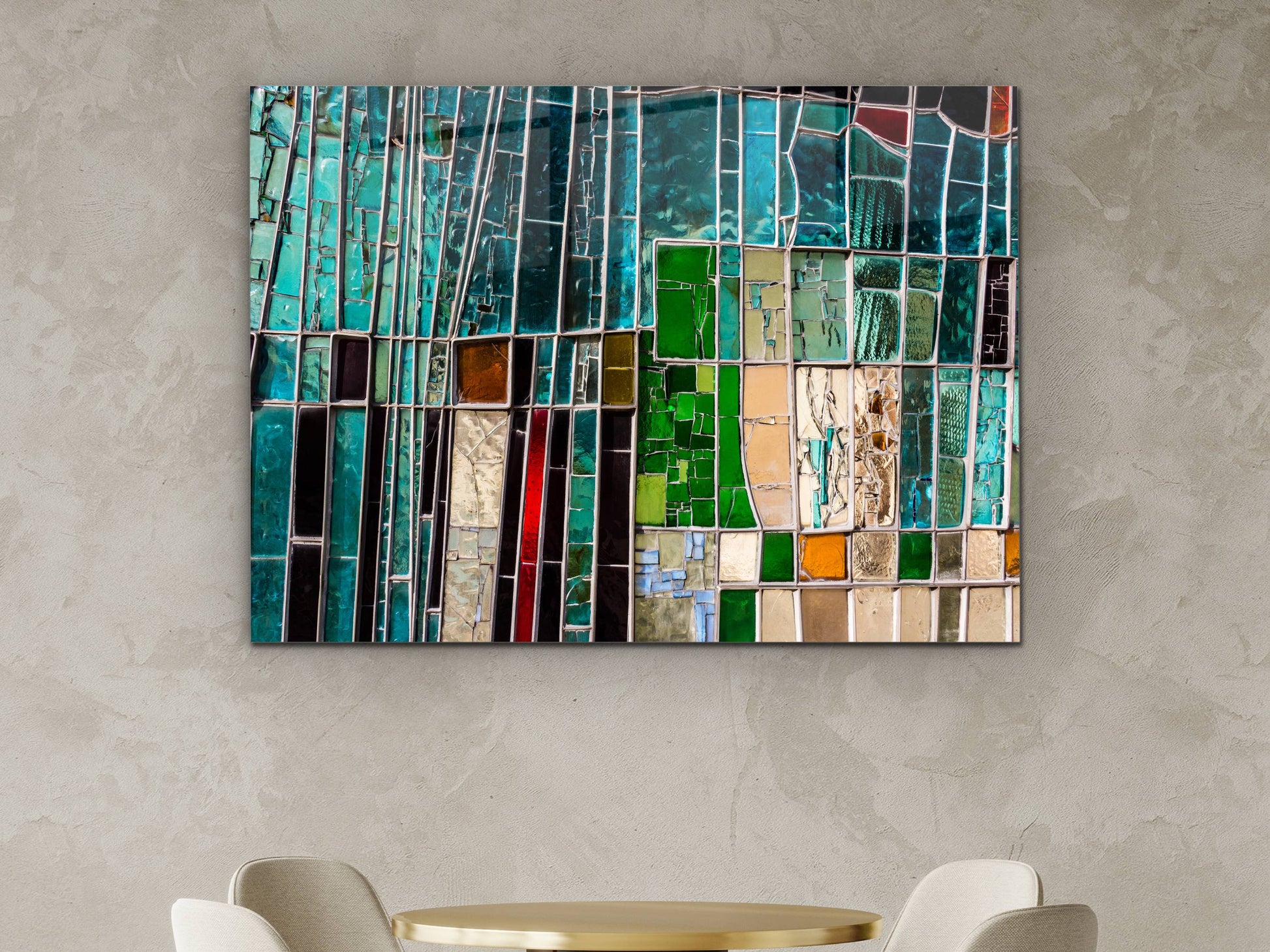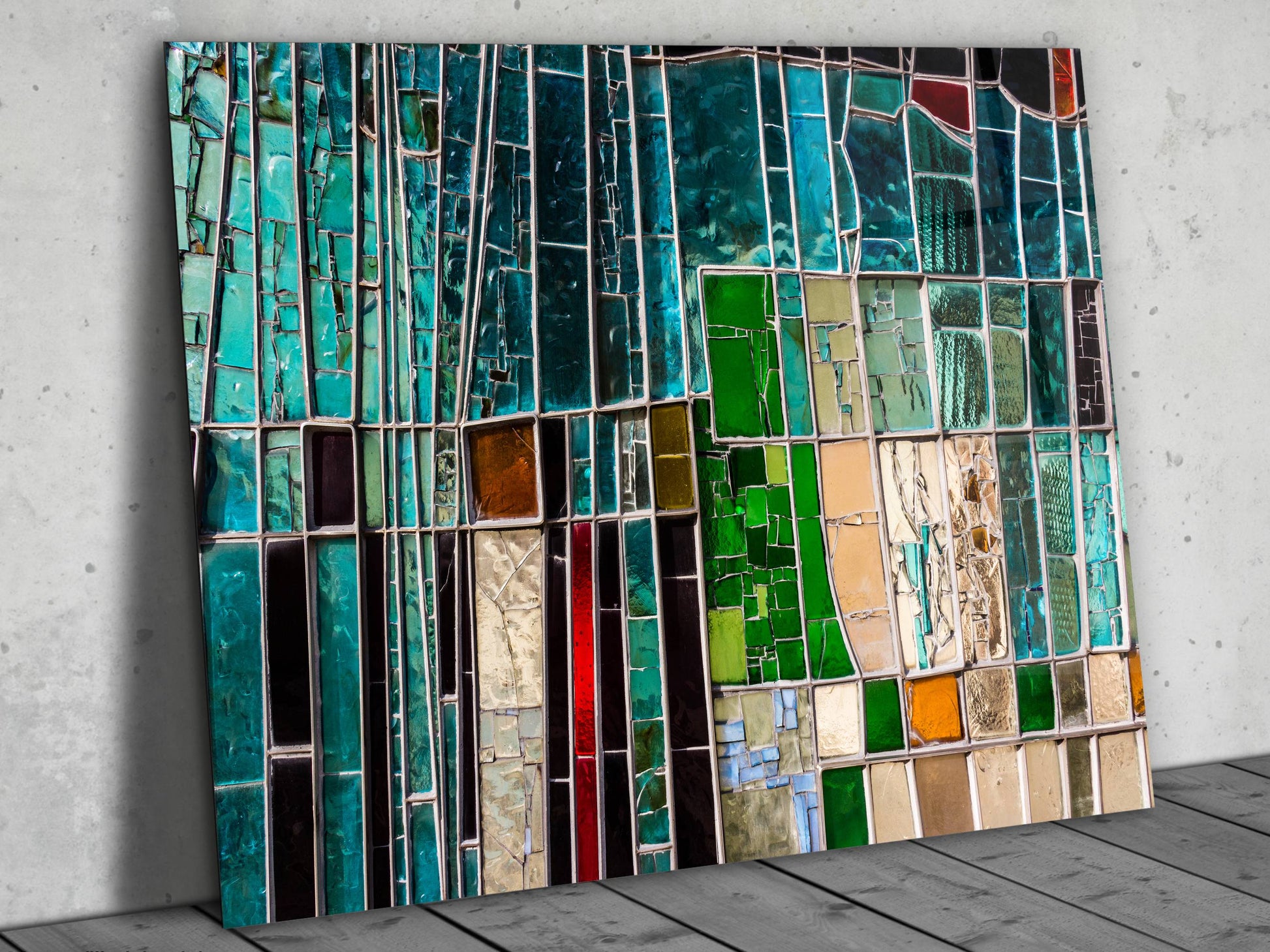 Soyut Vitray Cam Tablo - Renkli Temperli Cam Tablo - Soyut Duvar Dekoru