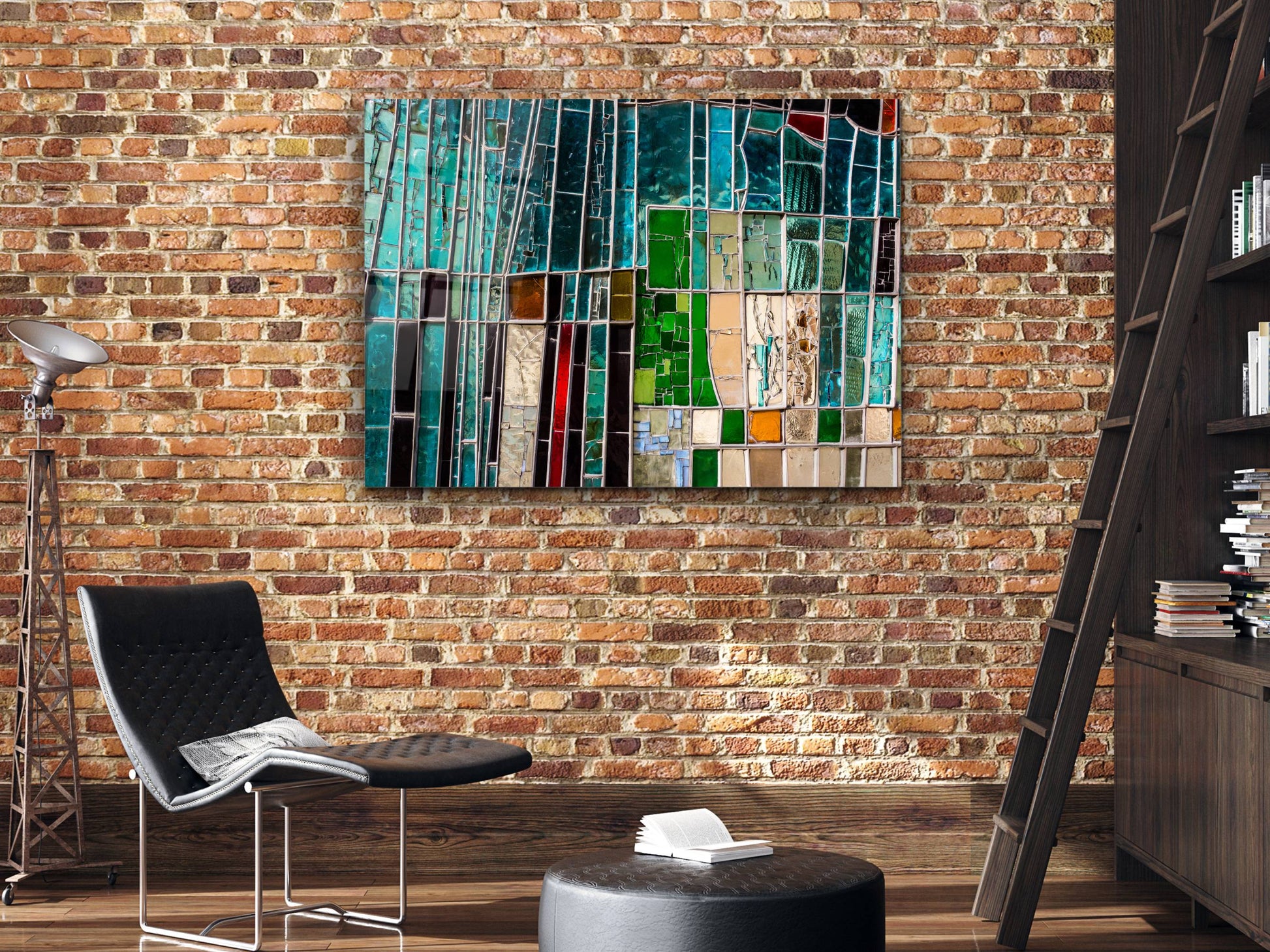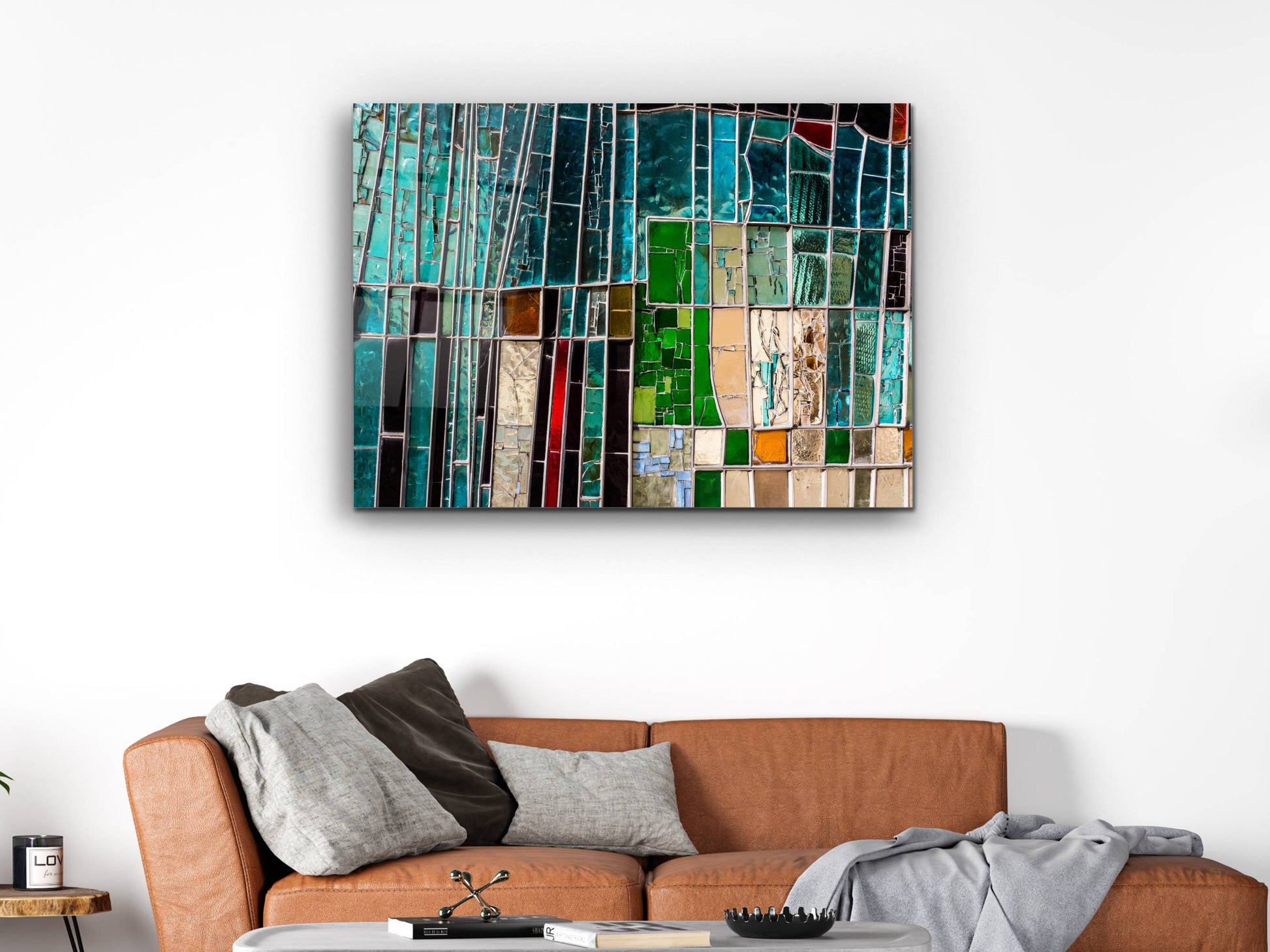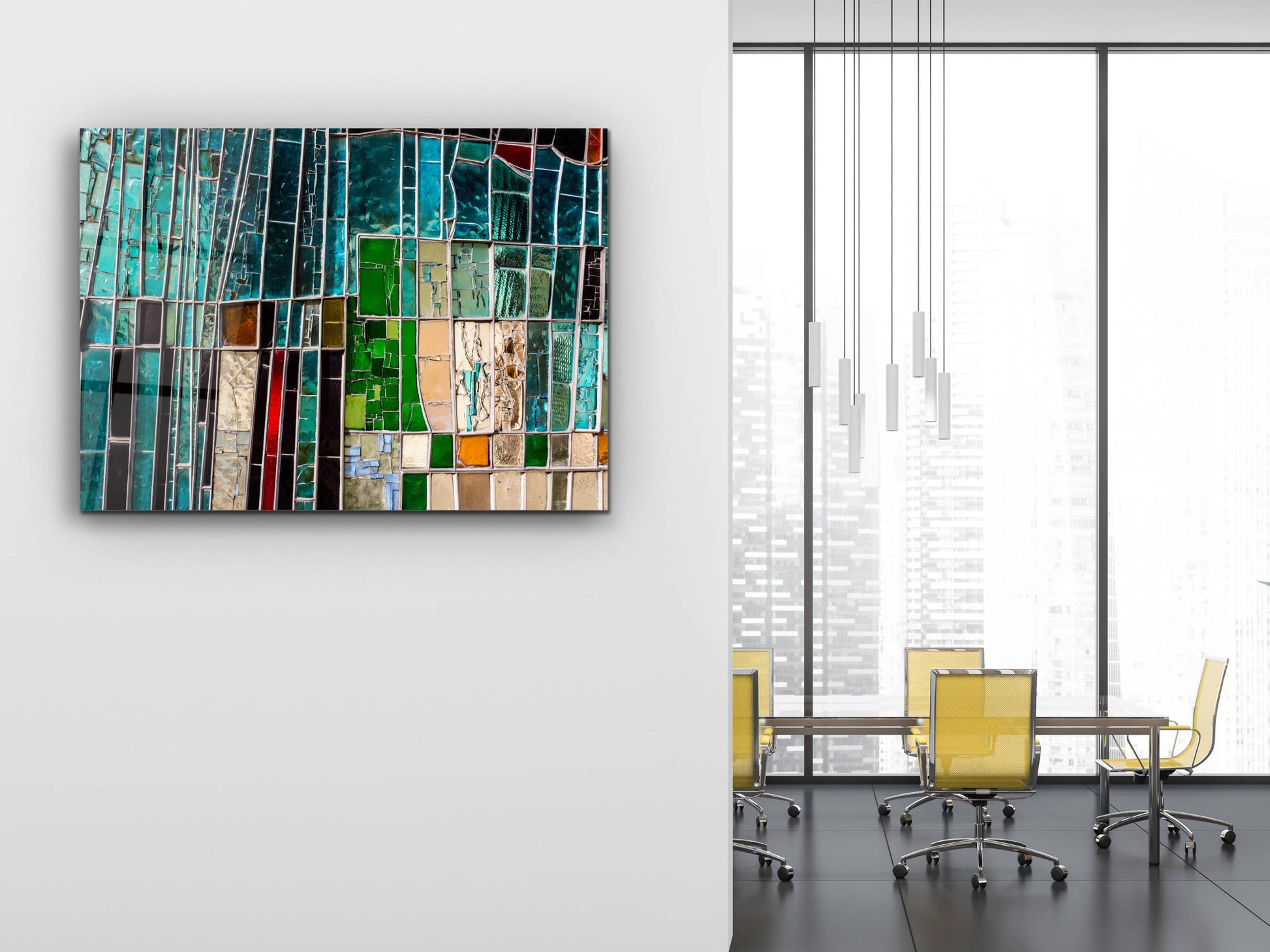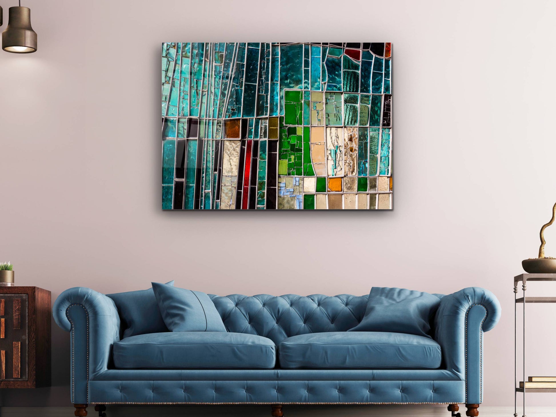 Soyut Vitray Cam Tablo - Renkli Temperli Cam Tablo - Soyut Duvar Dekoru