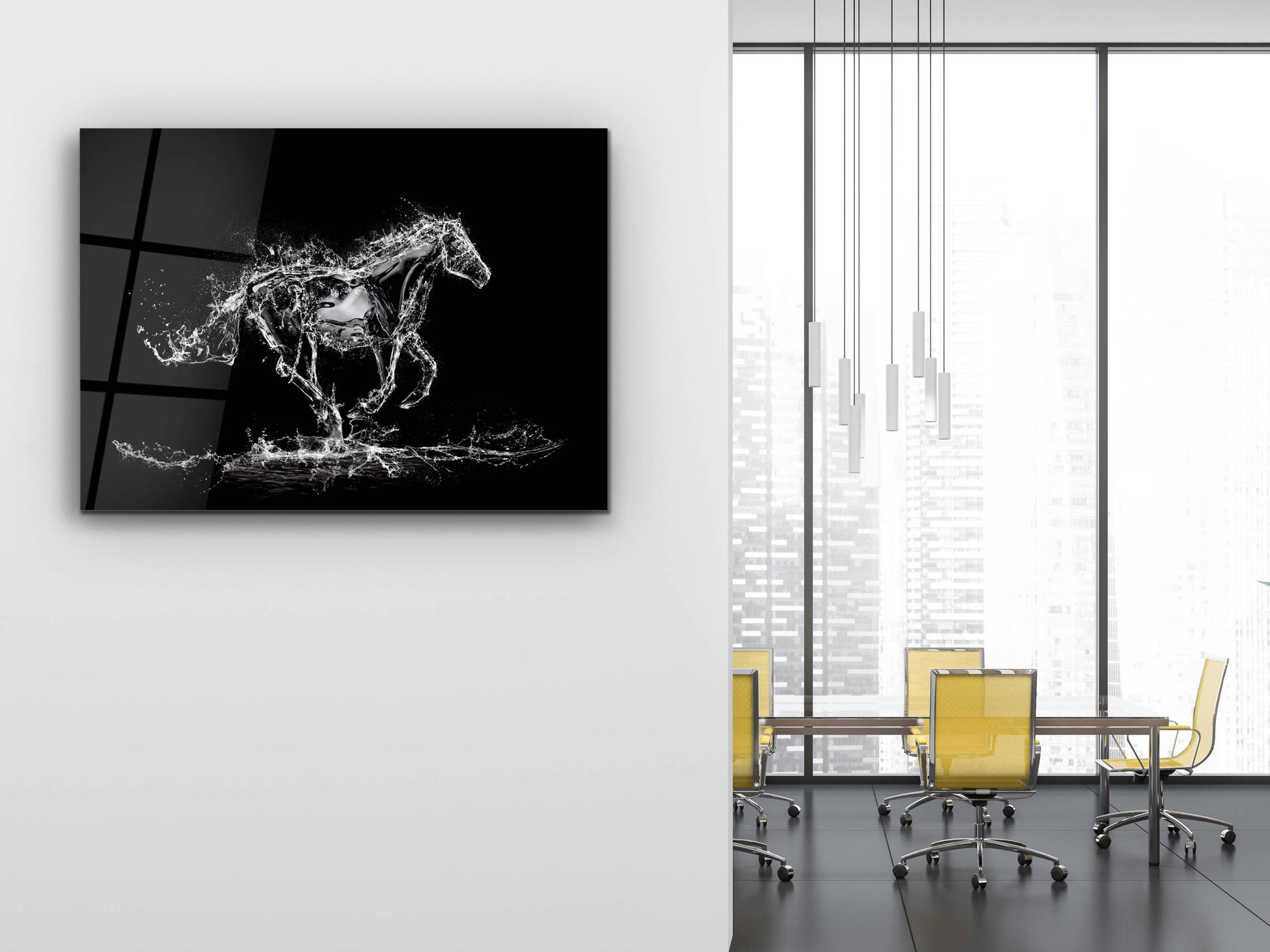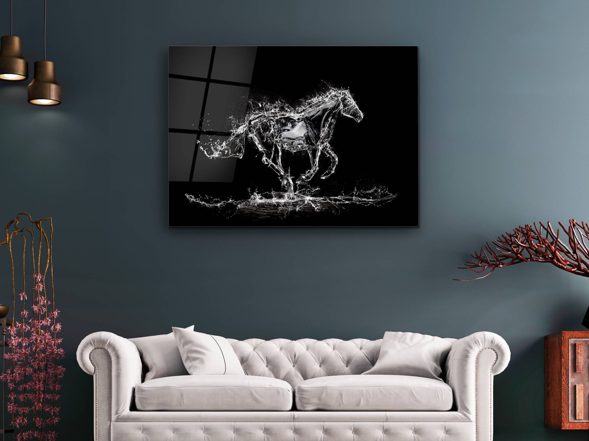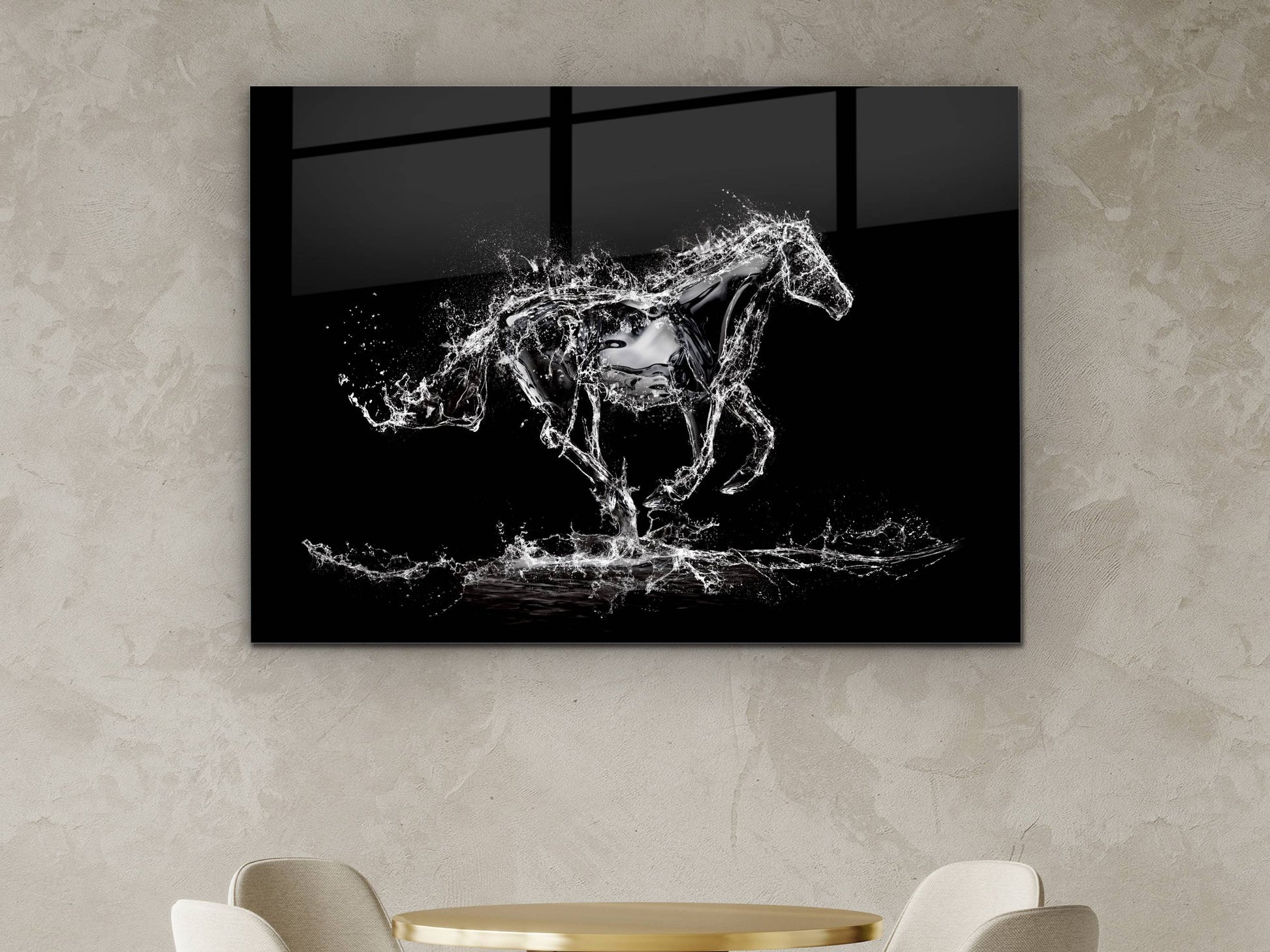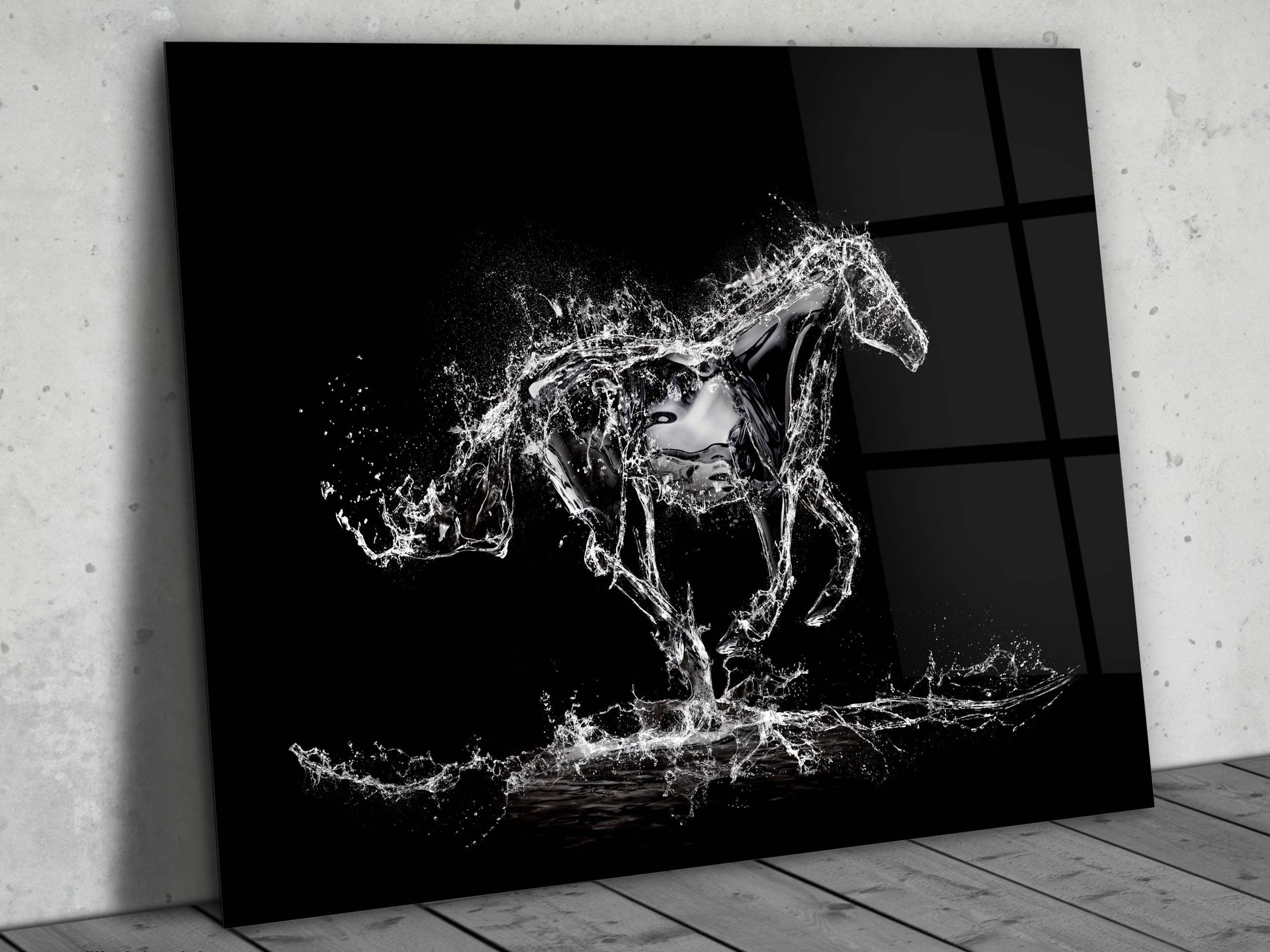 Su Atı Cam Duvar Tablosu – Soyut ve Modern Dekoratif Ev ve Ofis Tablosu