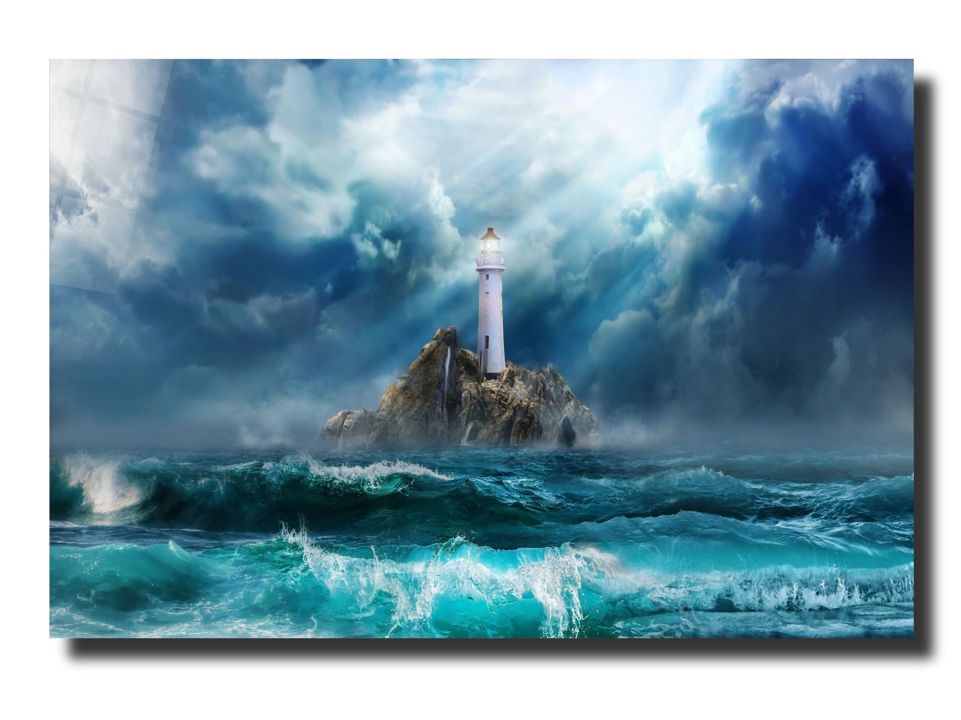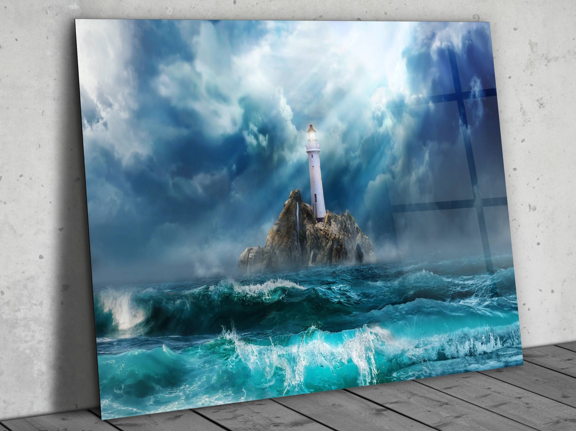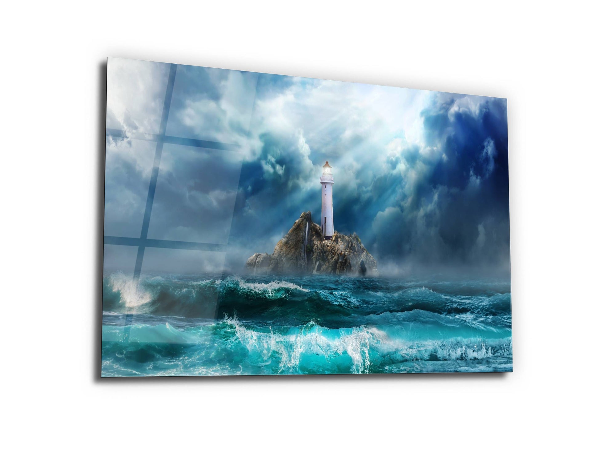 Deniz Feneri ve Okyanus Cam Tablo - Dekoratif Tablo