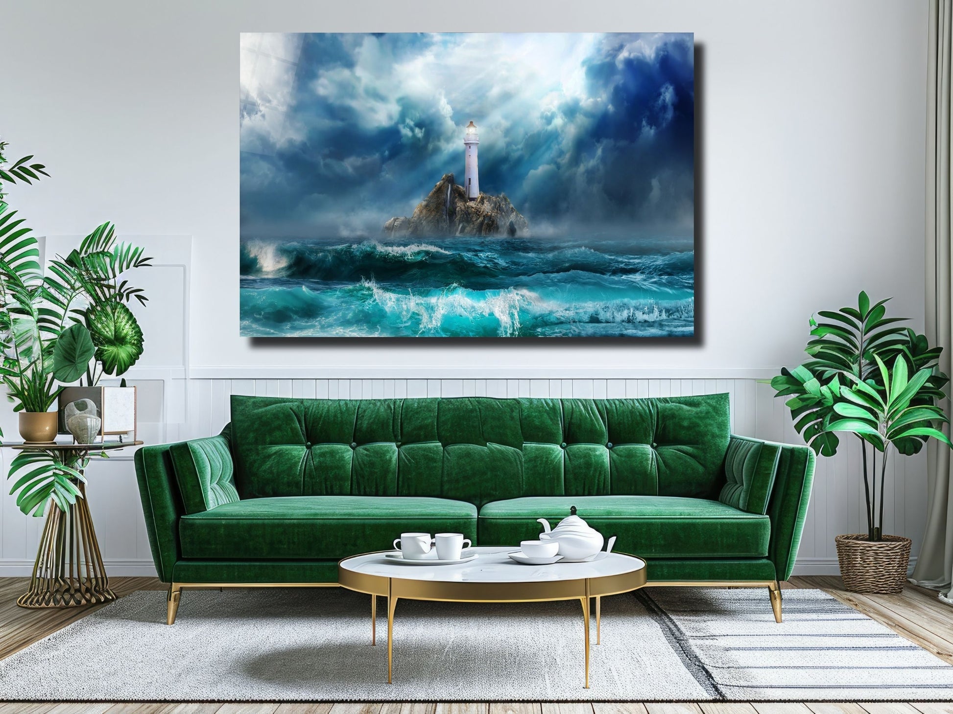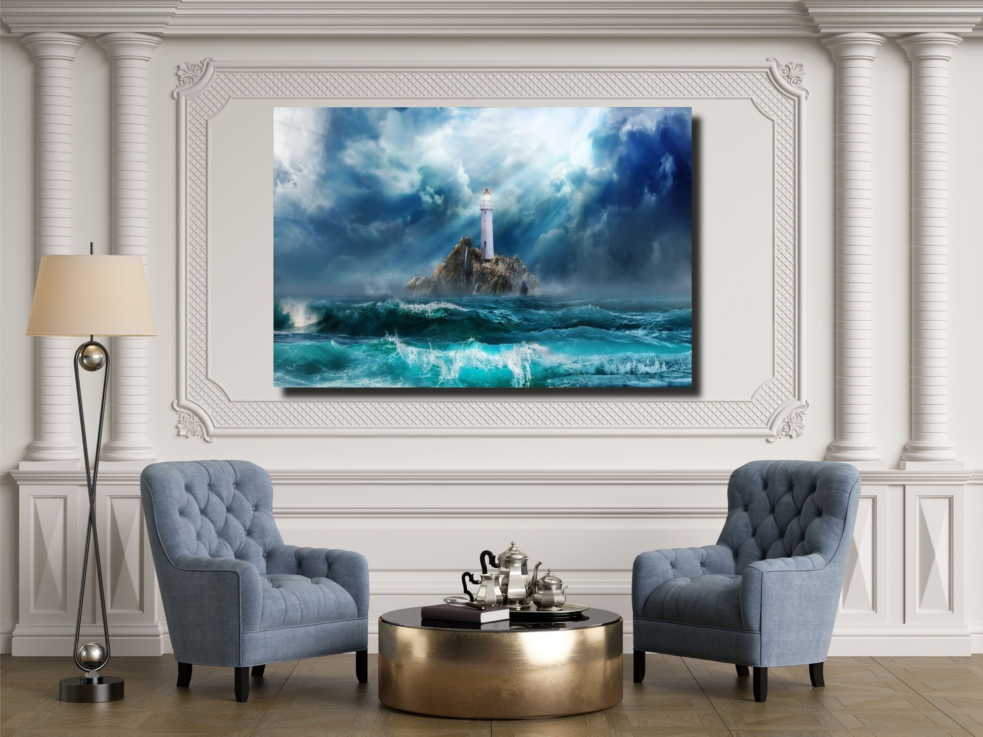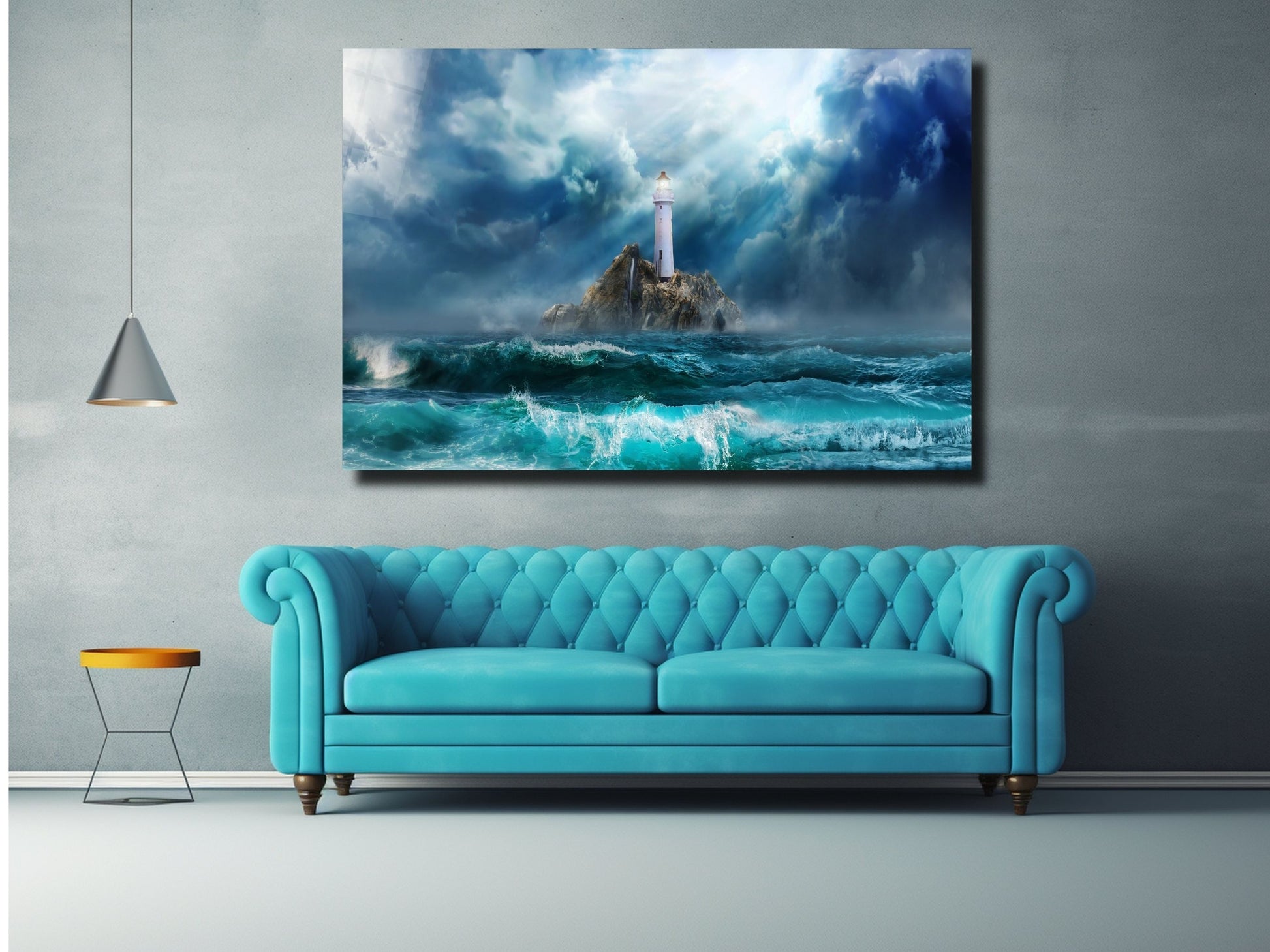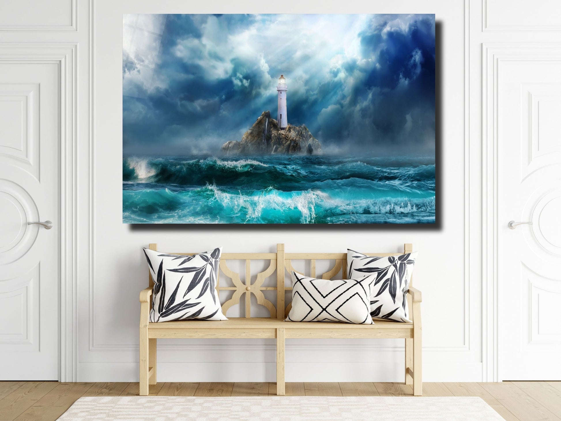 Deniz Feneri ve Okyanus Cam Tablo - Dekoratif Tablo
