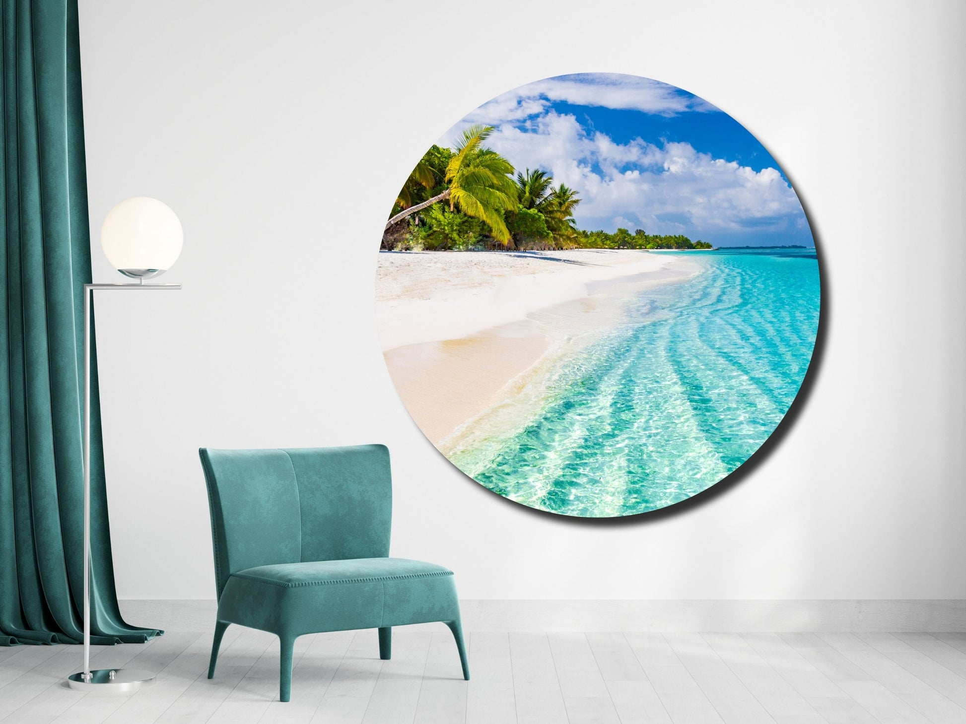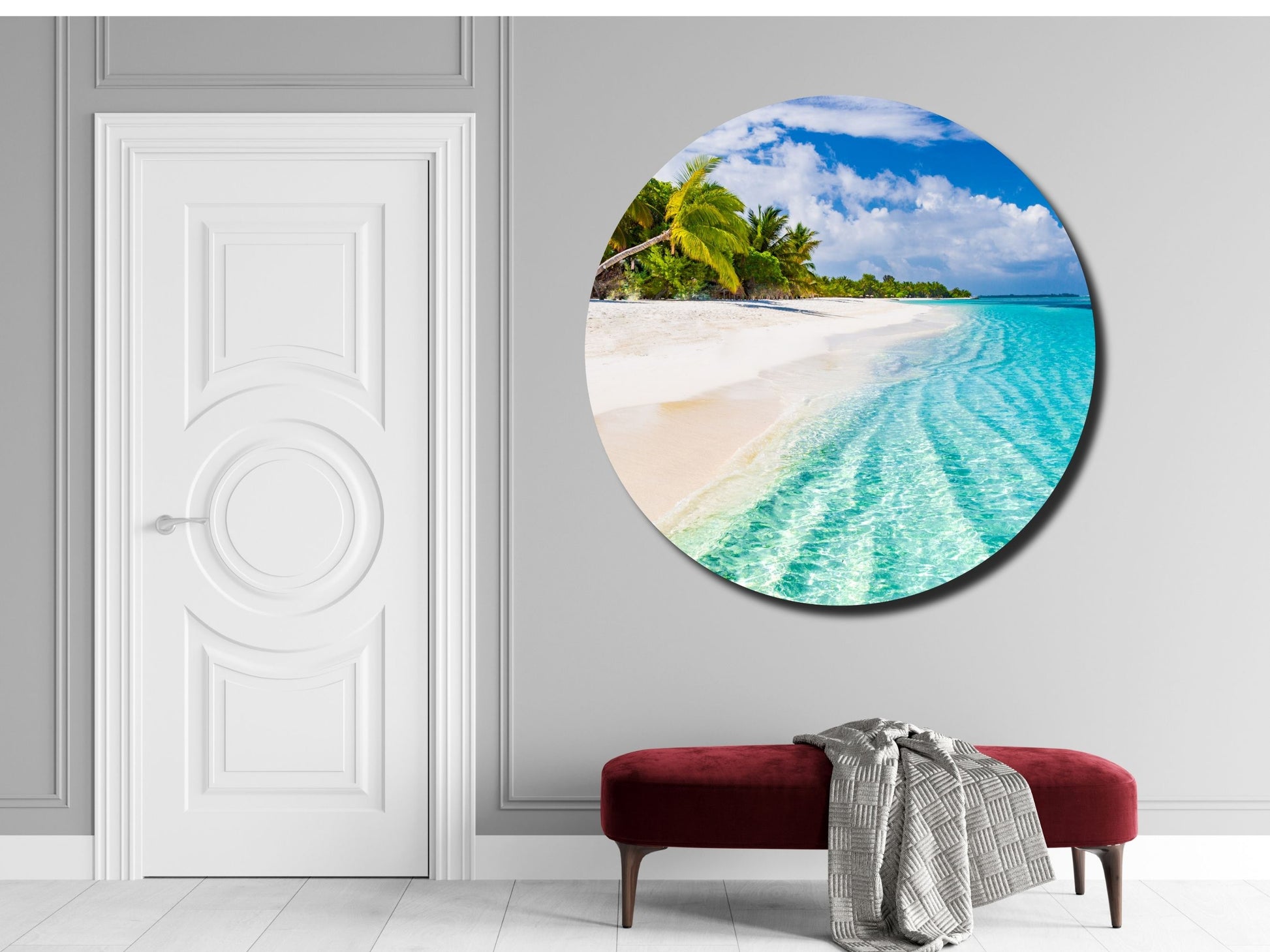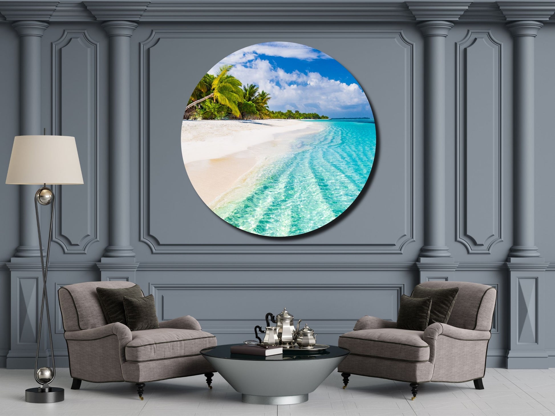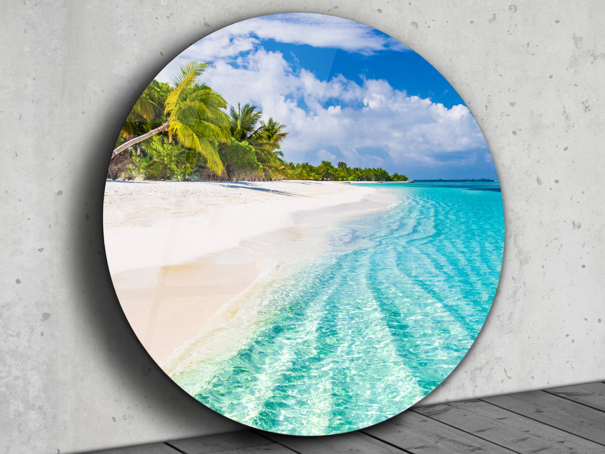 Tropikal Sahil Manzaralı Cam Tablo - Sahil Temalı Ev Dekorasyonu