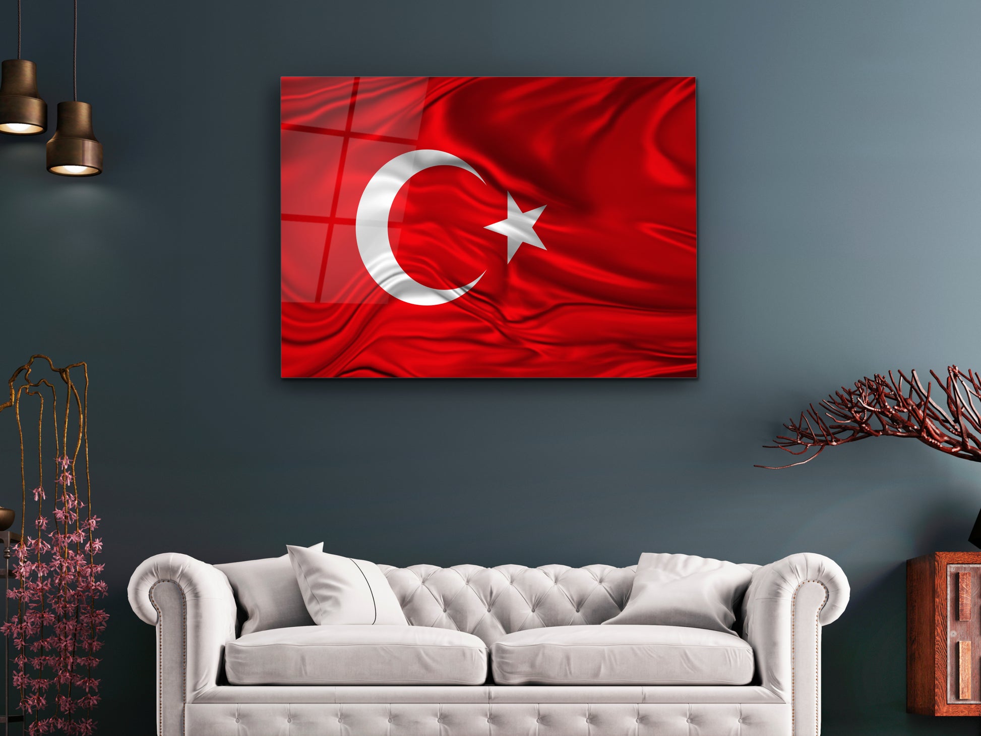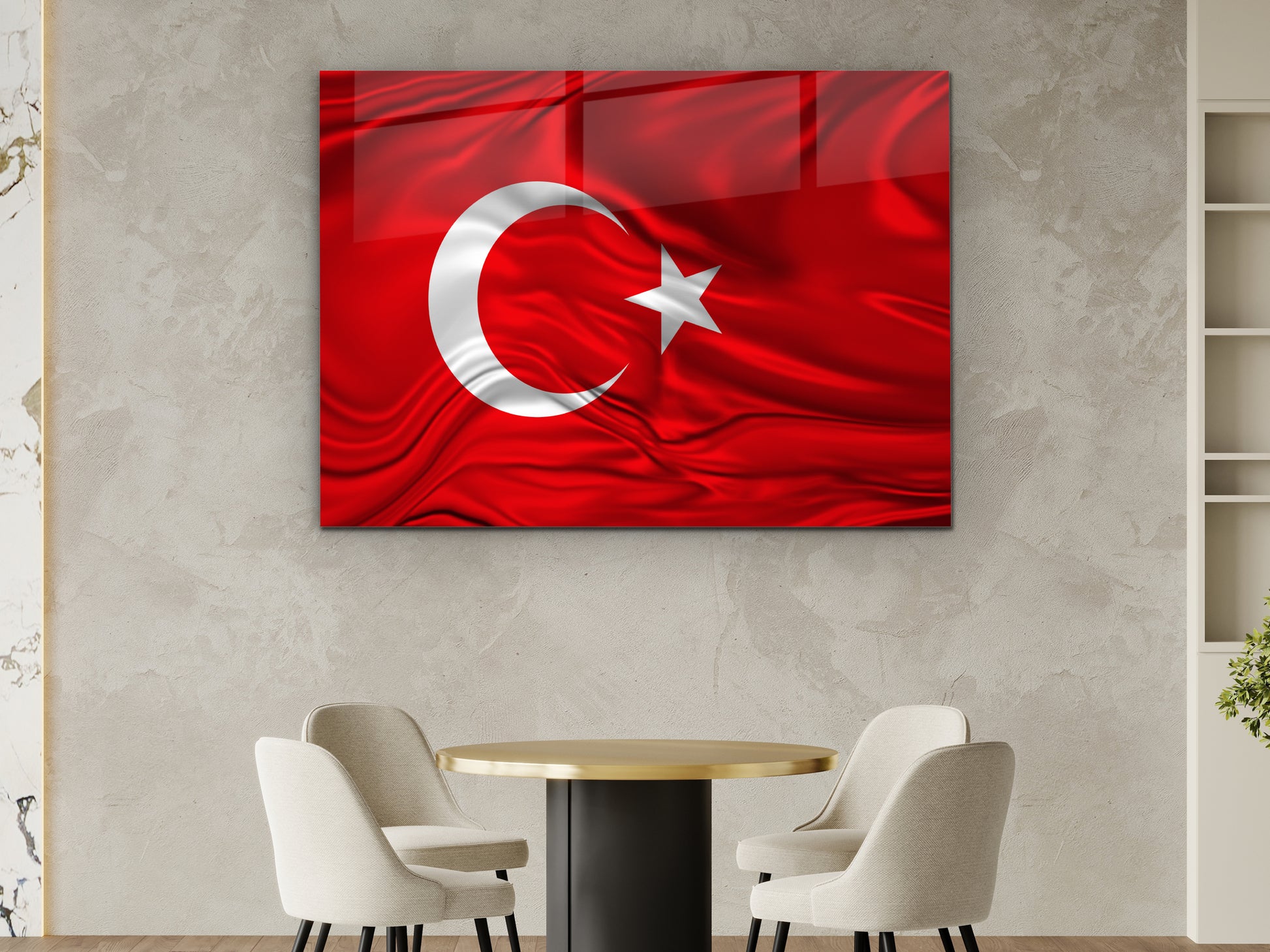 Türk Bayrağı Cam Tablo - Ay Yıldız Bayrak Dekoratif Ev ve Ofis Tablosu - Bayrak Tablosu