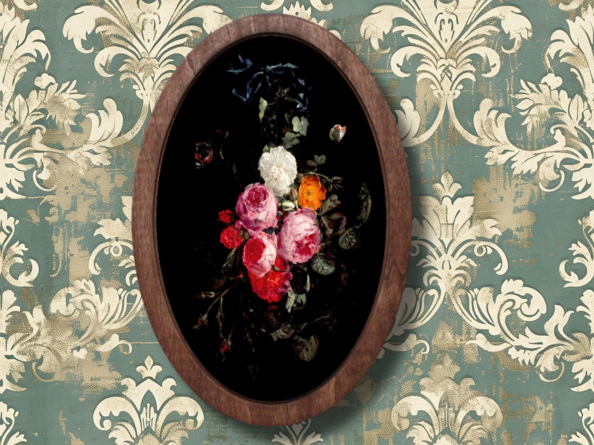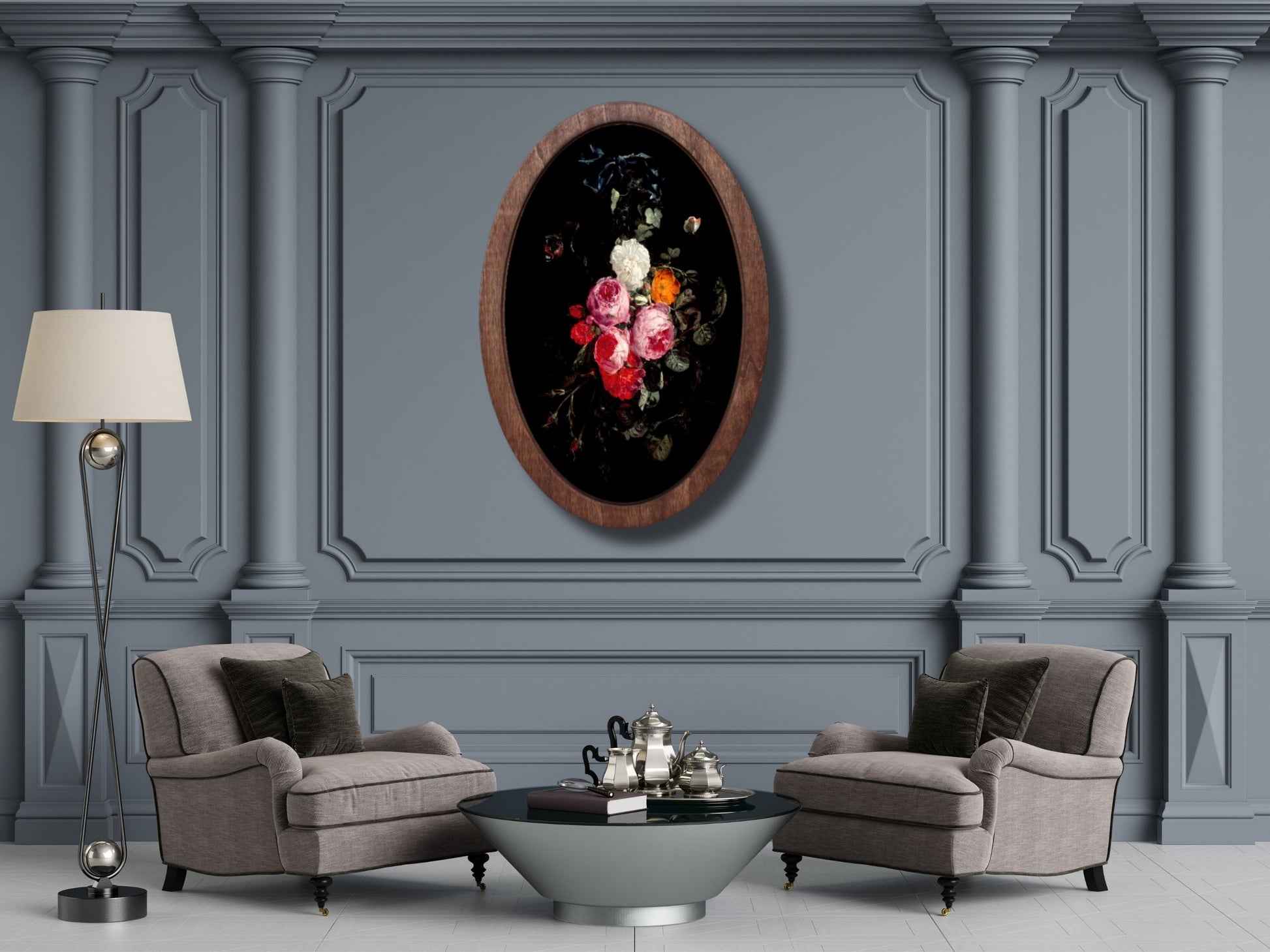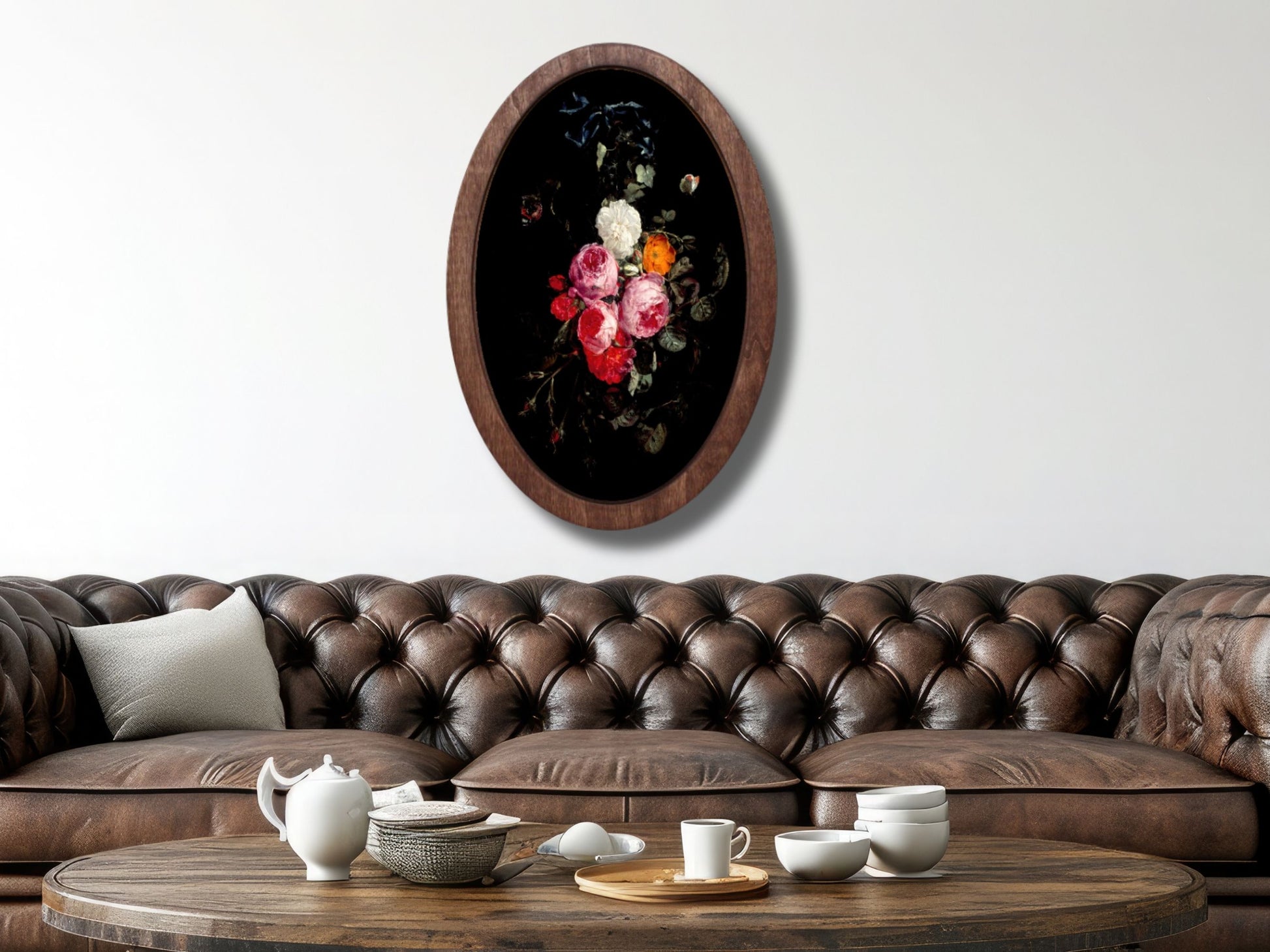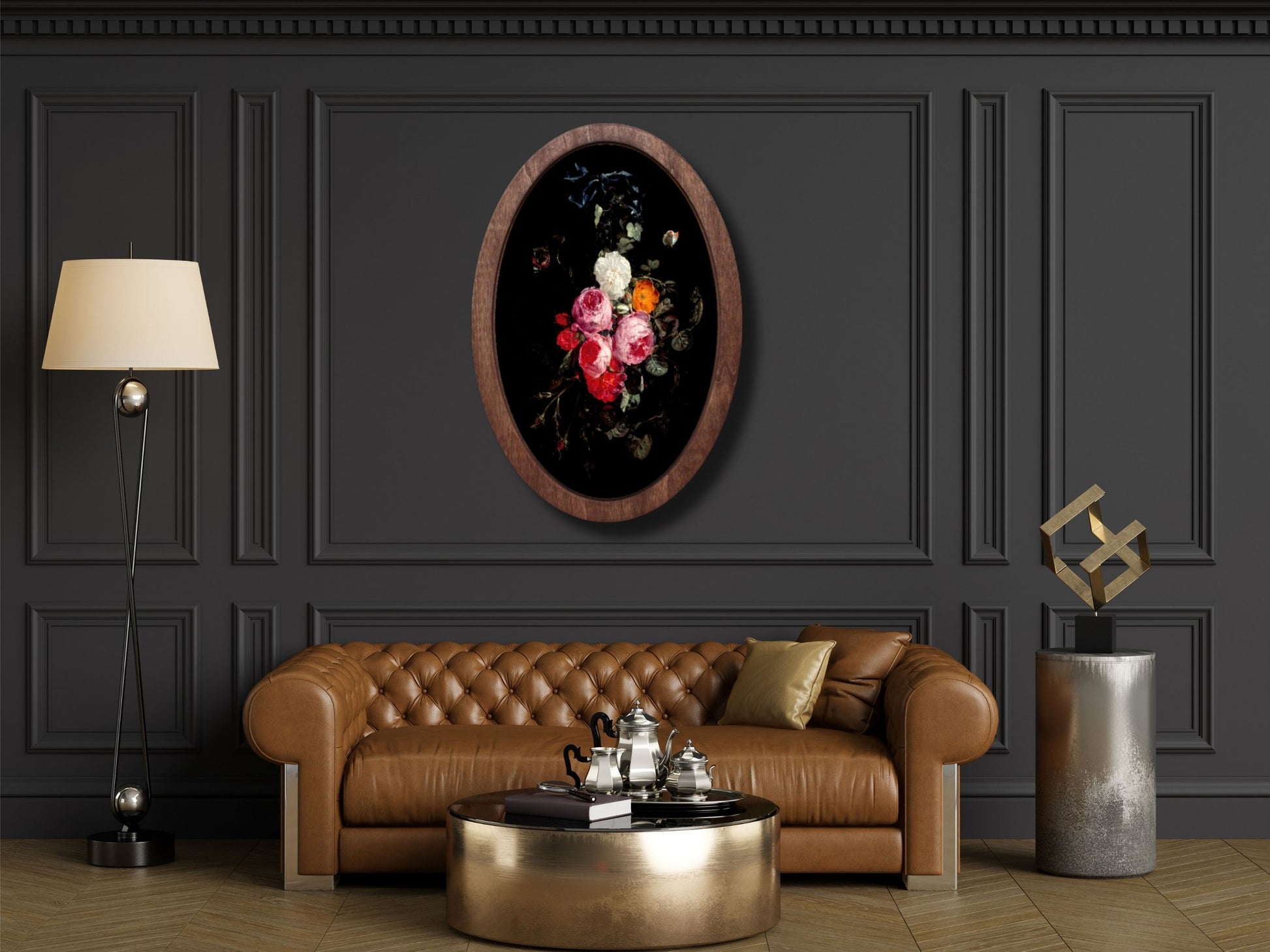 Vintage Çiçek Ahşap Tablo – Barok&Klasik Stil Oval Duvar Dekoru