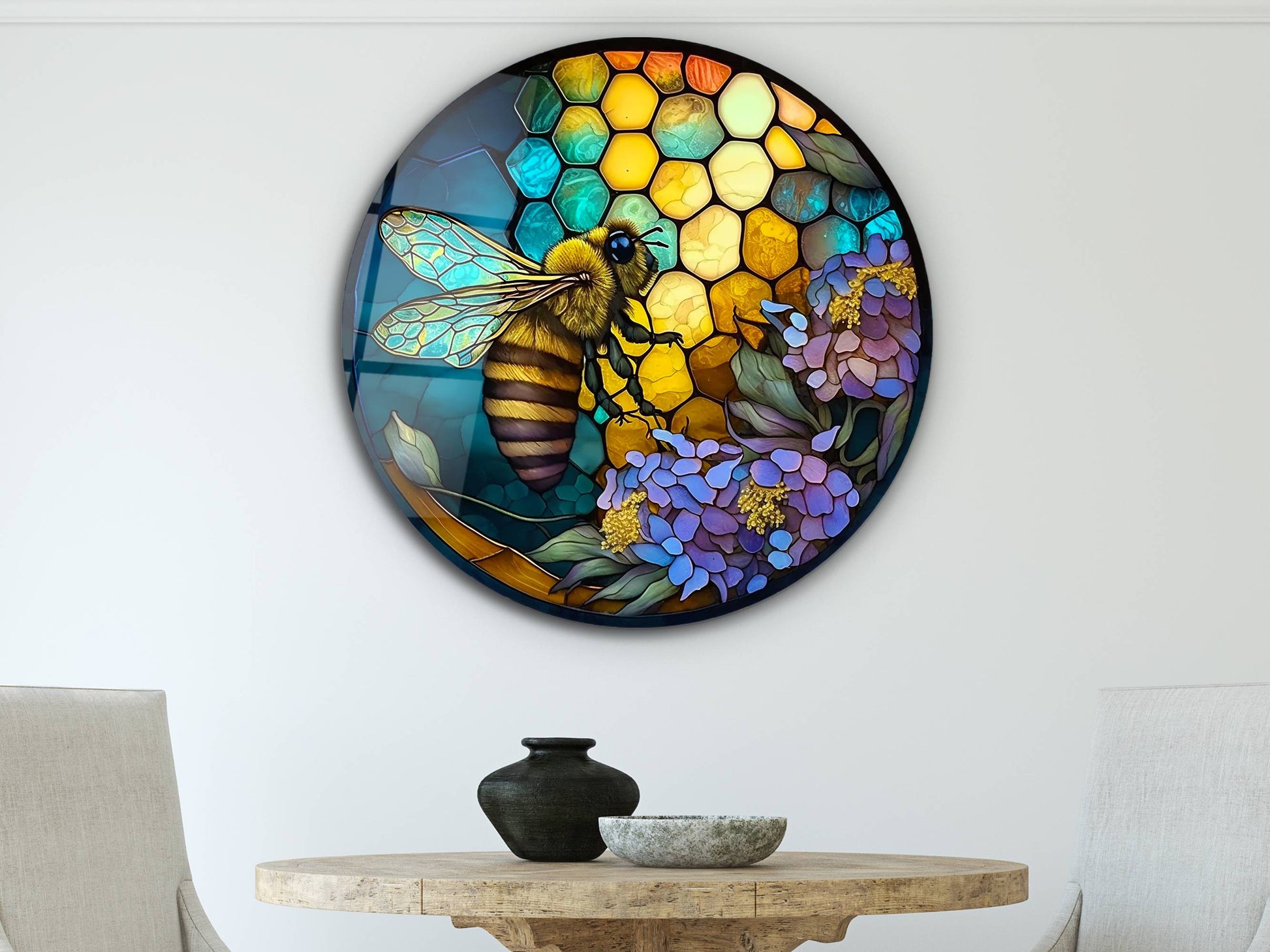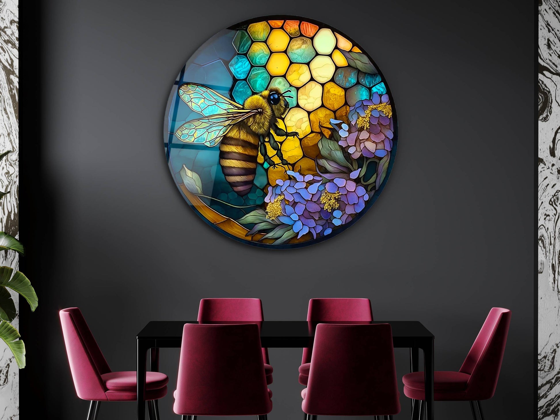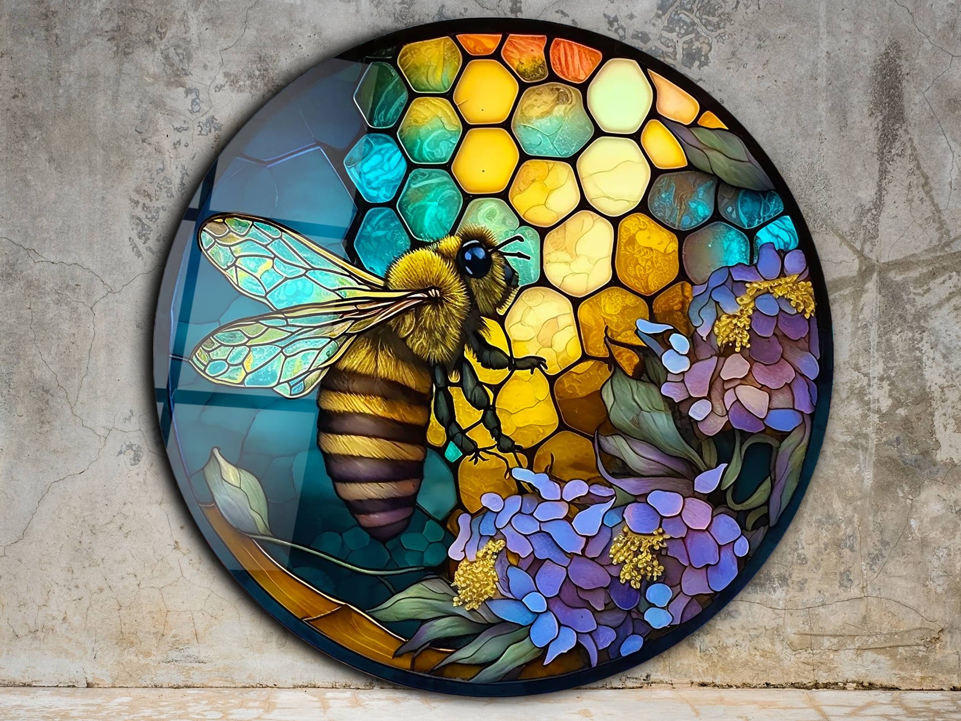 Vitray Desen Cam Tablo – Renkli Duvar Tablosu Yuvarlak