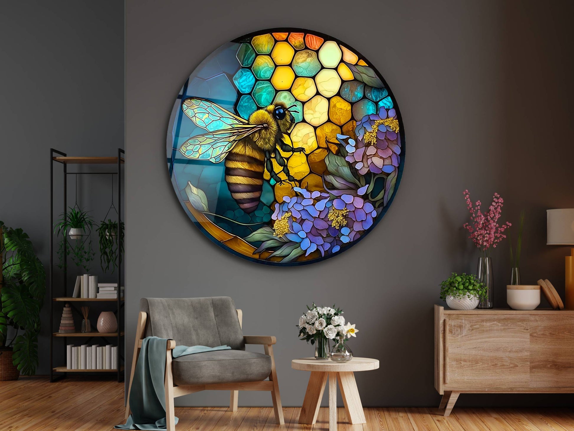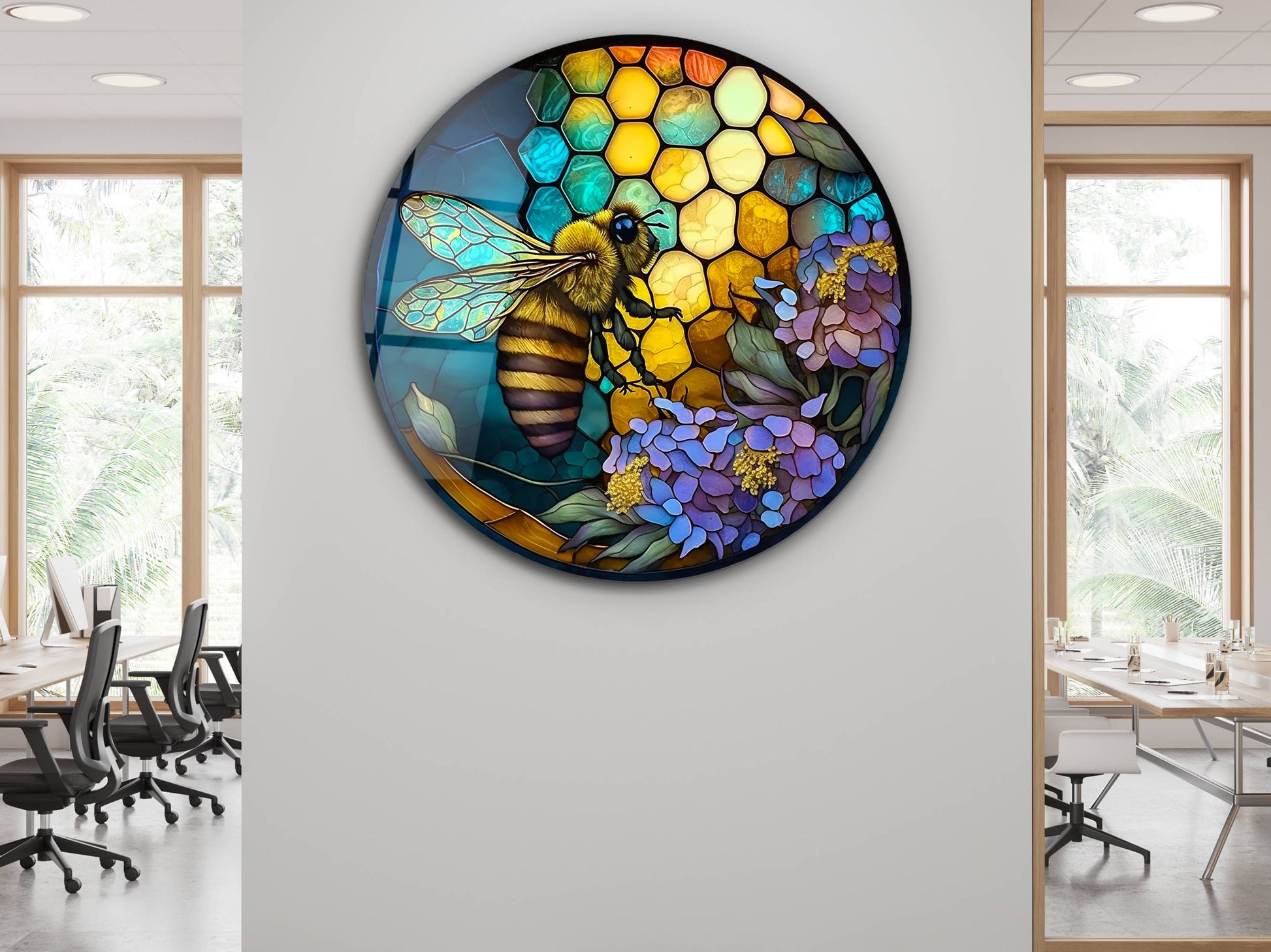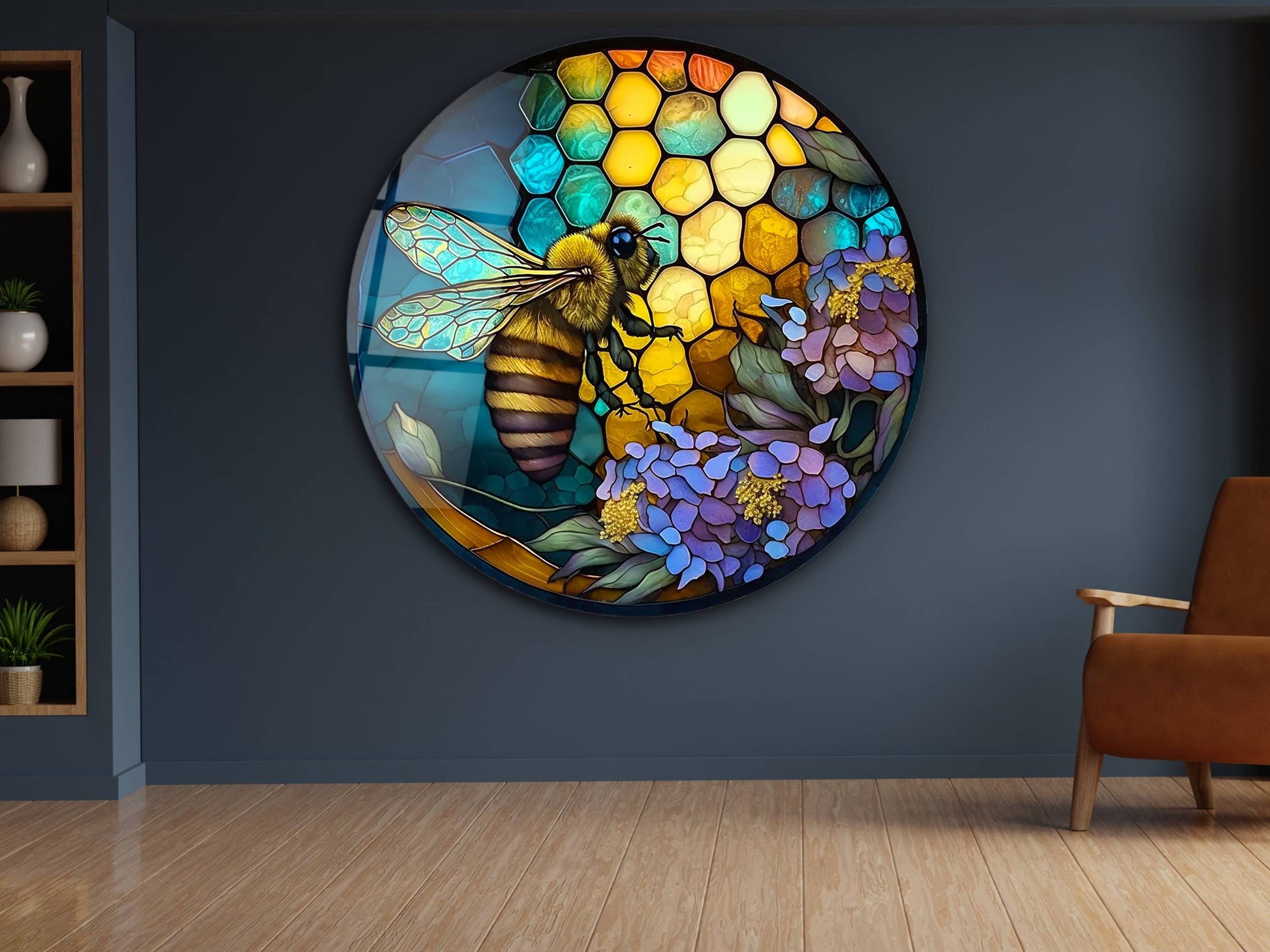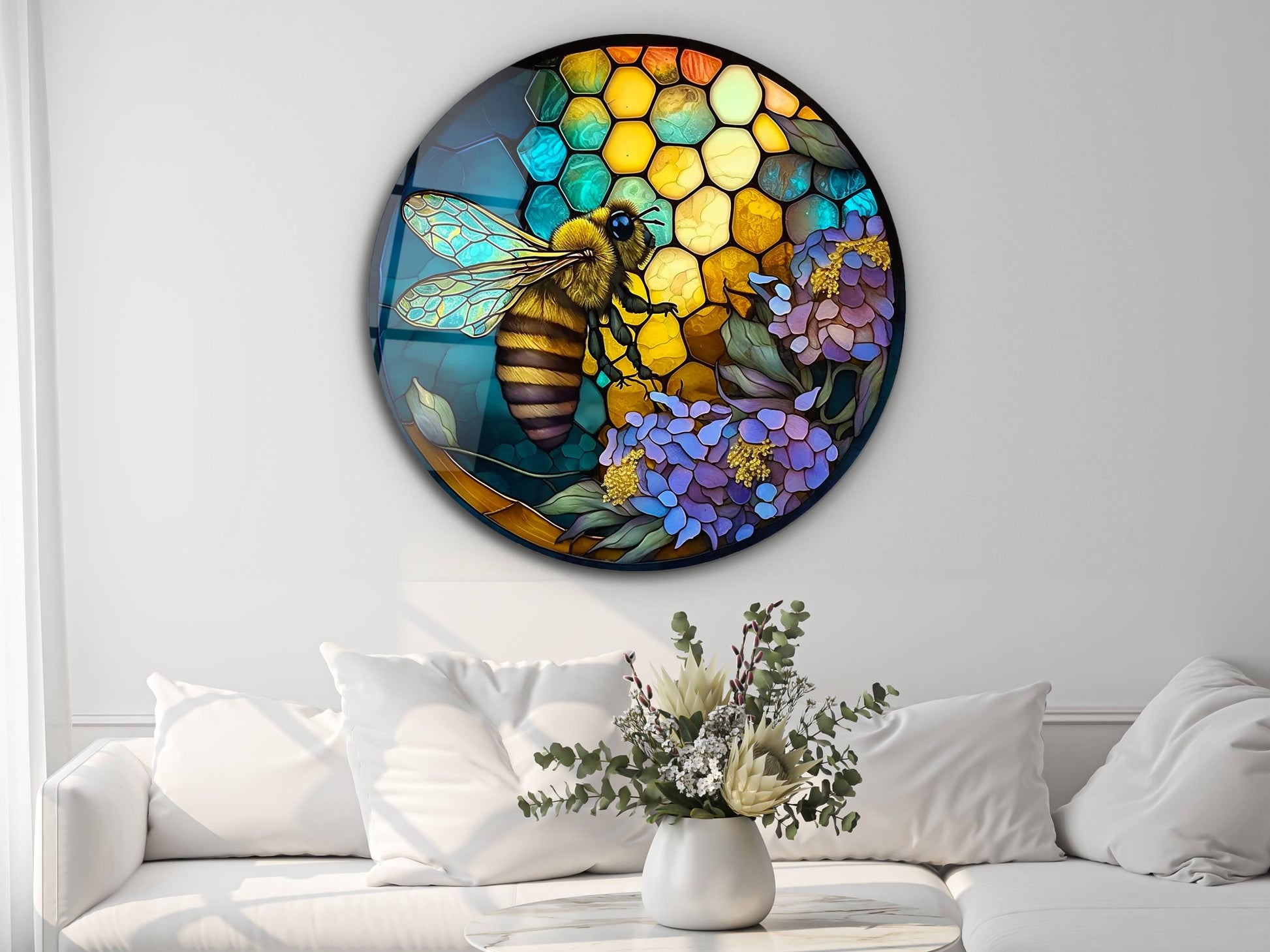 Vitray Desen Cam Tablo – Renkli Duvar Tablosu Yuvarlak