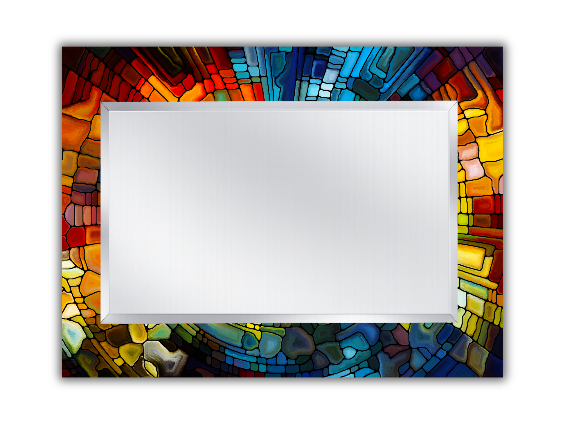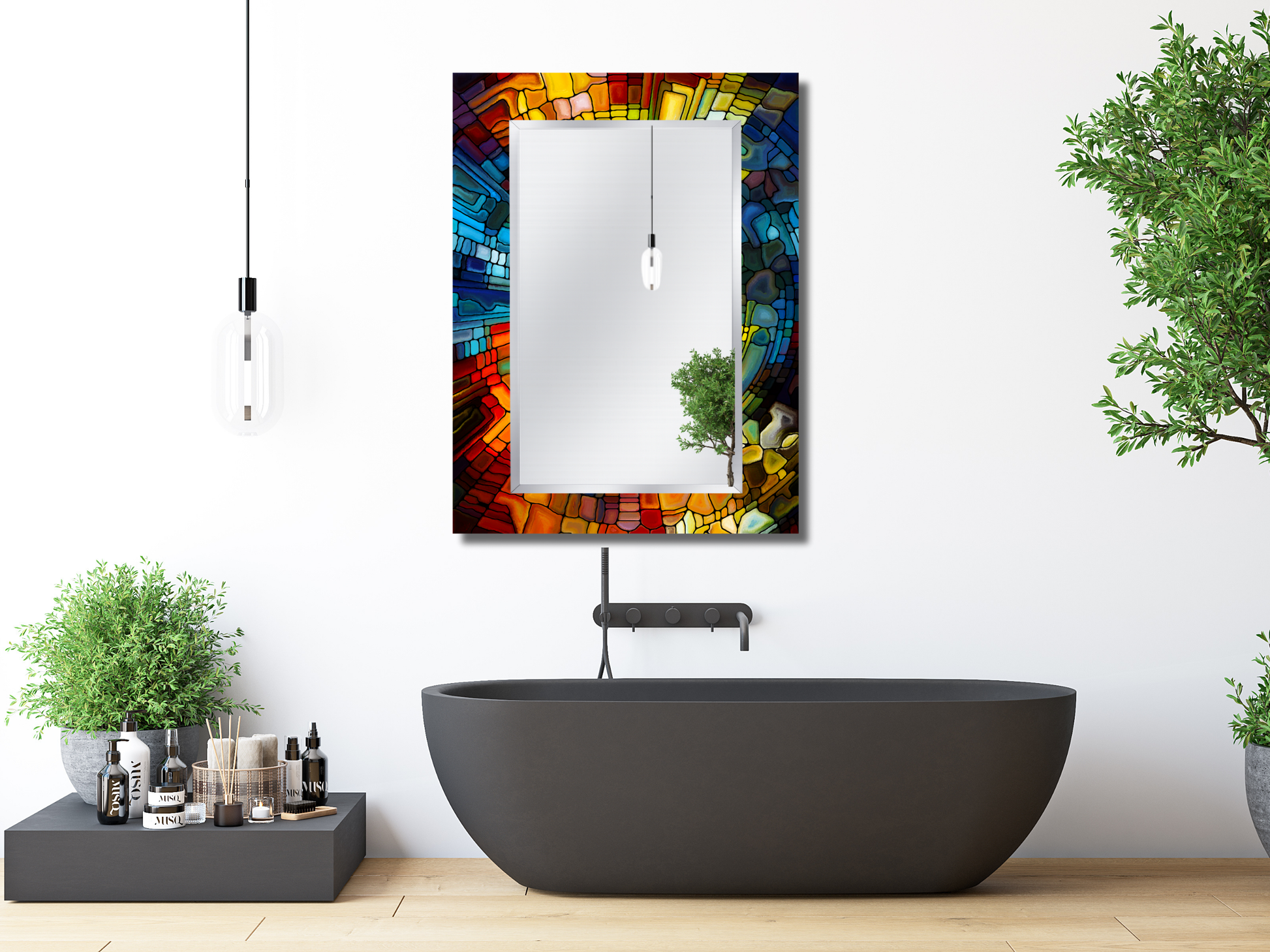 Vitray Desenli Ayna - Dekoratif Boy Aynası - Banyo Aynası - Modern Ev Dekorasyonu - Makyaj Masası Aynası