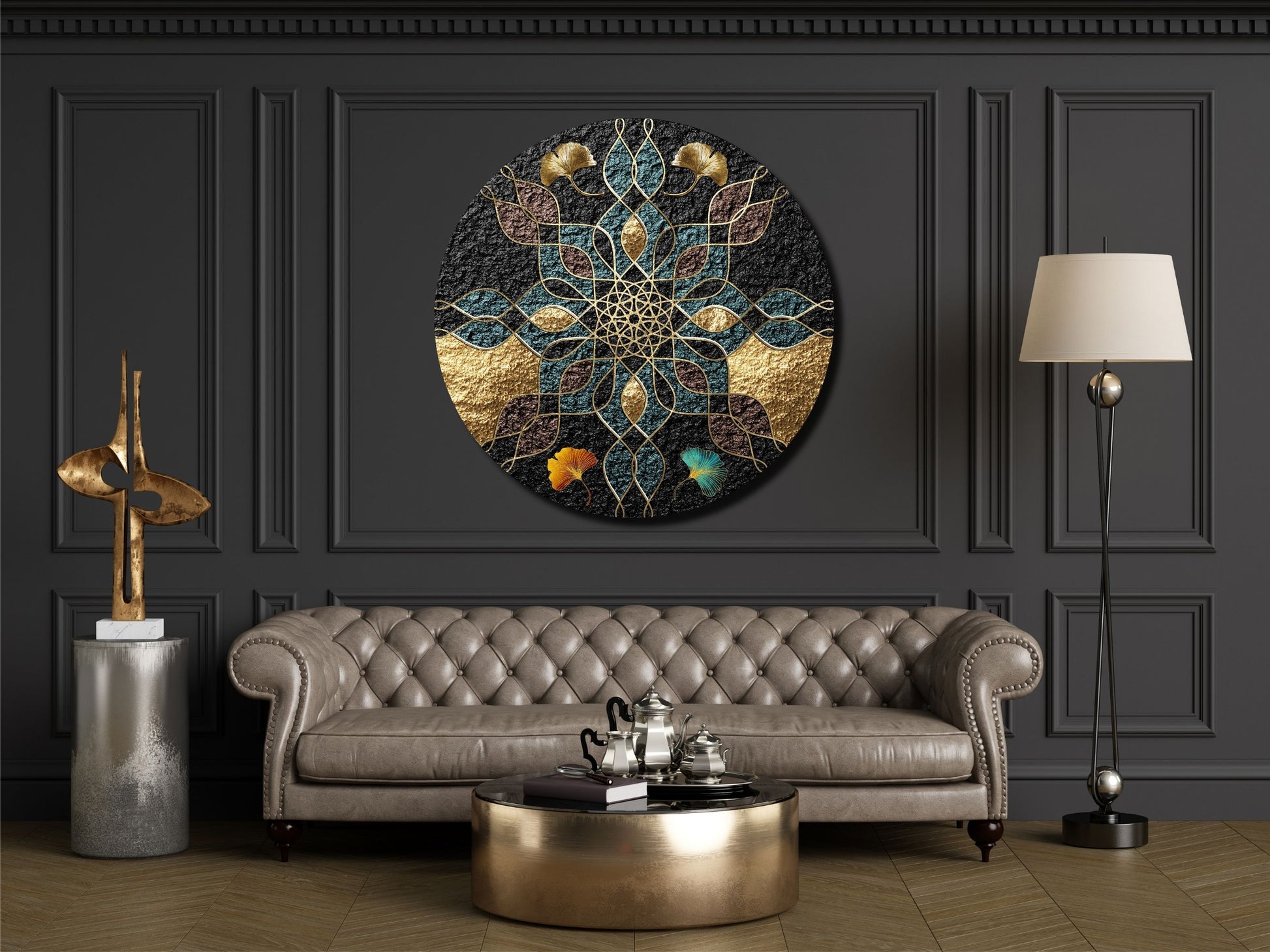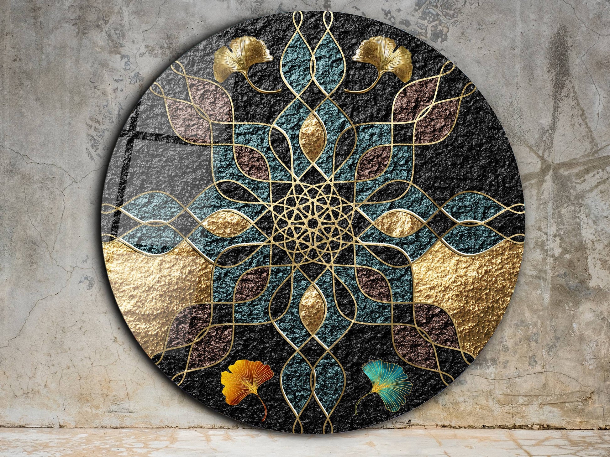 Yaprak Motifli Cam Tablo - Ev ve Ofis Dekoratif Tablo