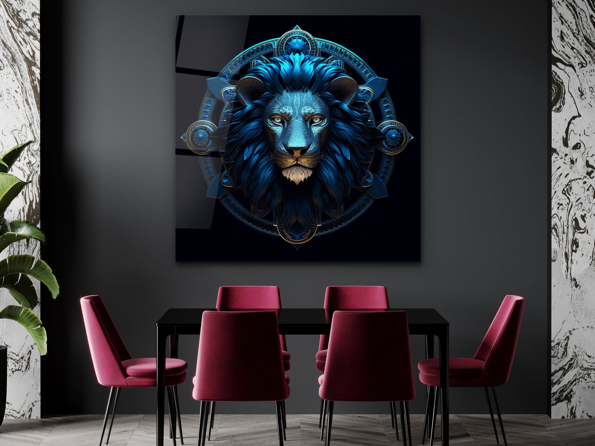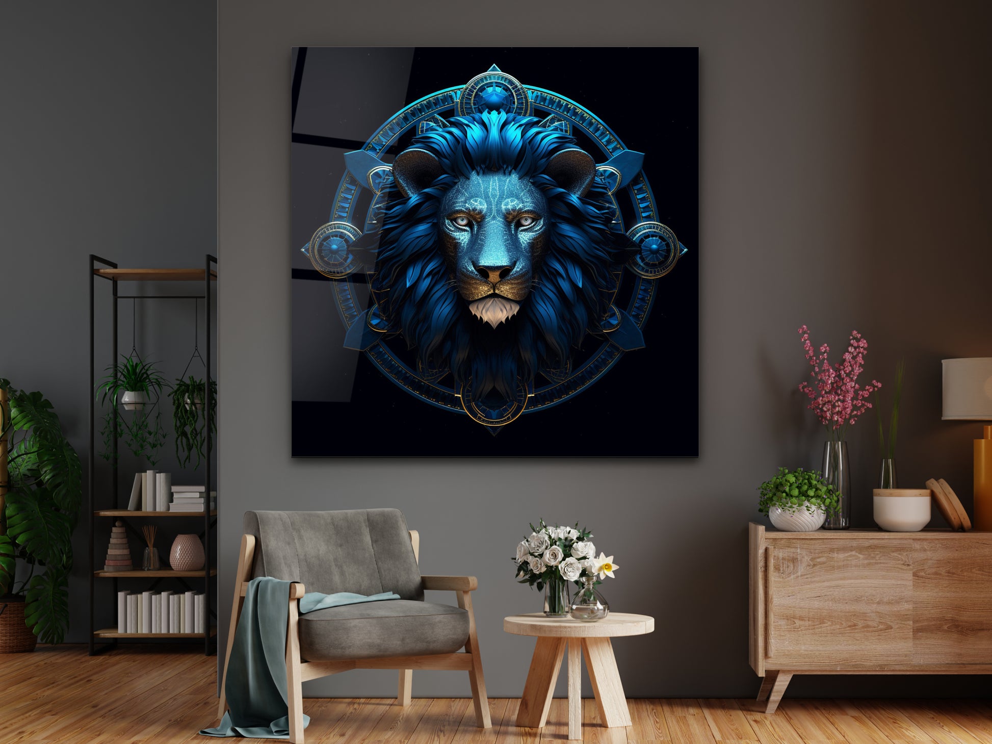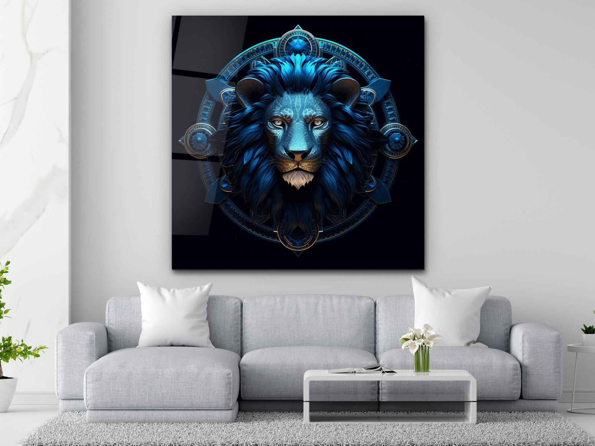 Zodyak Aslan Burcu Sembolü Cam Tablo - Astrolojik & Spiritüel Duvar Dekoru - Burç Temalı Dekorasyon