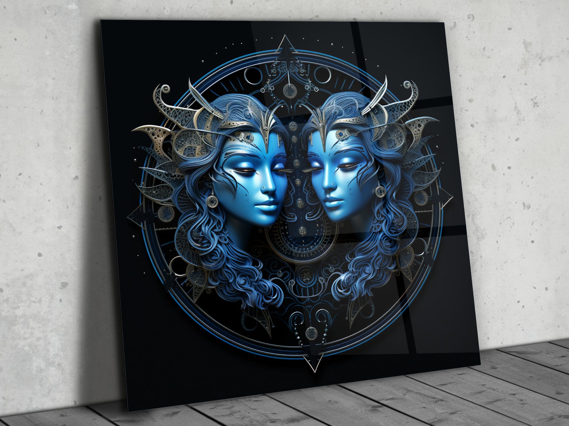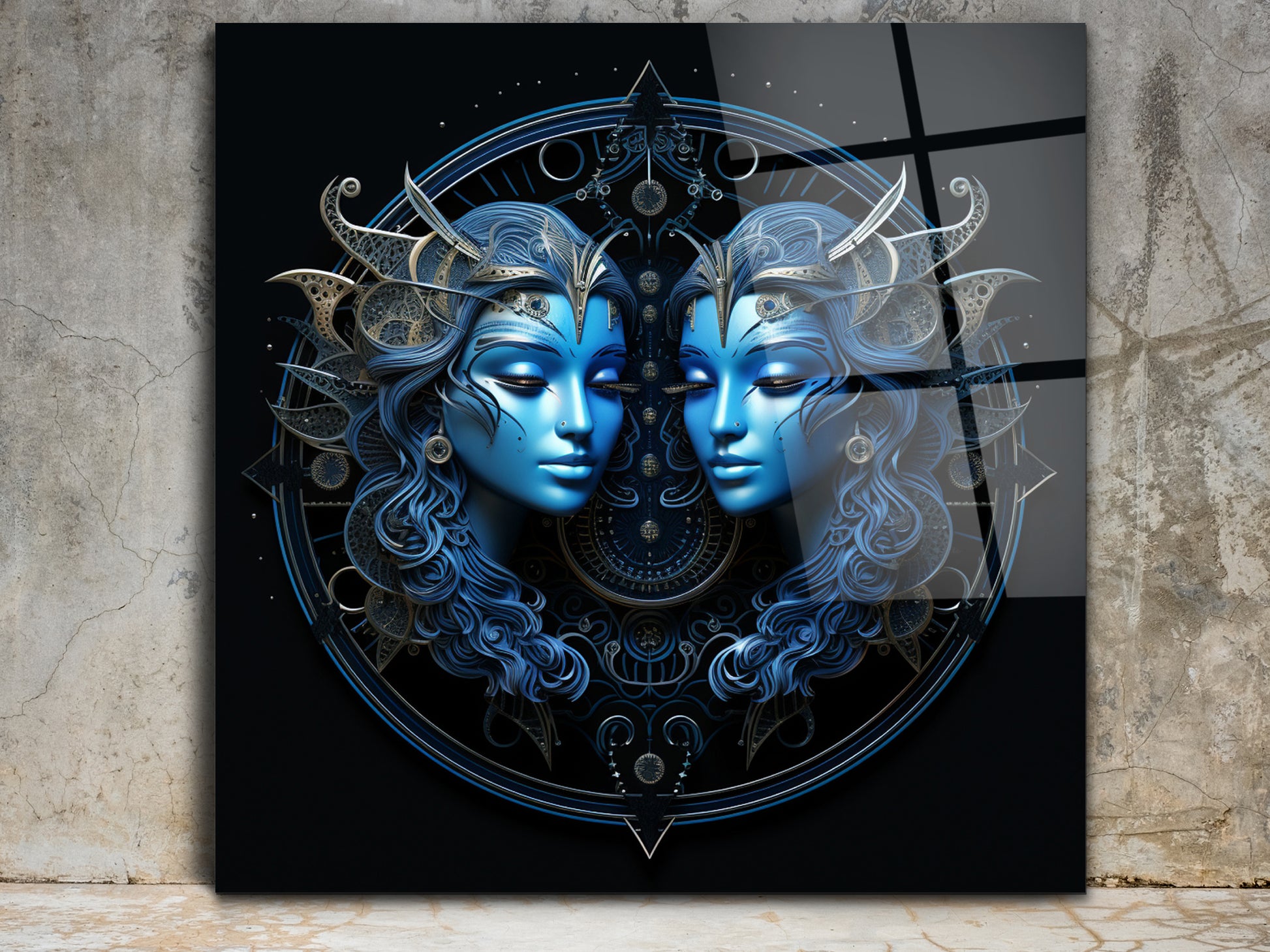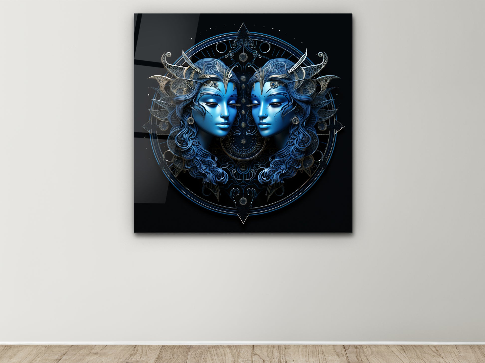 Zodyak İkizler Burcu Sembolü Cam Tablo - Astrolojik & Spiritüel Duvar Dekoru - Burç Temalı Dekorasyon