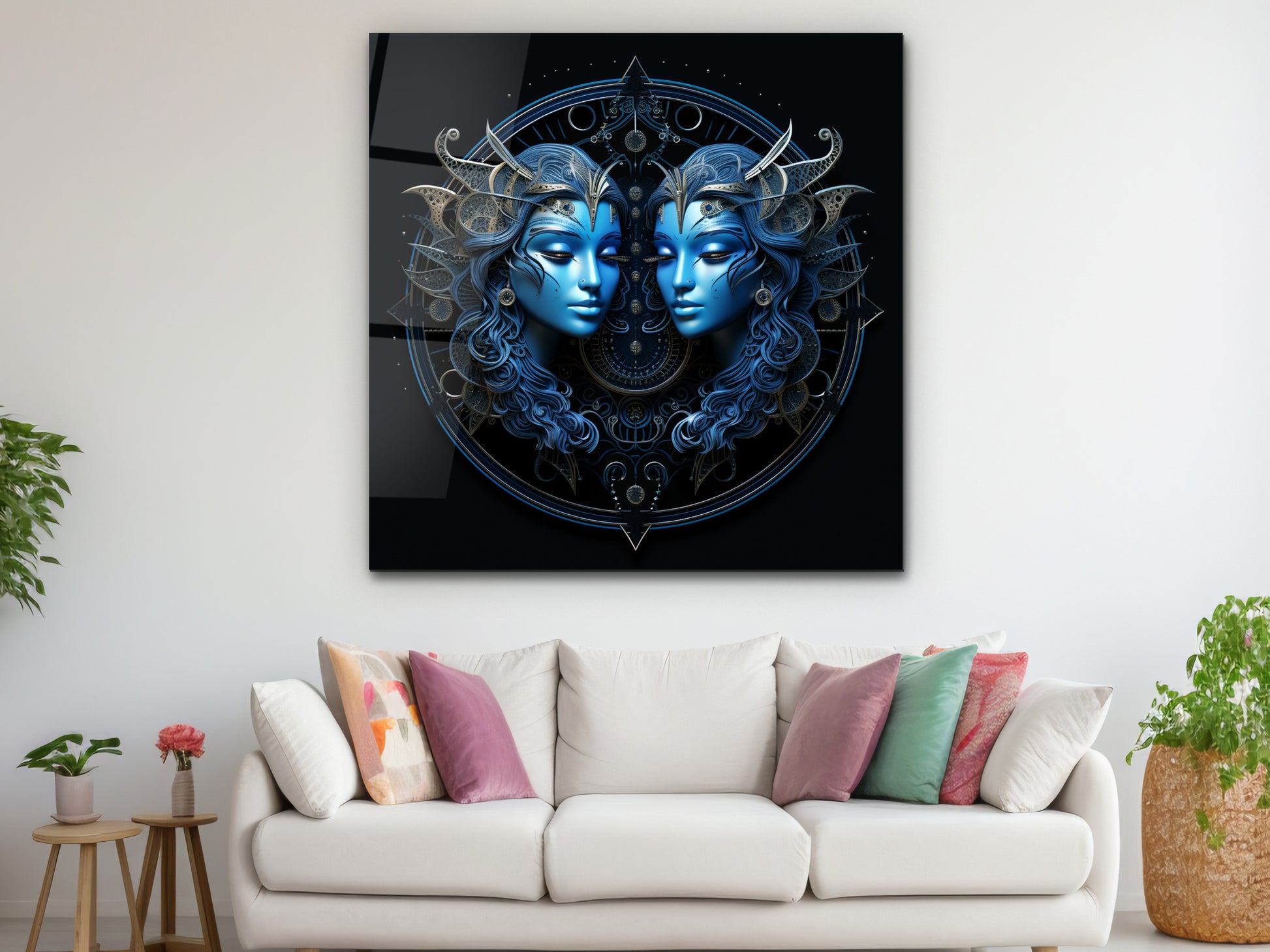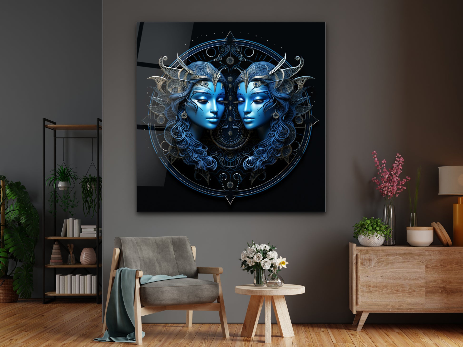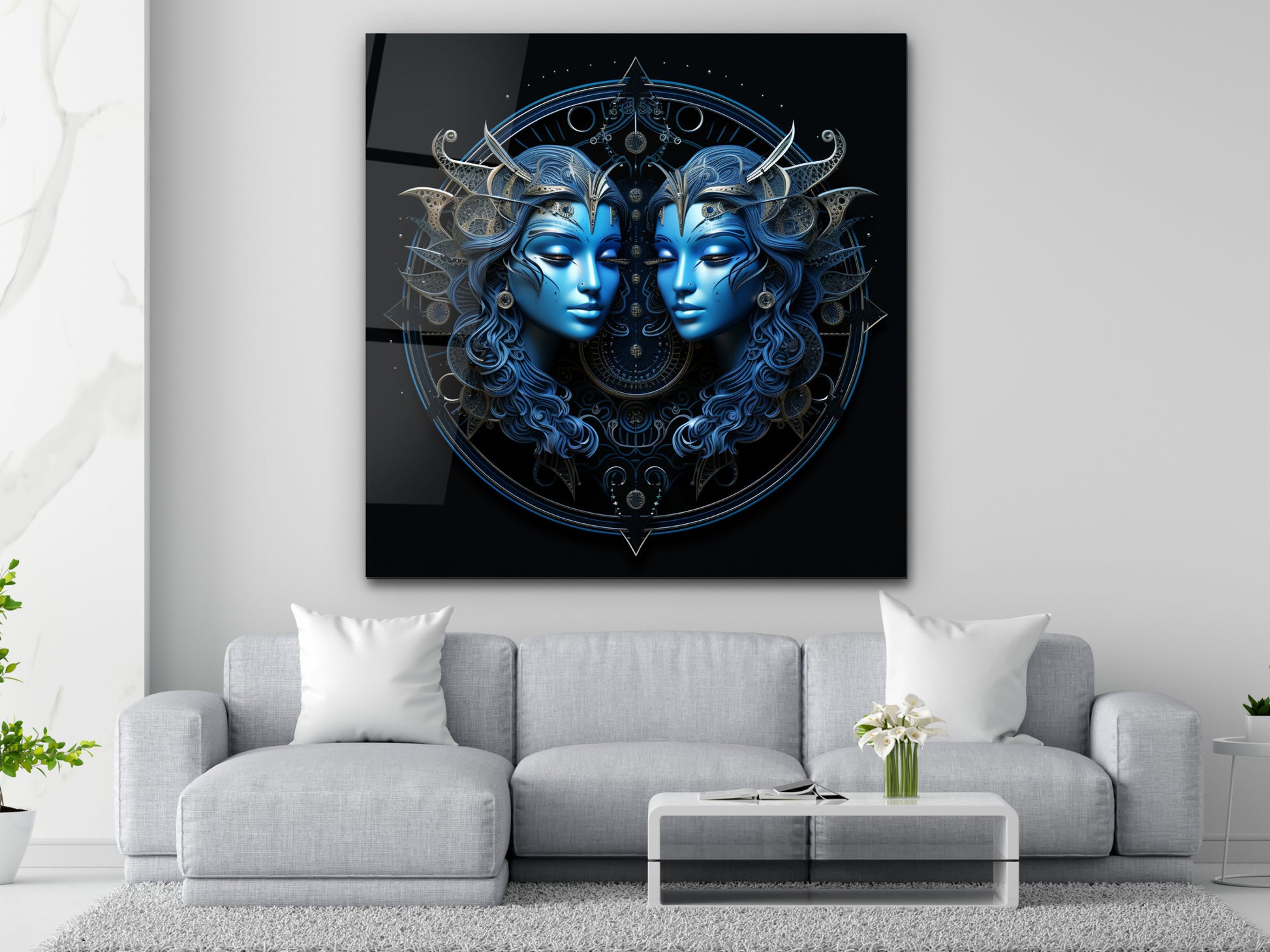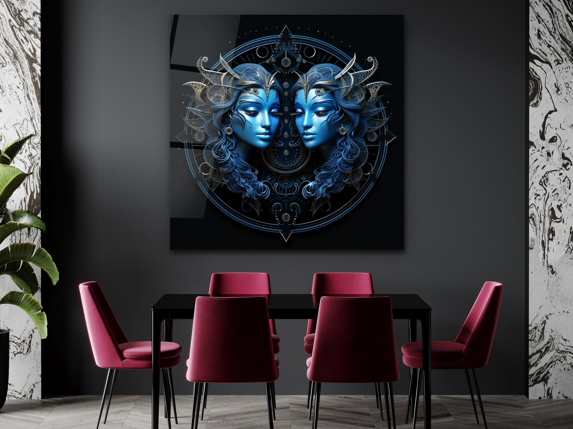 Zodyak İkizler Burcu Sembolü Cam Tablo - Astrolojik & Spiritüel Duvar Dekoru - Burç Temalı Dekorasyon