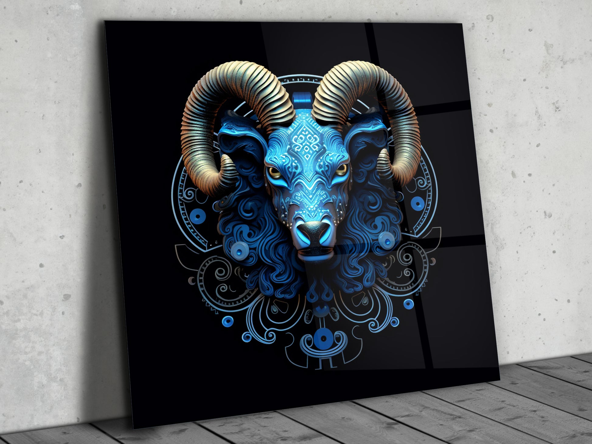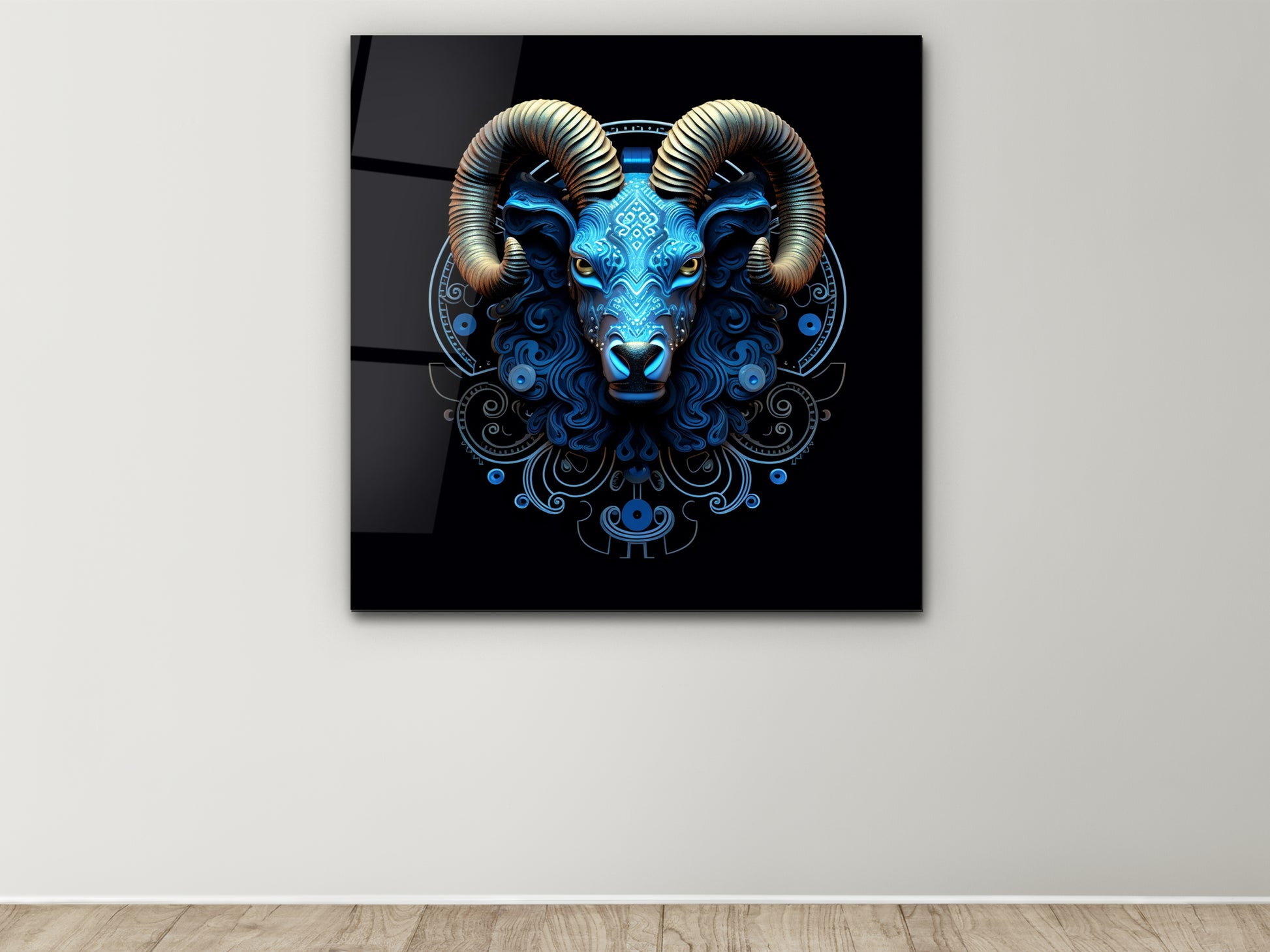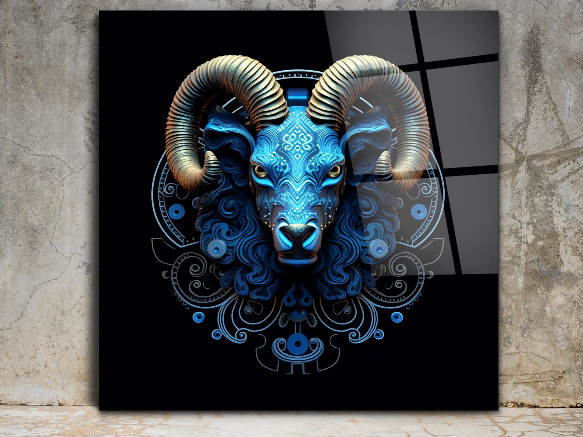 Zodyak Koç Burcu Sembolü Cam Tablo - Astrolojik & Spiritüel Duvar Dekoru - Burç Temalı Dekorasyon