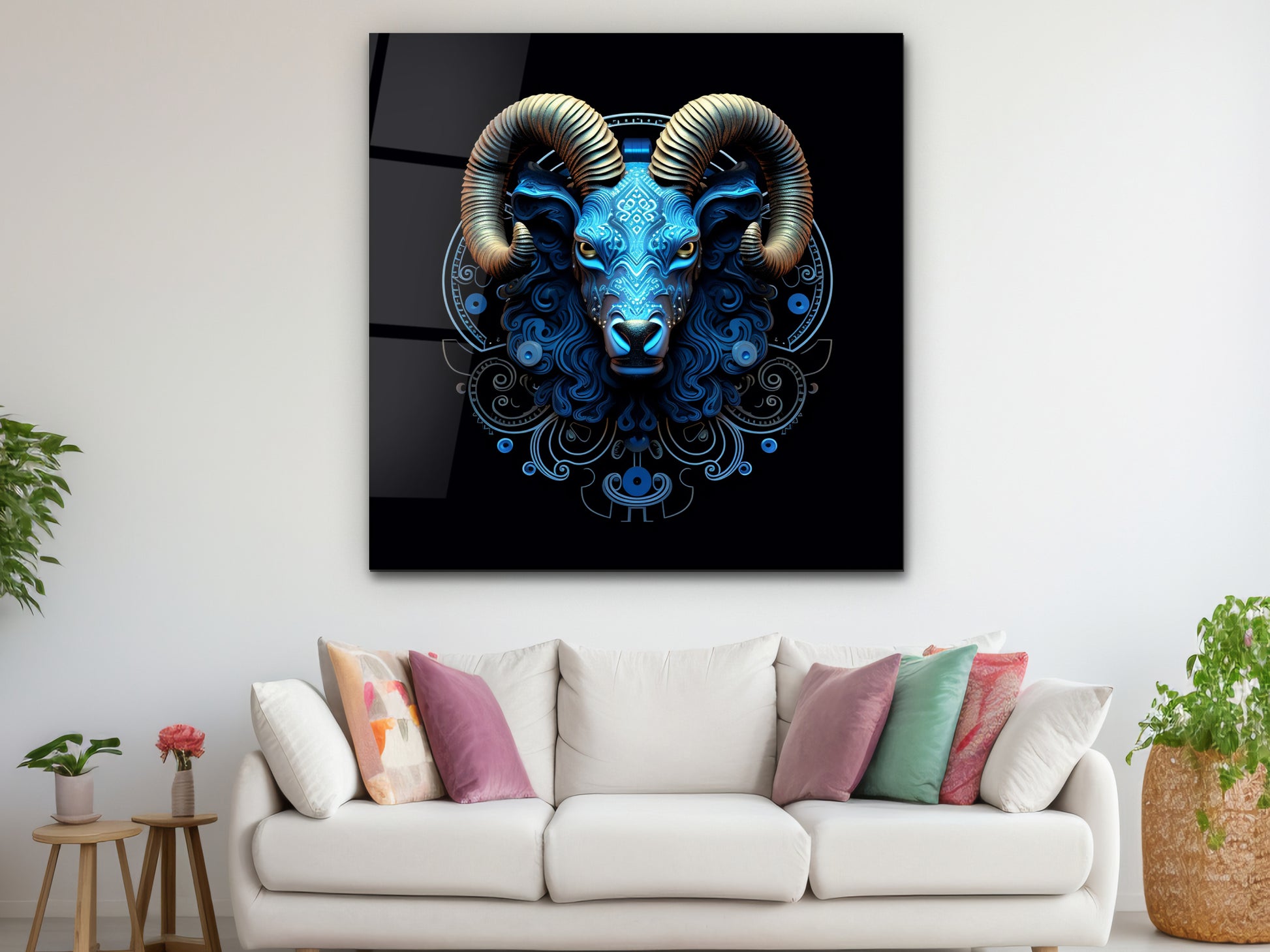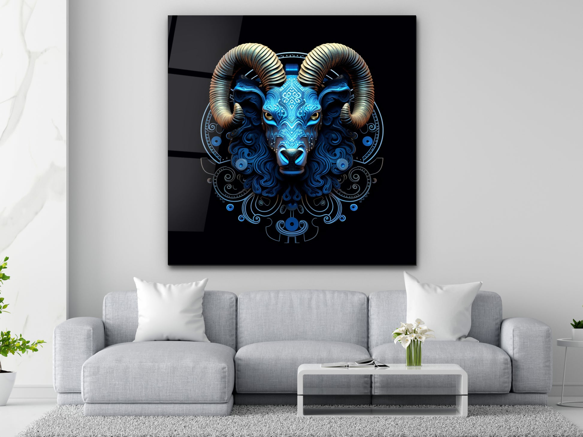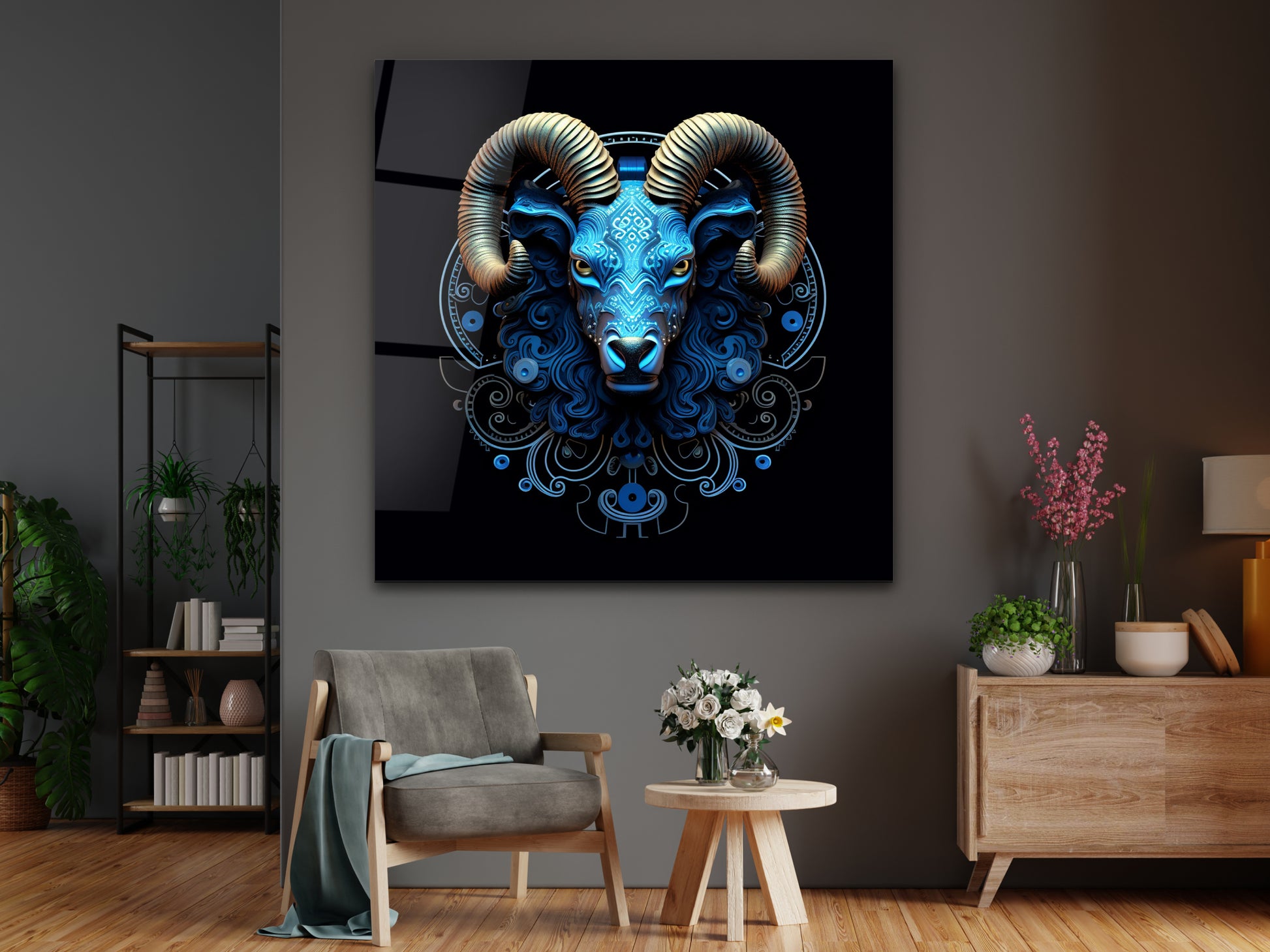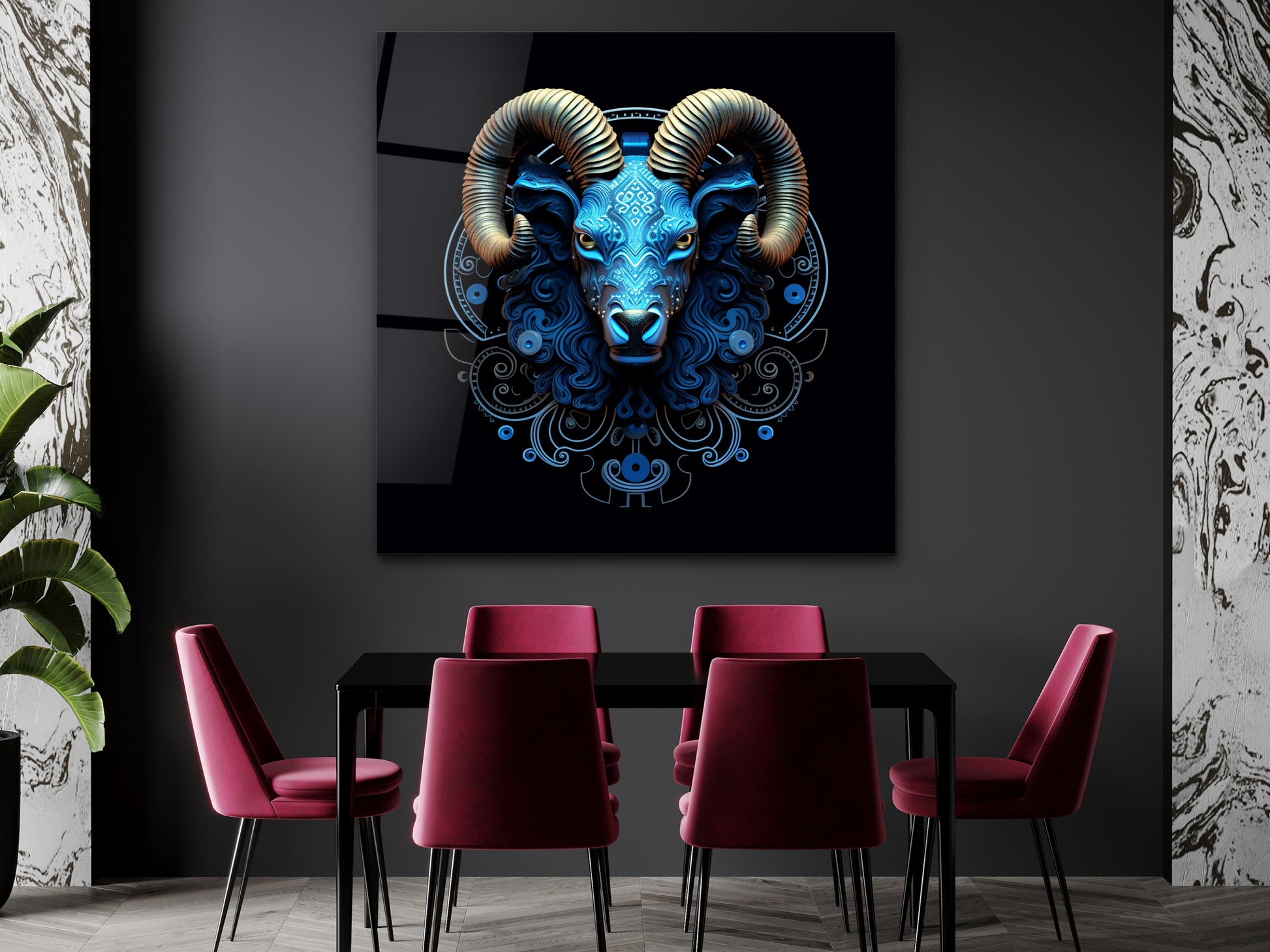 Zodyak Koç Burcu Sembolü Cam Tablo - Astrolojik & Spiritüel Duvar Dekoru - Burç Temalı Dekorasyon