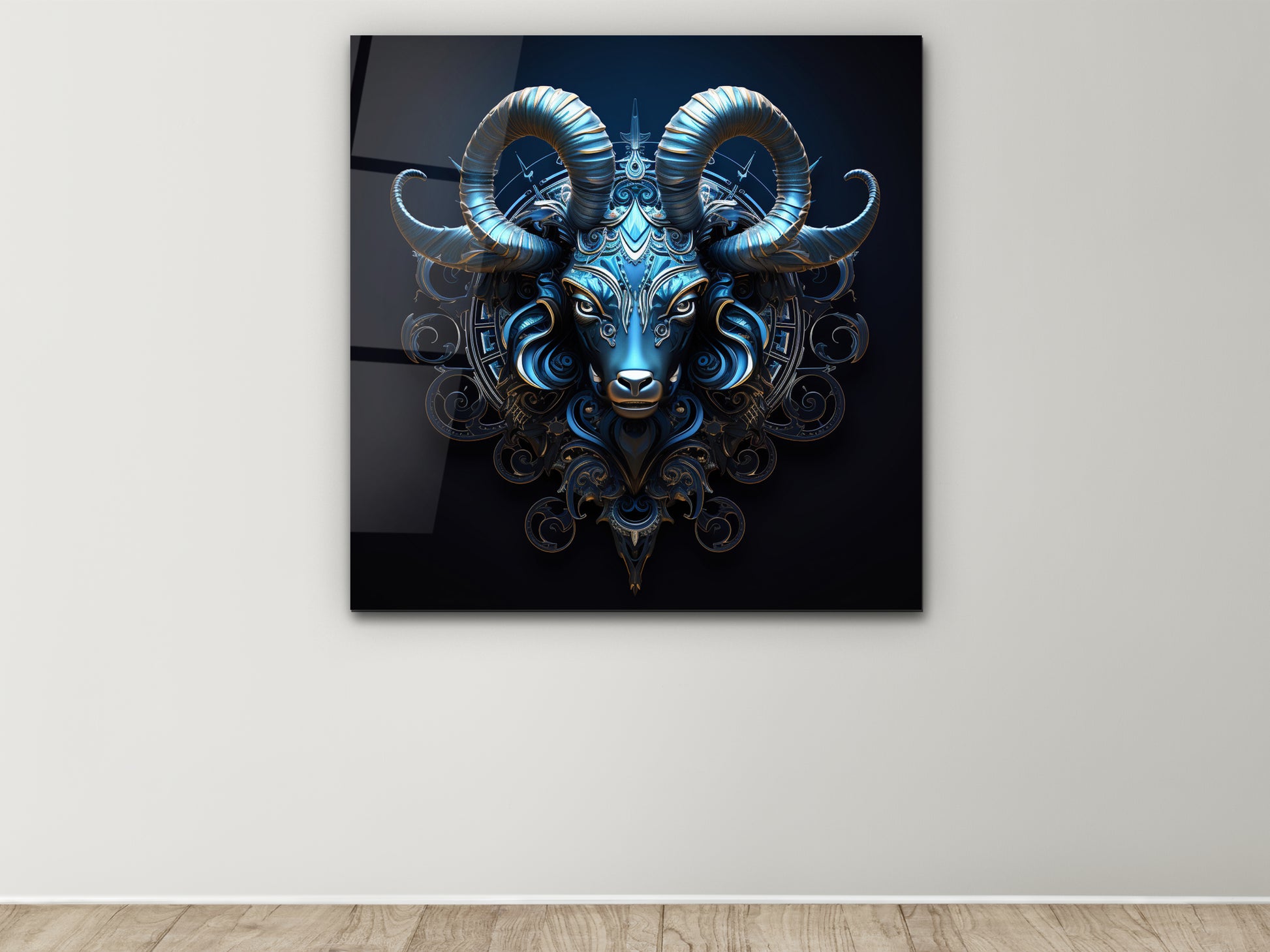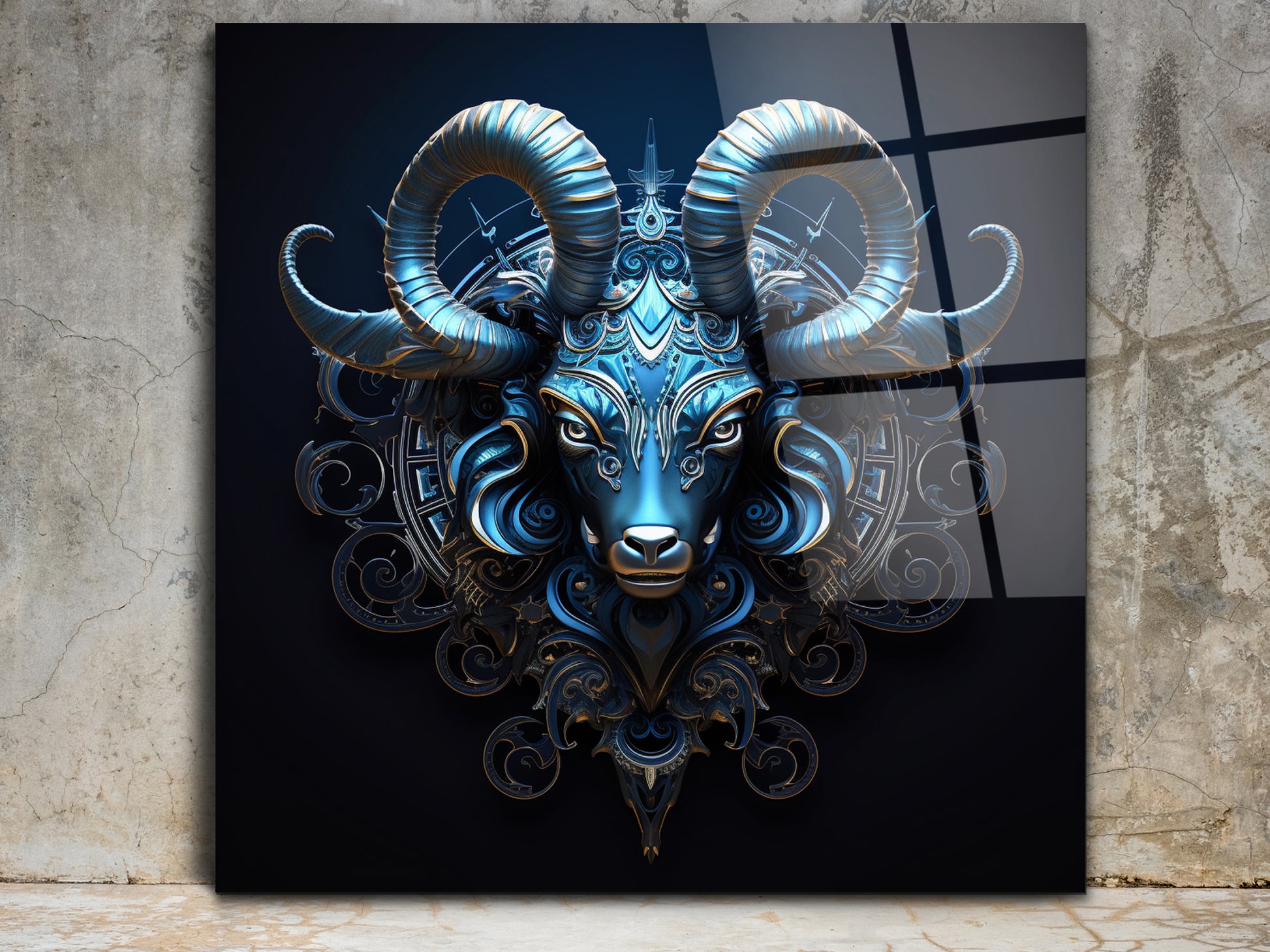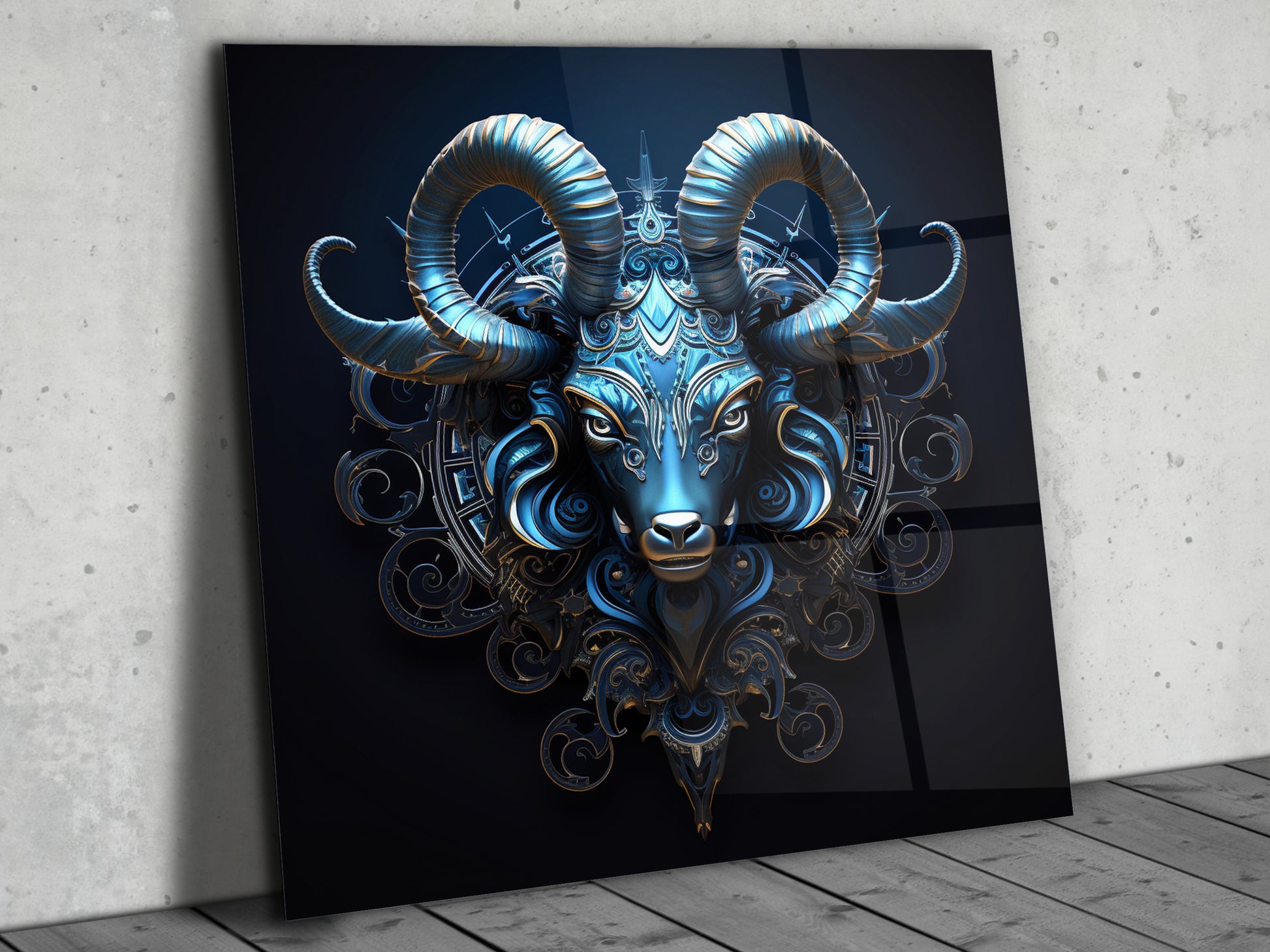 Zodyak Oğlak Burcu Sembolü Cam Tablo - Astrolojik & Spiritüel Duvar Dekoru - Burç Temalı Dekorasyon