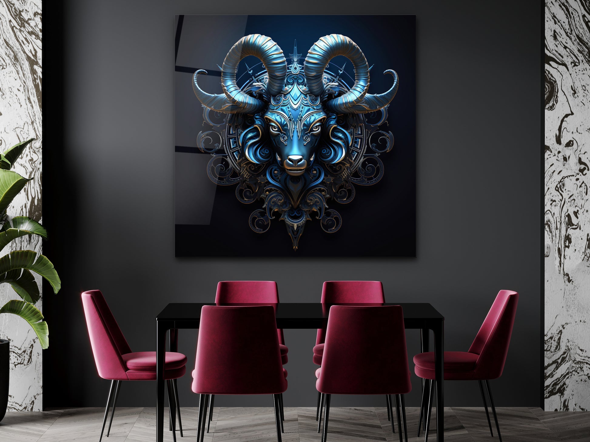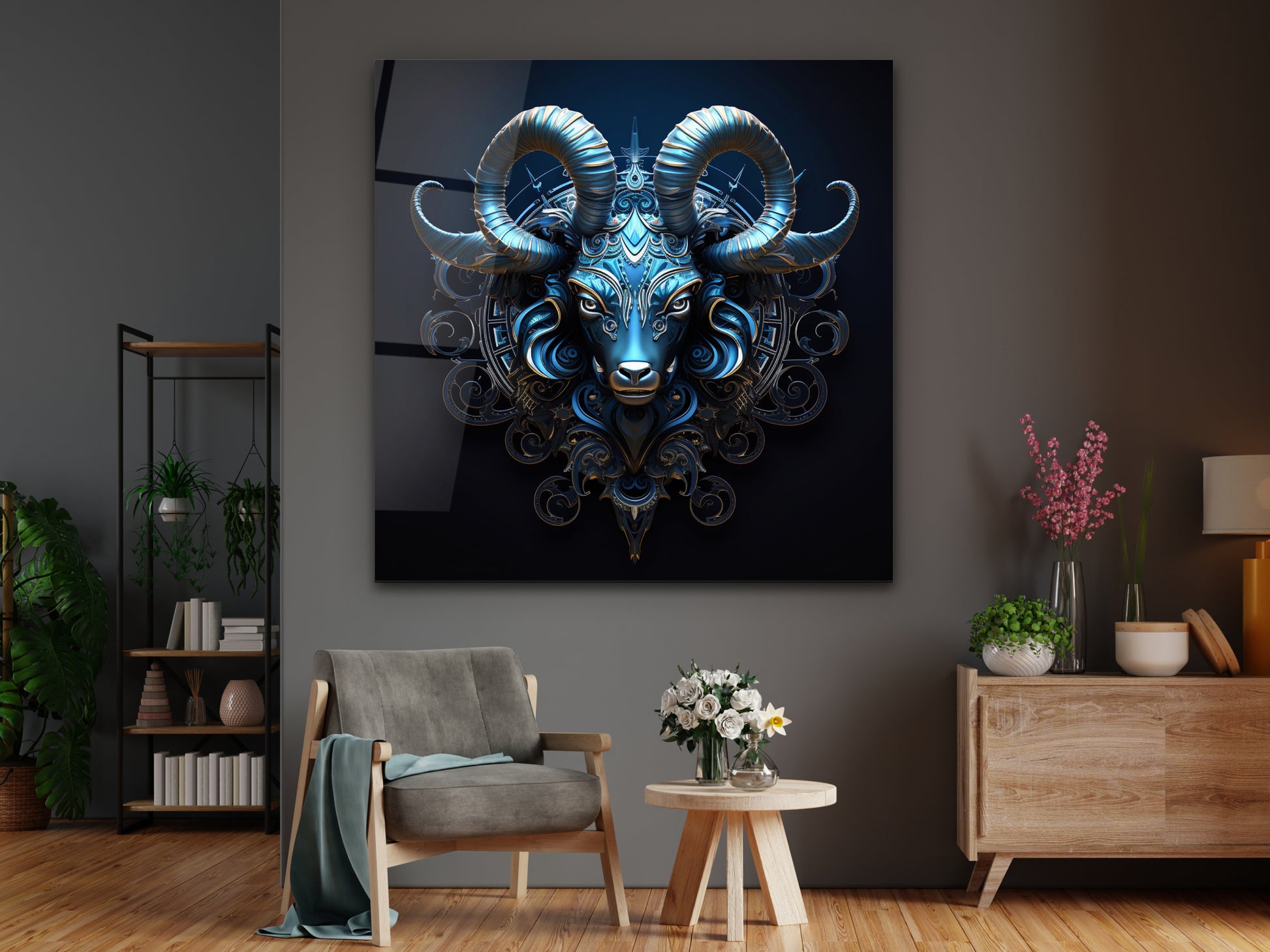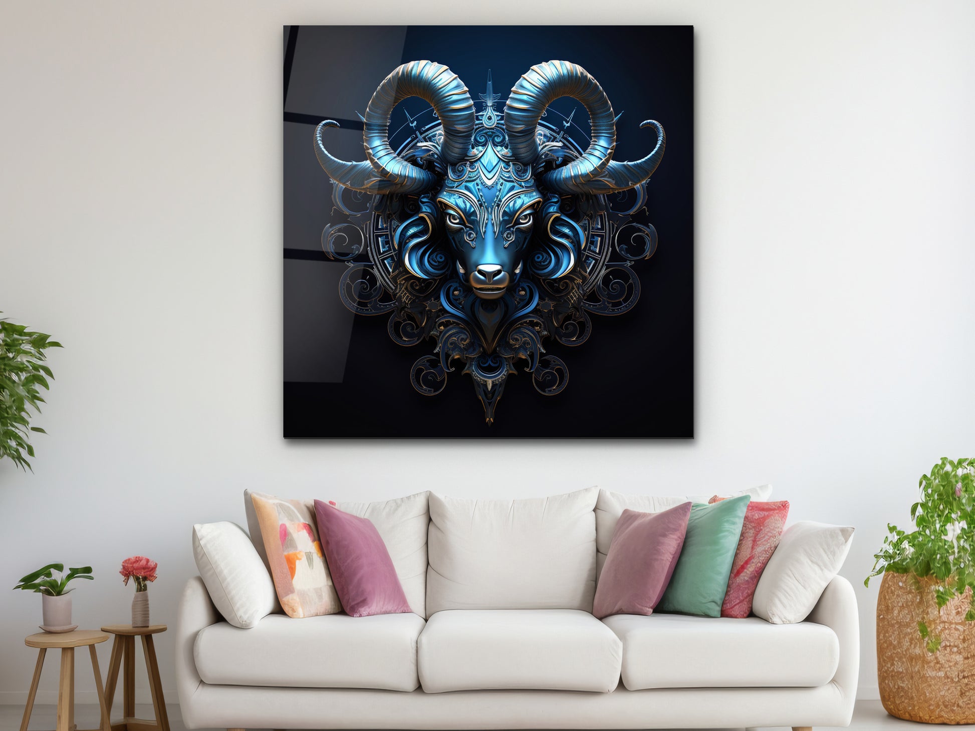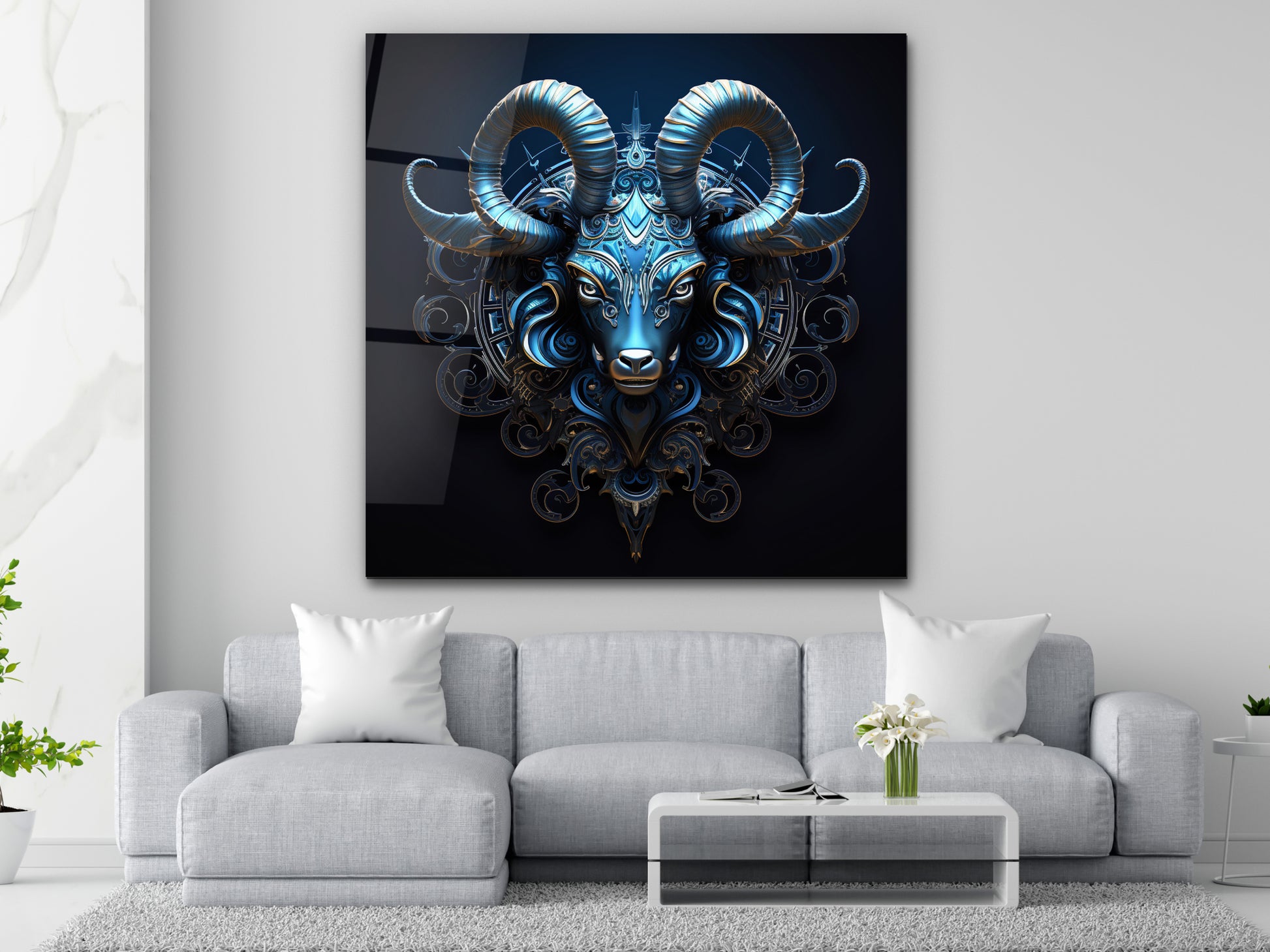 Zodyak Oğlak Burcu Sembolü Cam Tablo - Astrolojik & Spiritüel Duvar Dekoru - Burç Temalı Dekorasyon