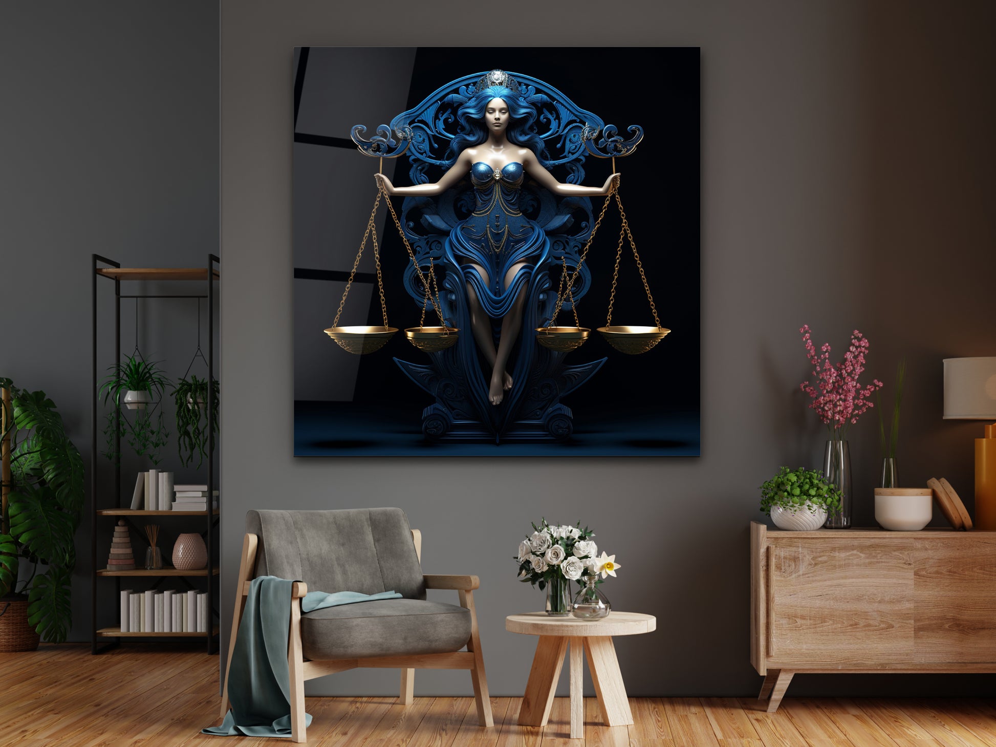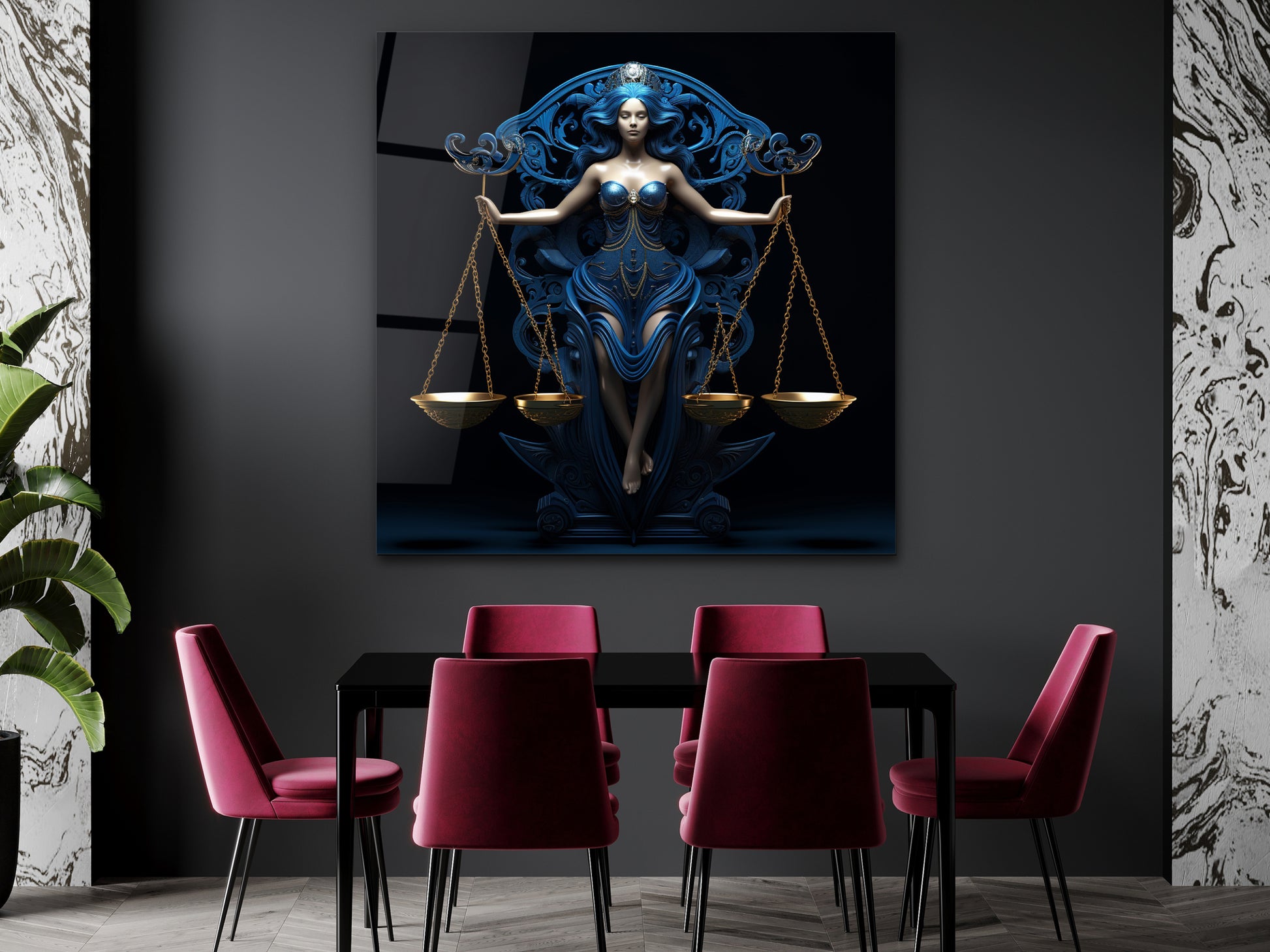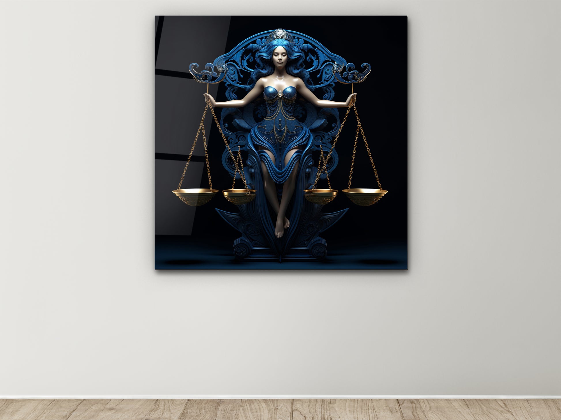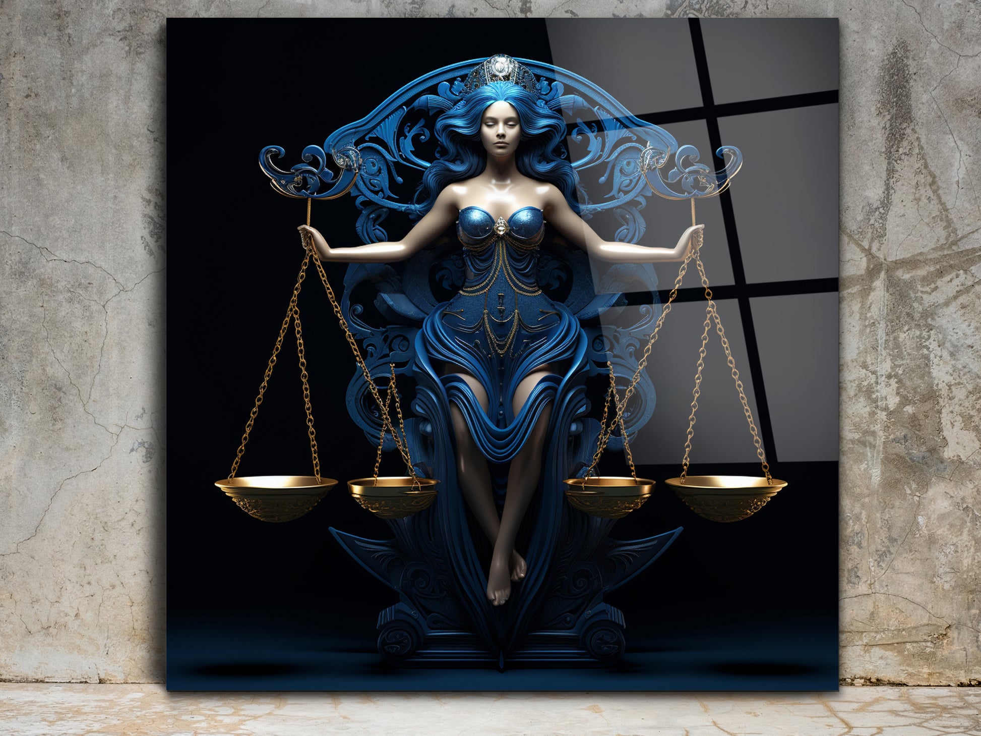 Zodyak Terazi Burcu Sembolü Cam Tablo - Astrolojik & Spiritüel Duvar Dekoru - Burç Temalı Dekorasyon